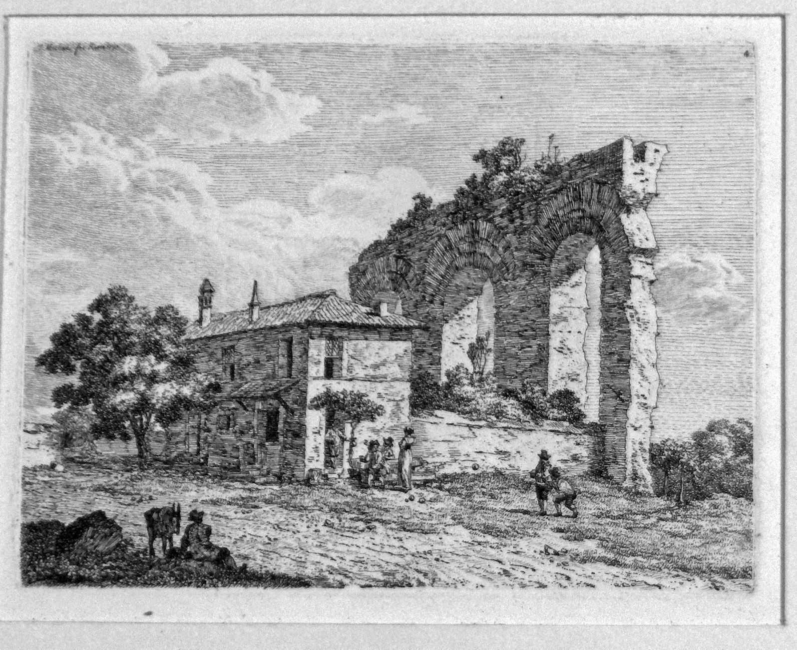 Etching, Artwork, Ink, Jacob Wilhelm Mechau, View Five, Aquaduct, Landscape, Italy, Etching, Artwork, InkOther Names and Numbers