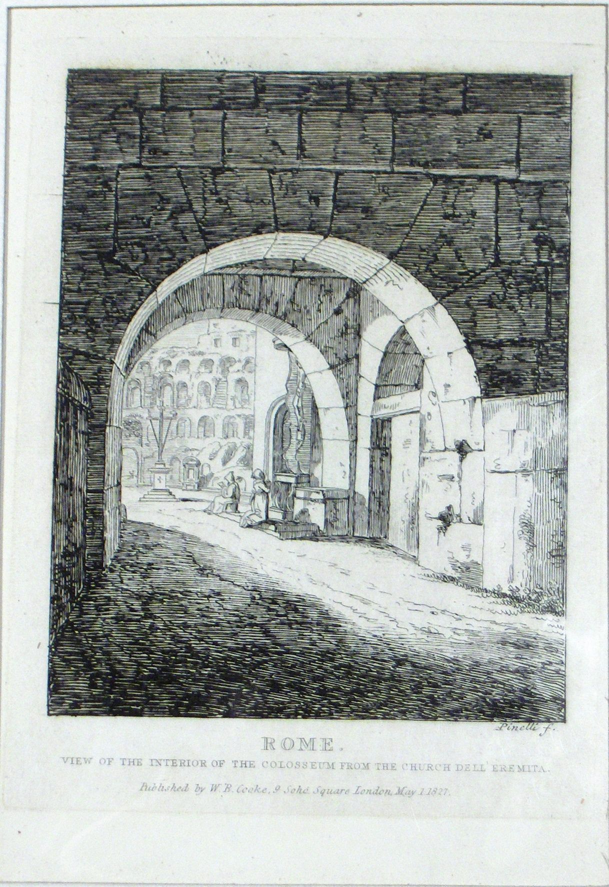 Engraving, Artwork, Ink, View of the Upper Corridor in the Interior of the Colosseum, Colosseum, Corridor, Stroll, Couple, 19th Centuryl, Rome, W.B. Cooke, Bartolomeo Pinelli, Twenty Five Views in Rome and its Vicinity, Engraving, Artwork, Ink, 19th Century