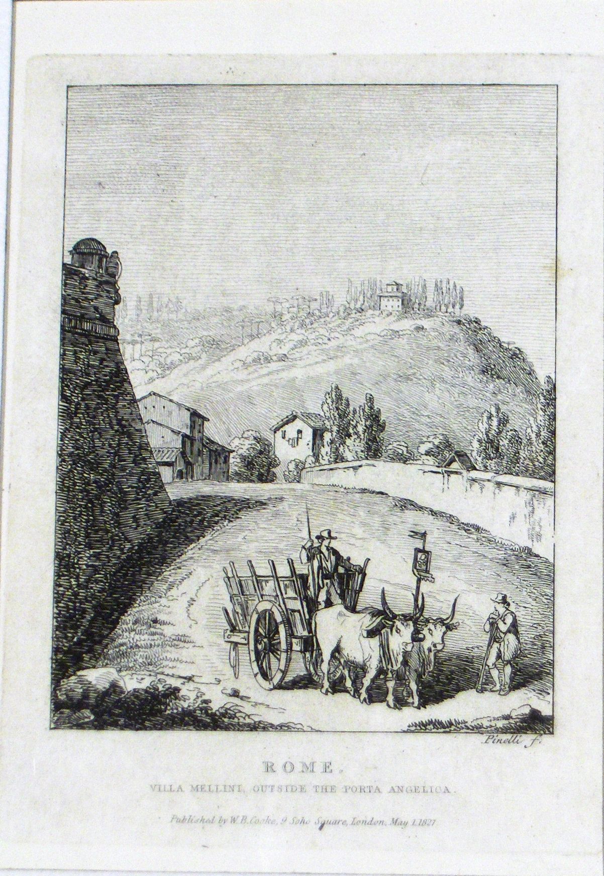 Engraving, Artwork, Ink, Villa Mellini Outside of the Porta Angelica, Wagon, Steer, Cattle, Villa, Landscape, Italy, Rome, W.B. Cooke, Bartolomeo Pinelli, Twenty Five Views in Rome and its Vicinity, Engraving, Artwork, Ink