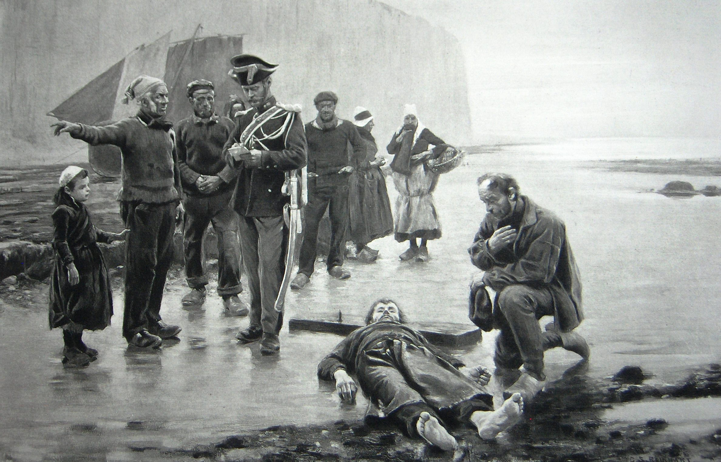 Ink, Paper, Print, Lithograph, Ink, Paper, Print, Lithograph, Washed Ashore, France, Body, Shore, Goupil, Reinhart, Reinhart, Charles S., Charles S. Reinhart, Goupil & Cie