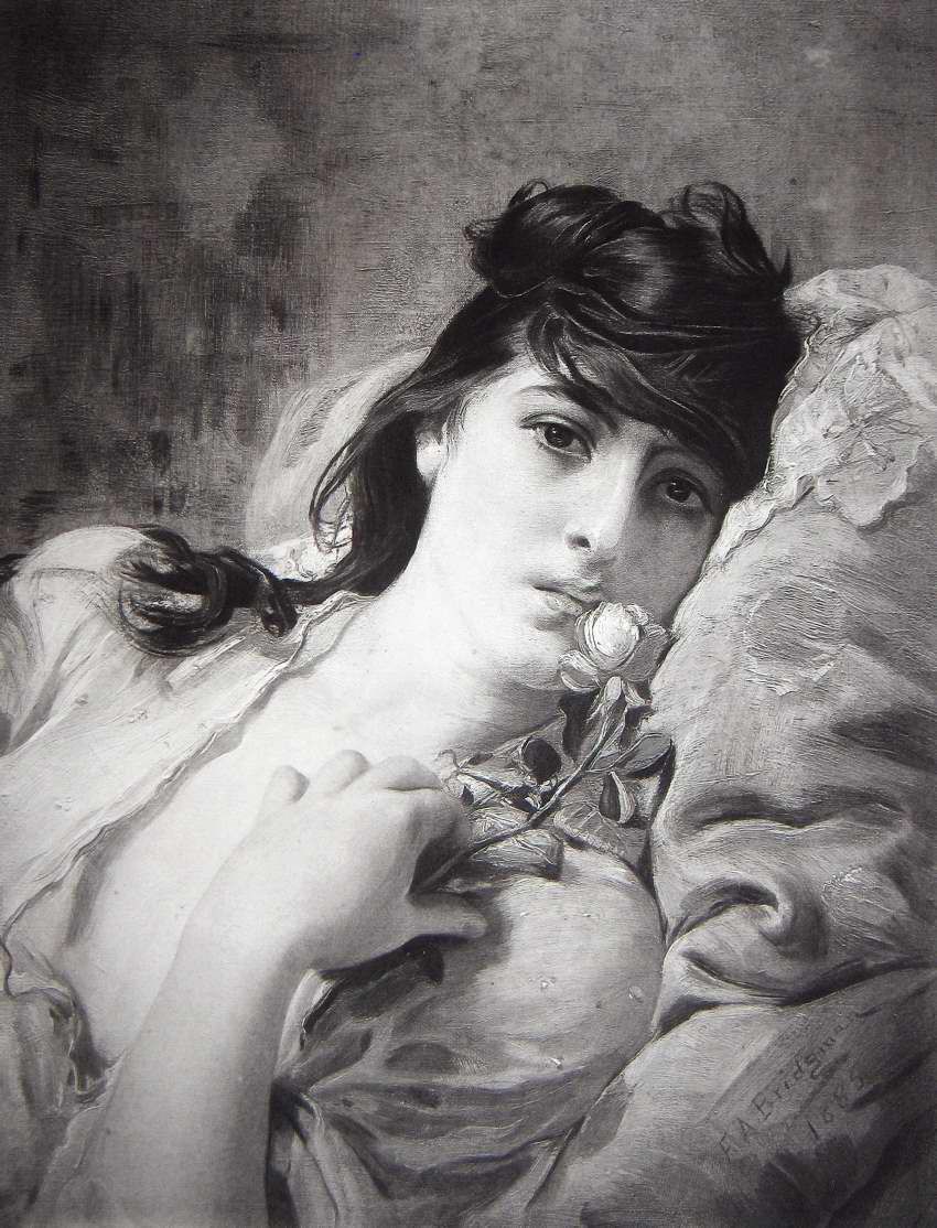 Ink, Paper, Print, Lithograph, Ink, Paper, Print, Lithograph, Goupil, F.A. Bridgman, Bridgman, F.A., Bridgman, Goupil & Cie, Woman, Rose