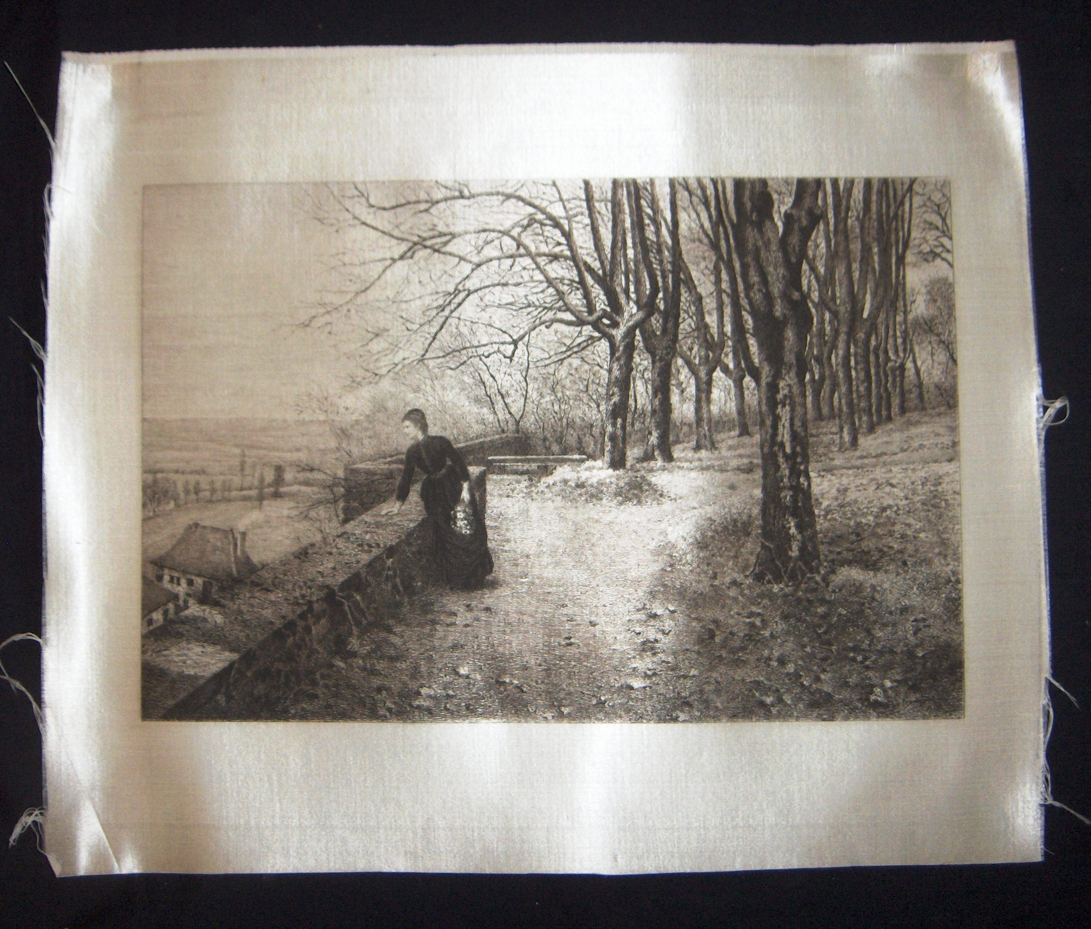 Ink, Silk, Engraving, Monies, Ink, Silk, Engraving, Woman in the Autumn, Autumn, Fall, Woman