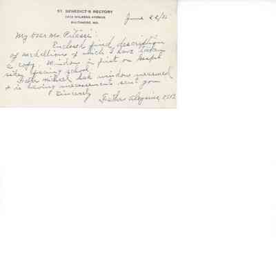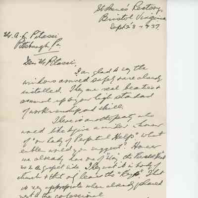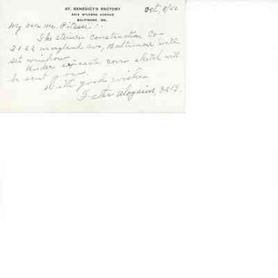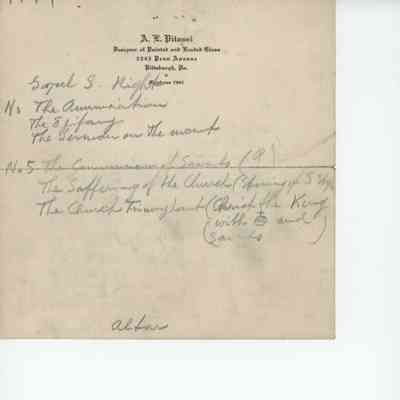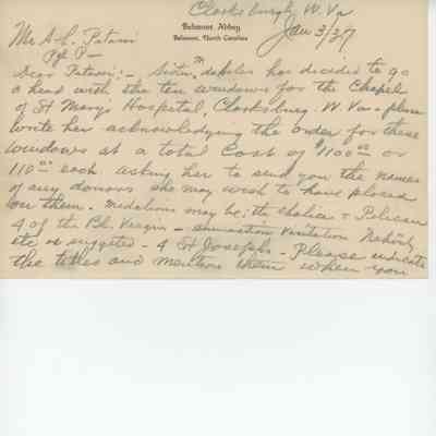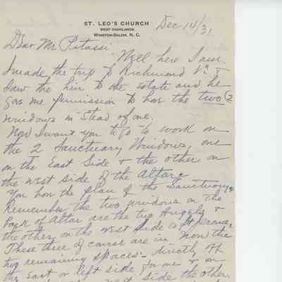 "Altar Plan fur die Ehrw: Schwestern in Carrolltown, PA" (obverse)/ Unidentified Altar Plan (Reverse)