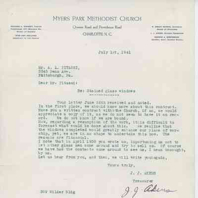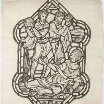Winston-Salem, NC - Aisle window medallion - The Stoning of St. Stephen