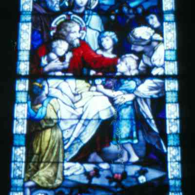Winston-Salem, NC - Aisle window medallion - Jesus heals the Paralyzed Man