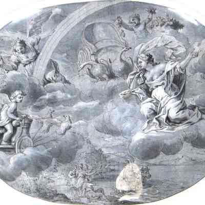 Venus Riding in Her Swan Chariot with Venus and Flora Attending