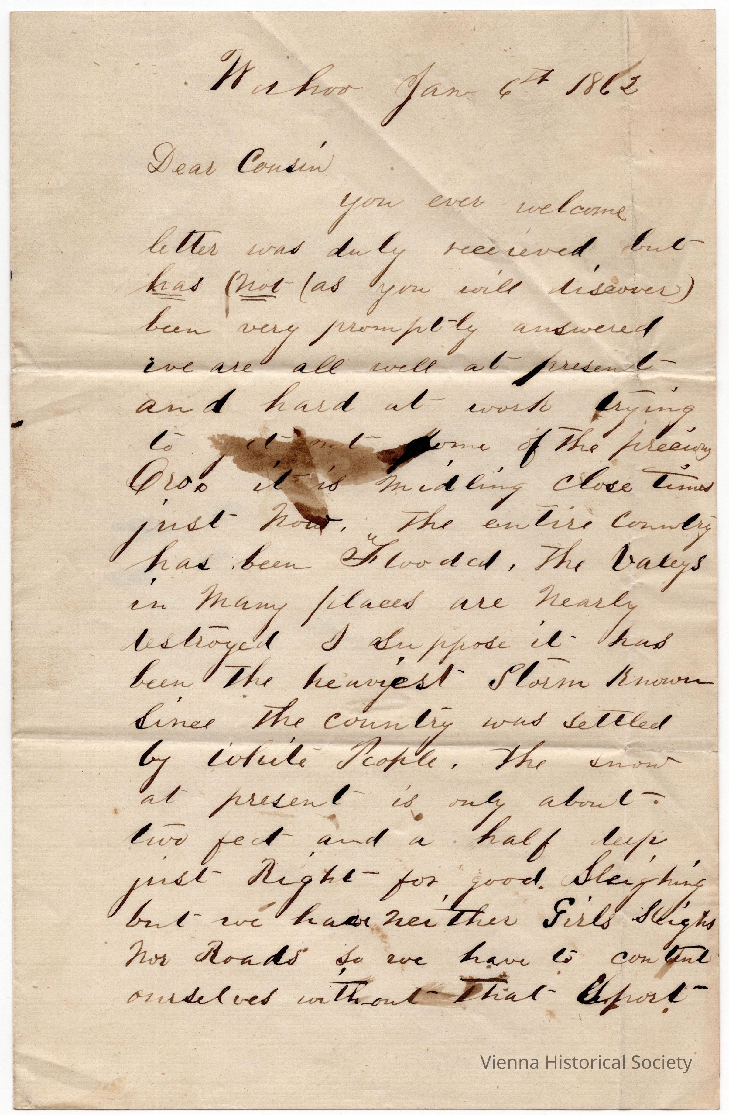 Letter to Gibson A. Mackey from his cousin, January 6, 1862Collection