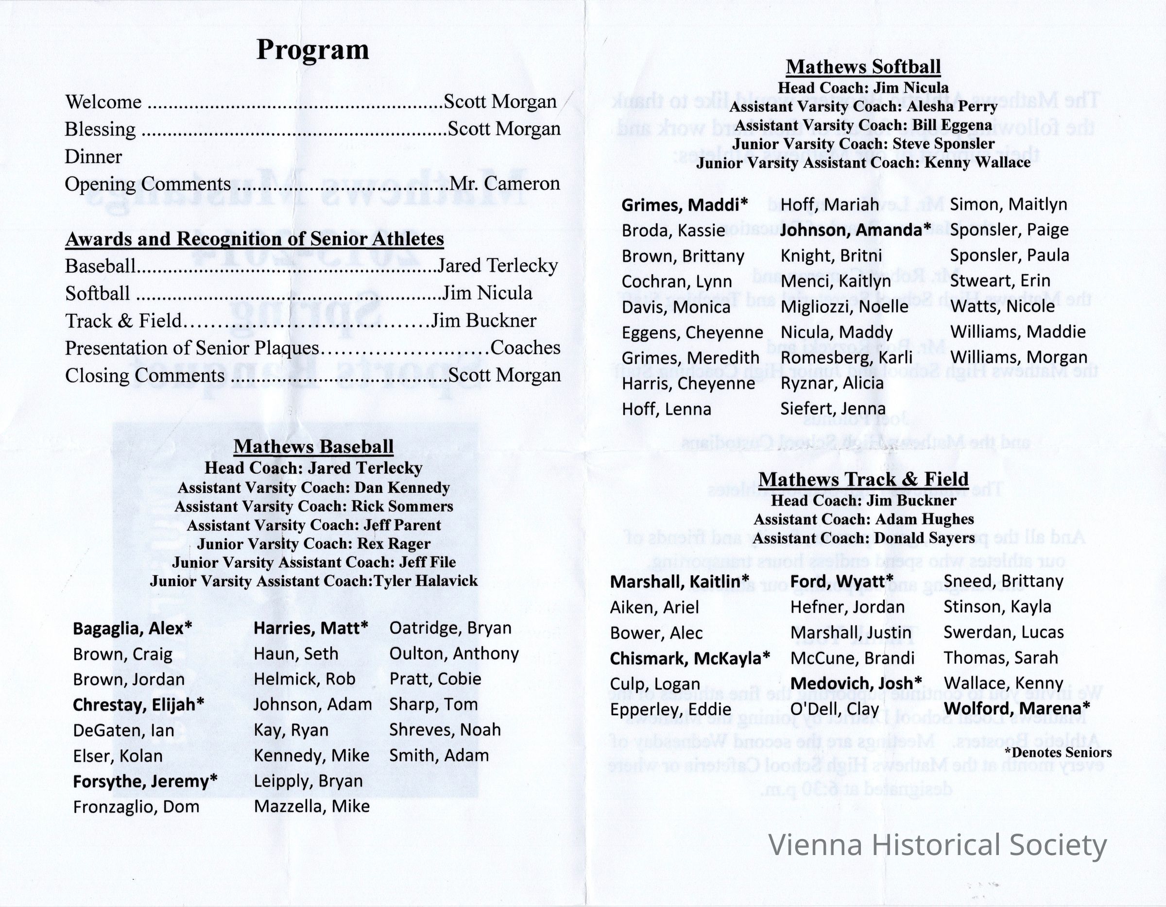 Mathews High School Spring Sports Banquet Program, 2013-2014Collection