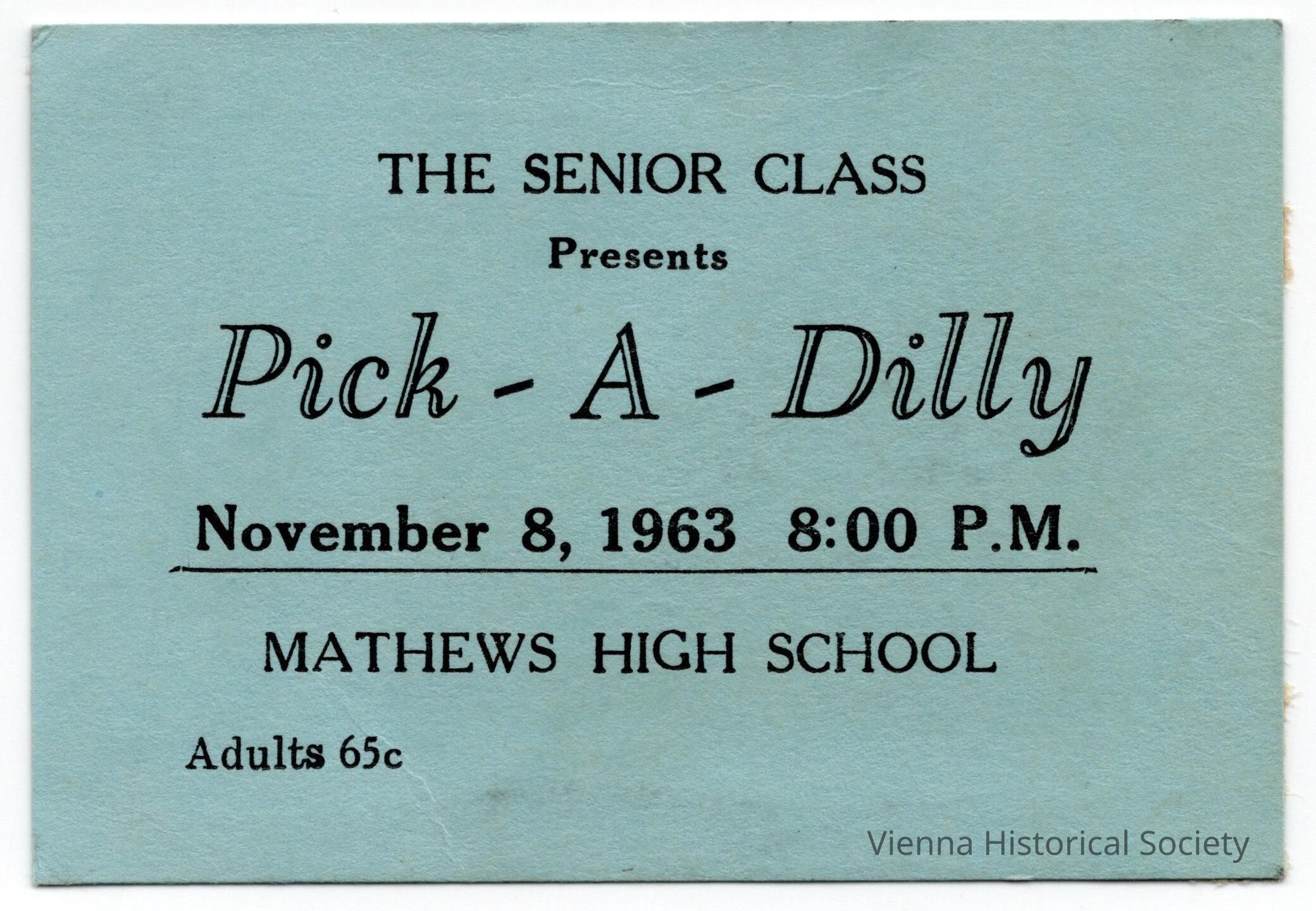 Mathews High School Senior Class Play Ticket, "Pick a Dilly," November 8, 1963Collection