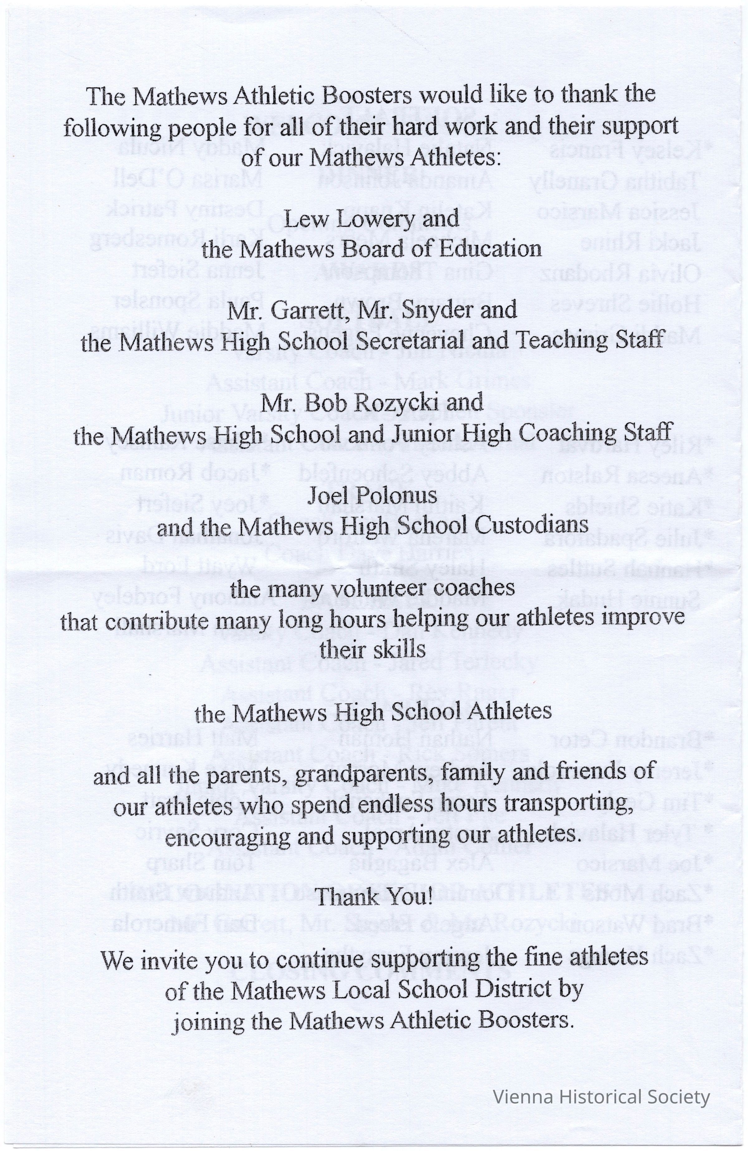 Mathews Schools 1962-PresentDate