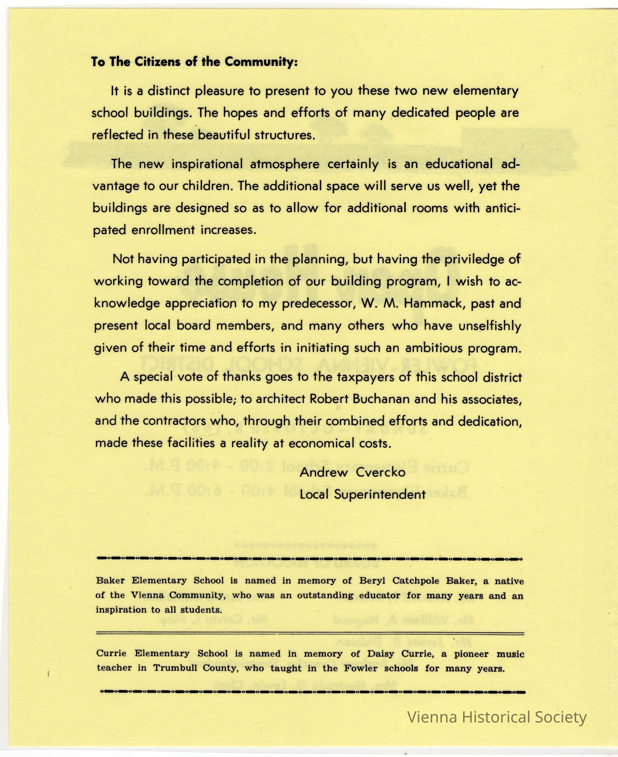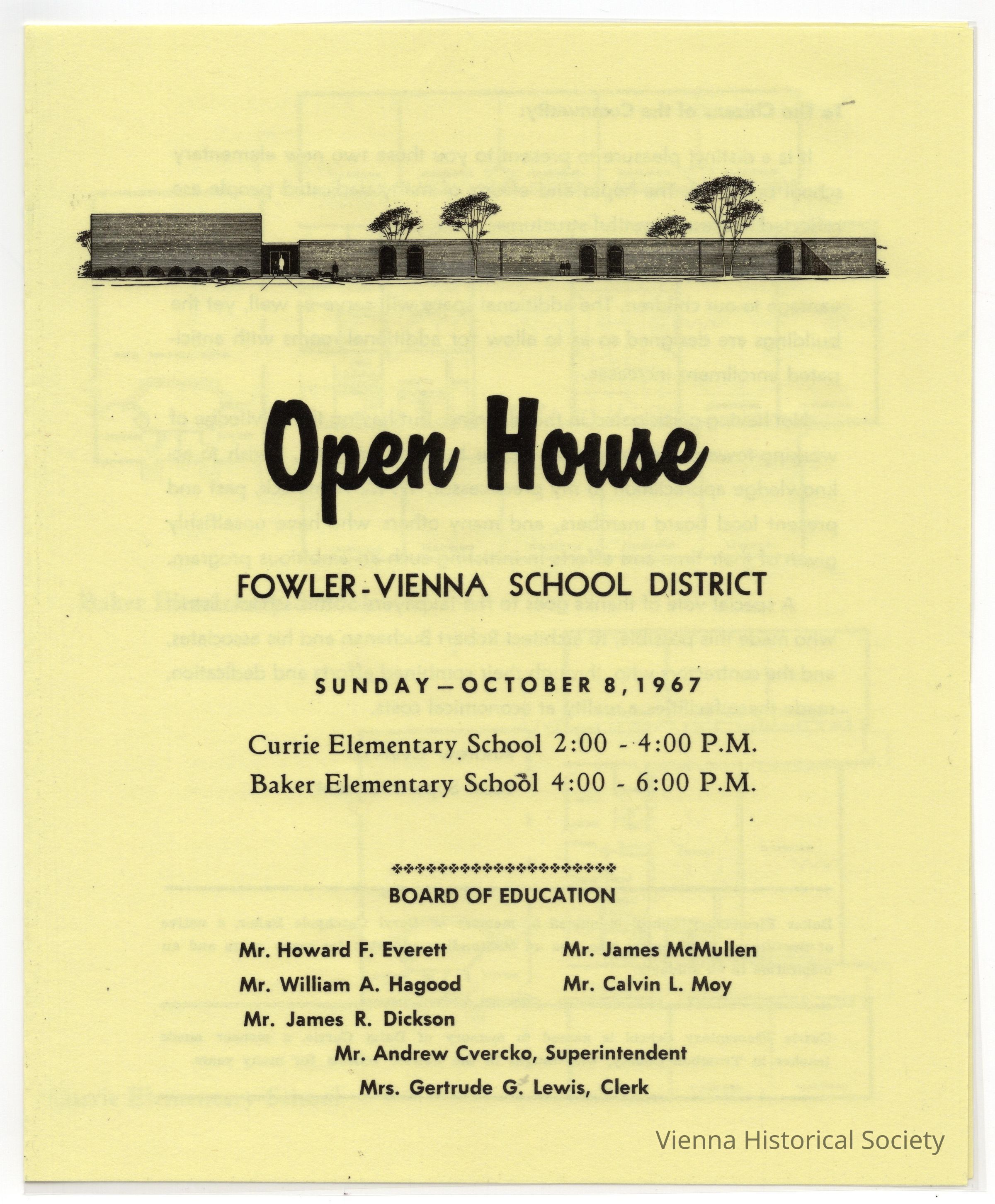Fowler-Vienna School District Open House Program, Baker & Currie Elementary SchoolCollection