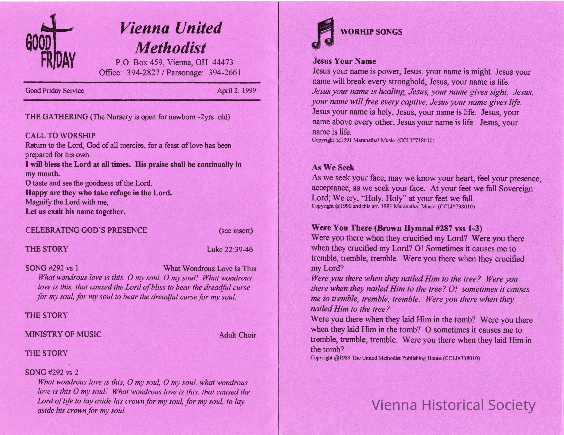 Vienna United Methodist Church Service Program - April 2, 1999Collection