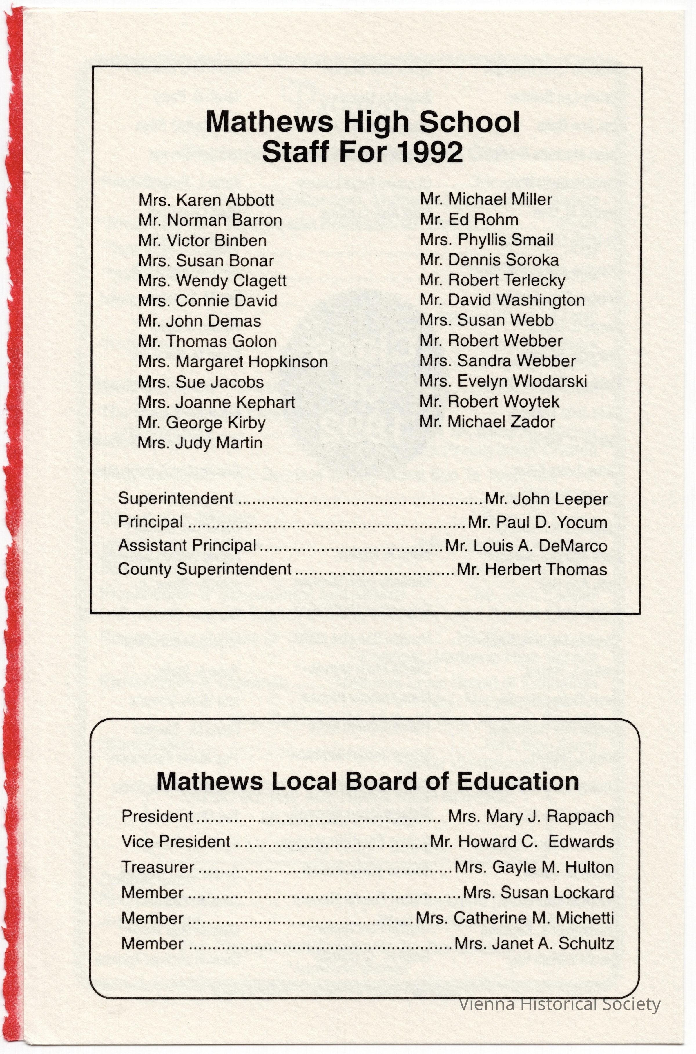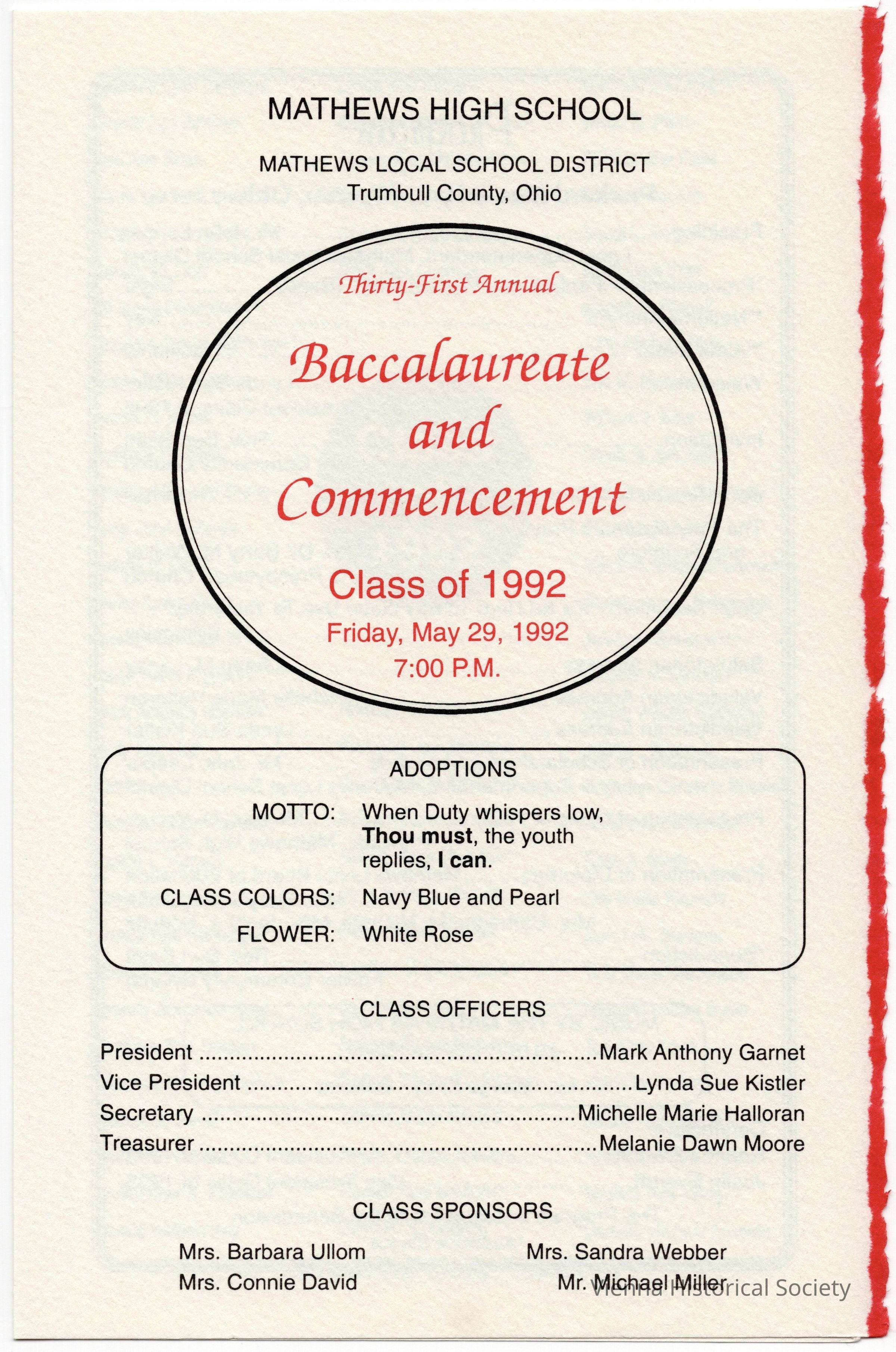 Mathews High School Commencement Program, 1992Collection