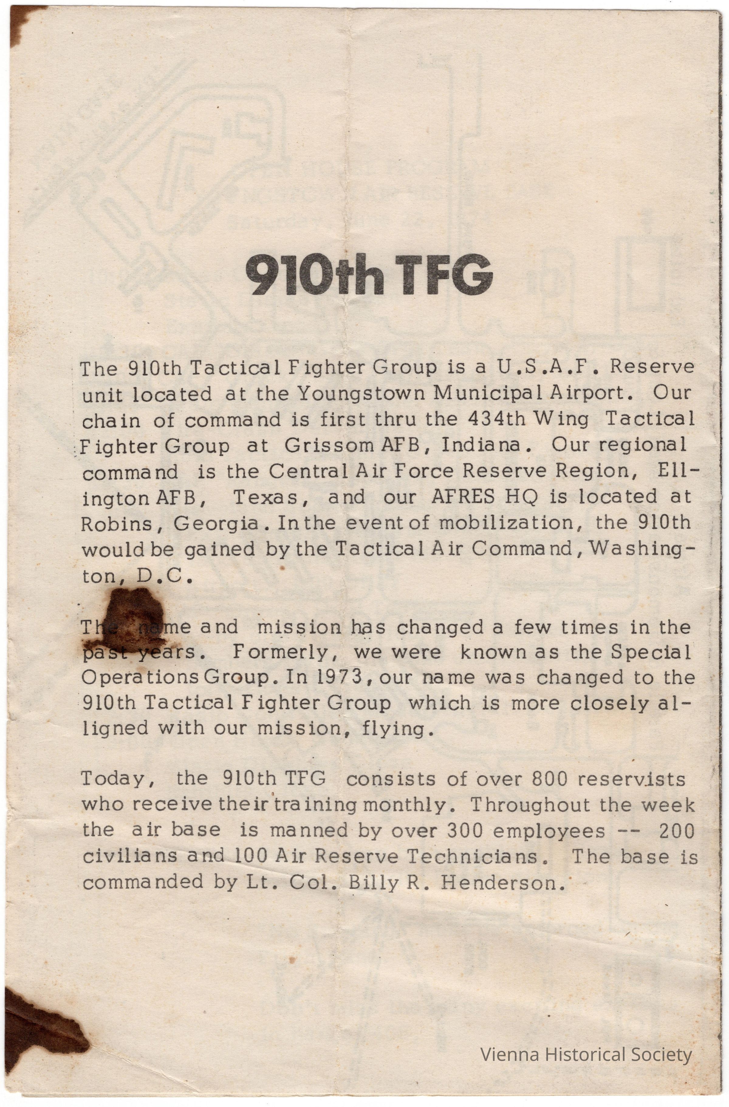 Youngstown Air Reserve Base Open House Program, June 22, 1974Collection