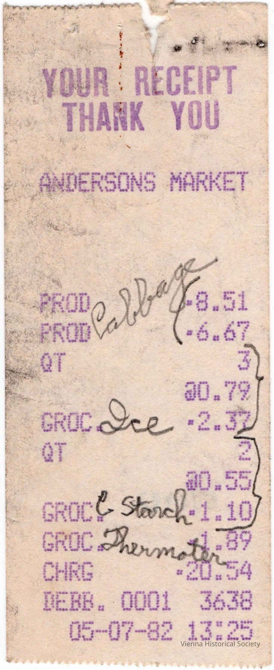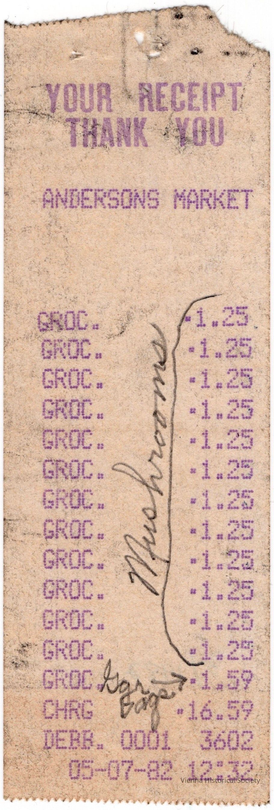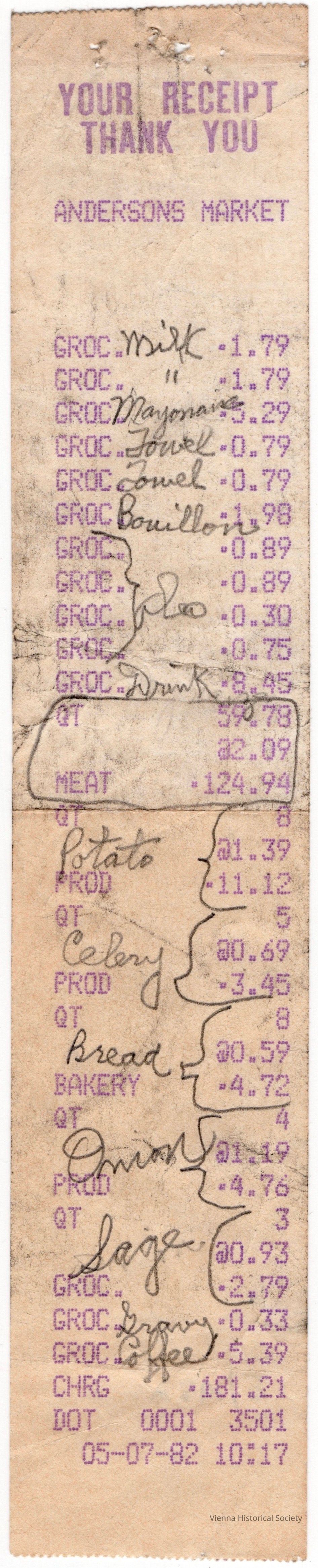 Andersons Market Reciept, May 1982Collection