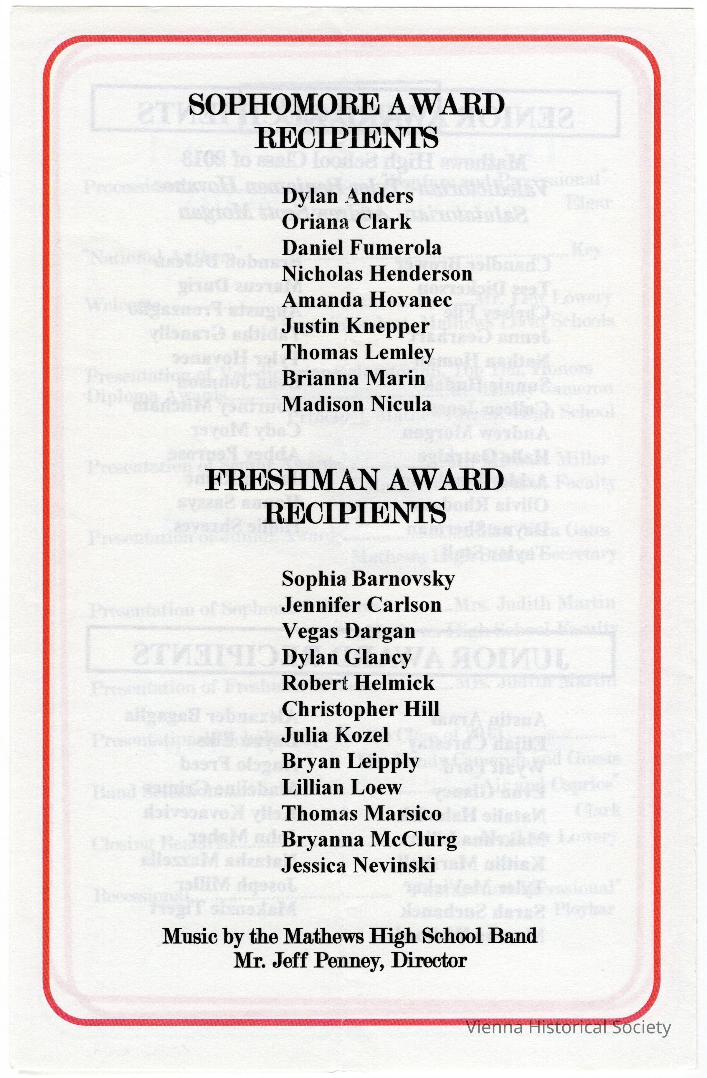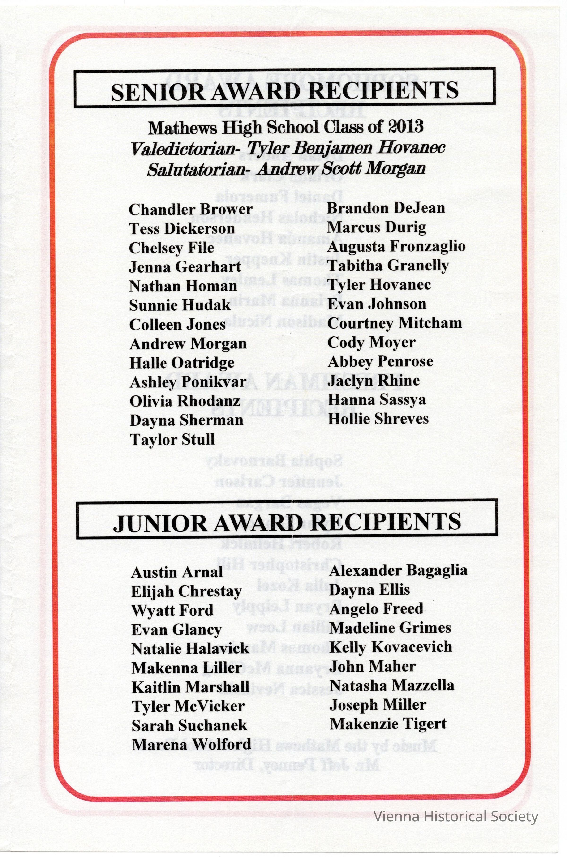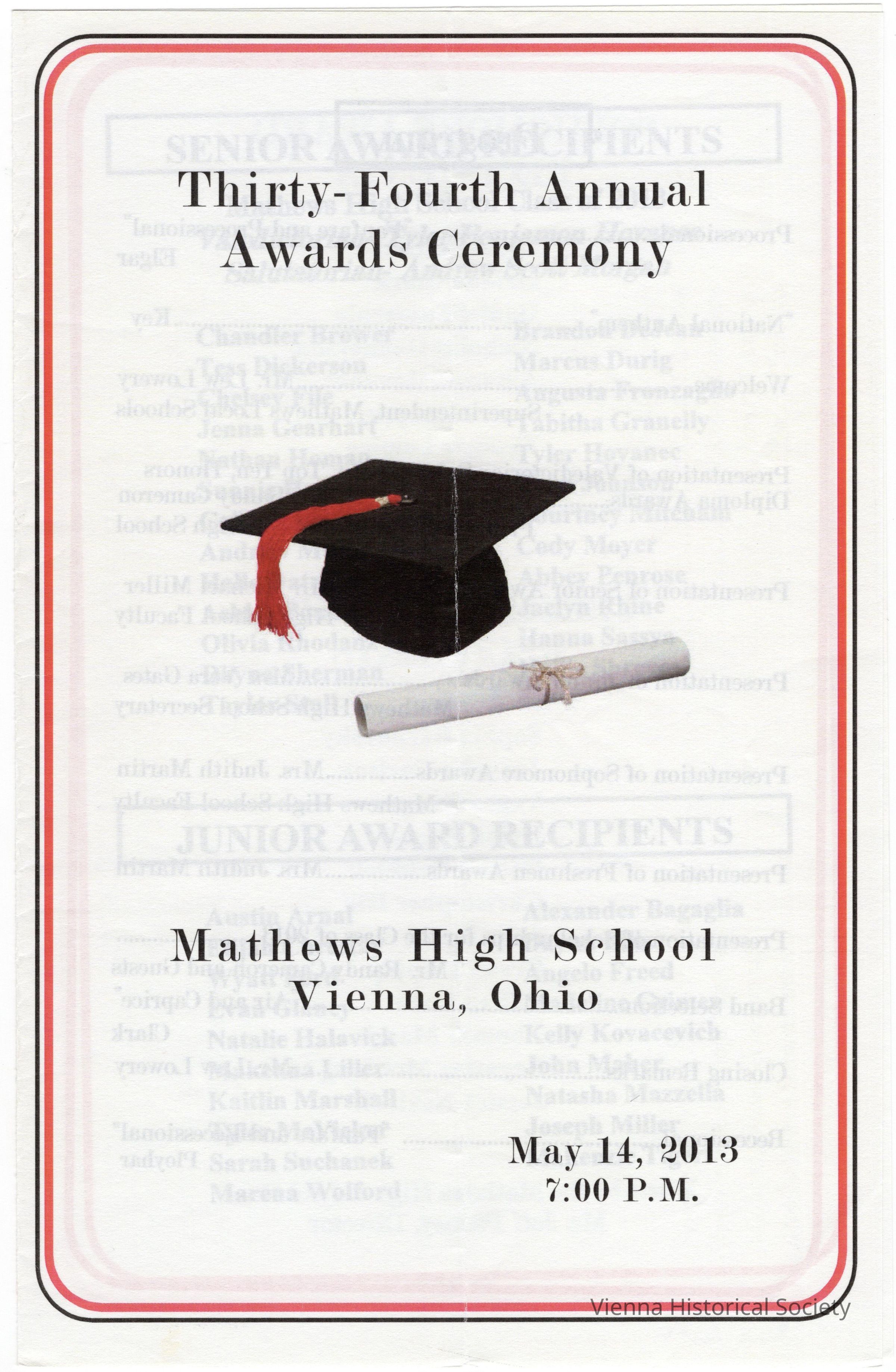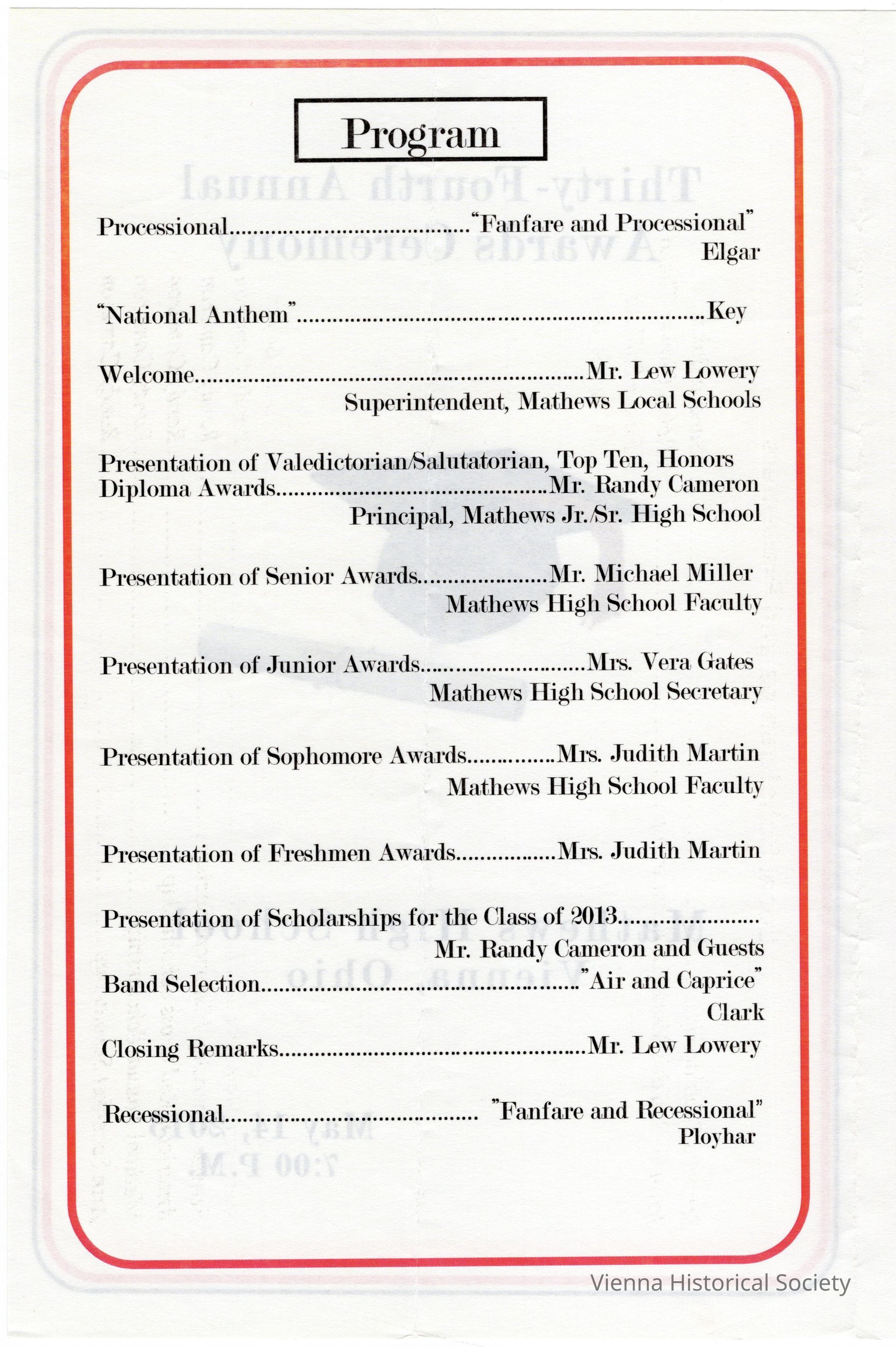 Mathews High School Awards Ceremony Program, 2013Collection