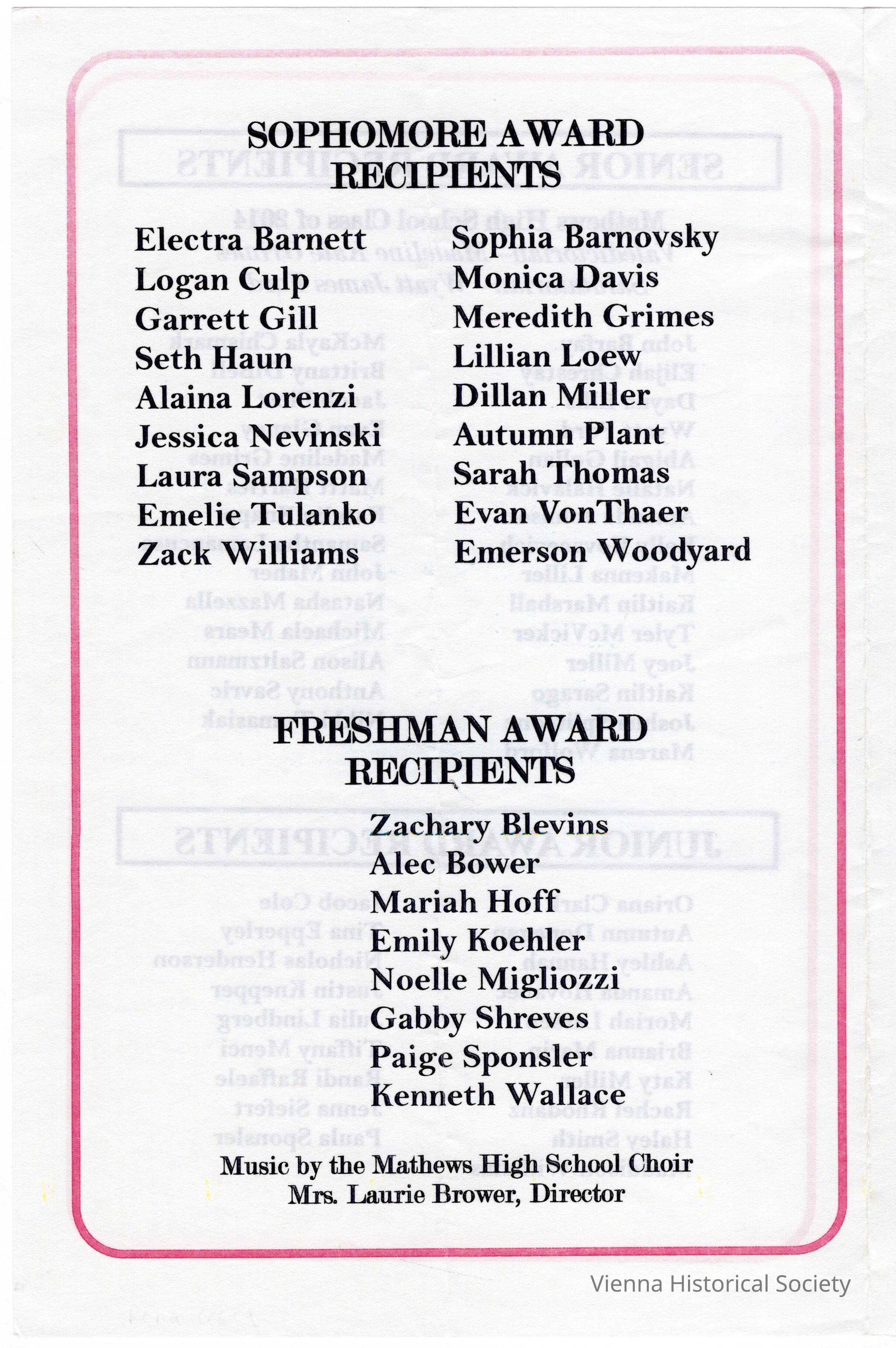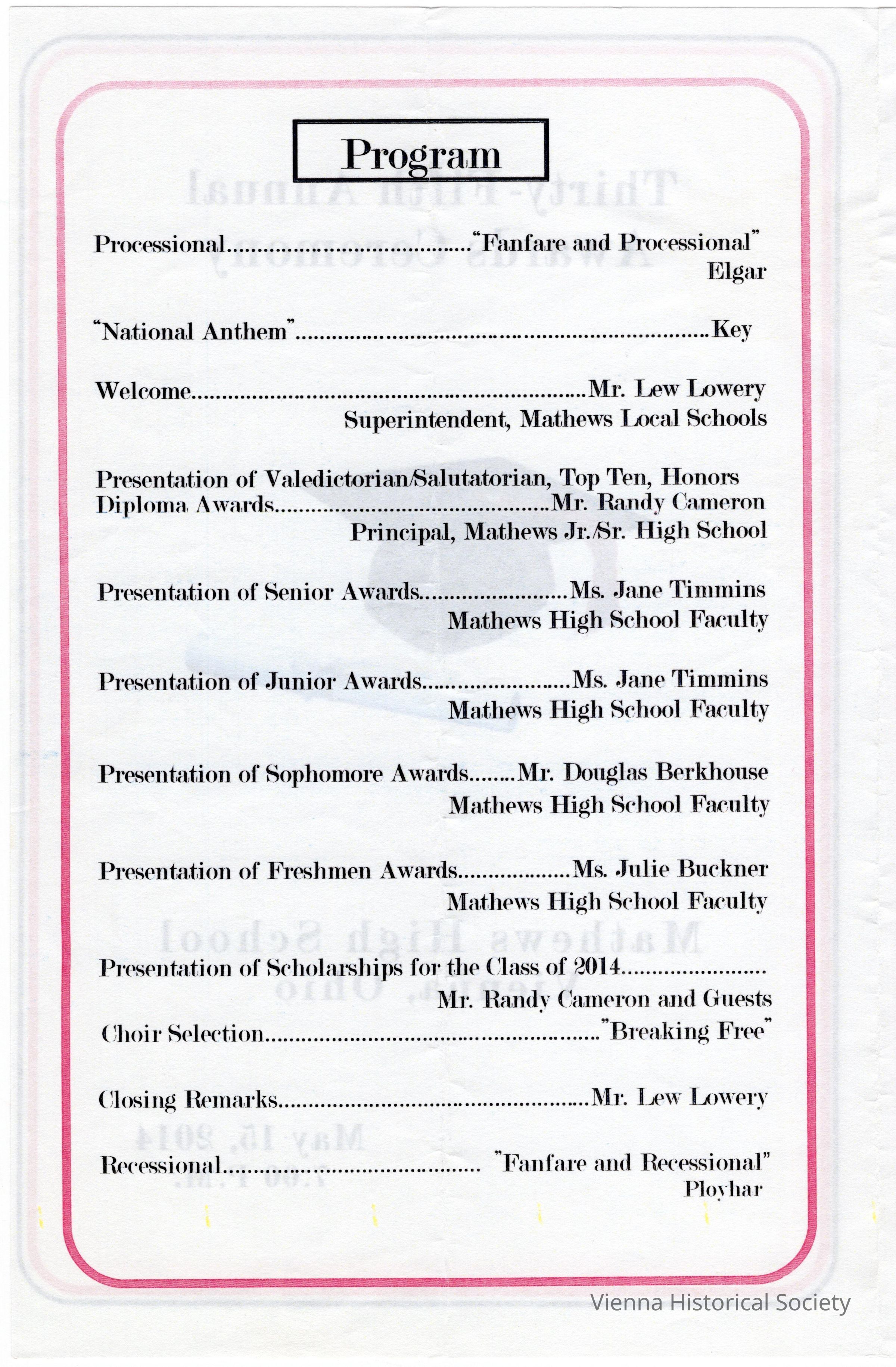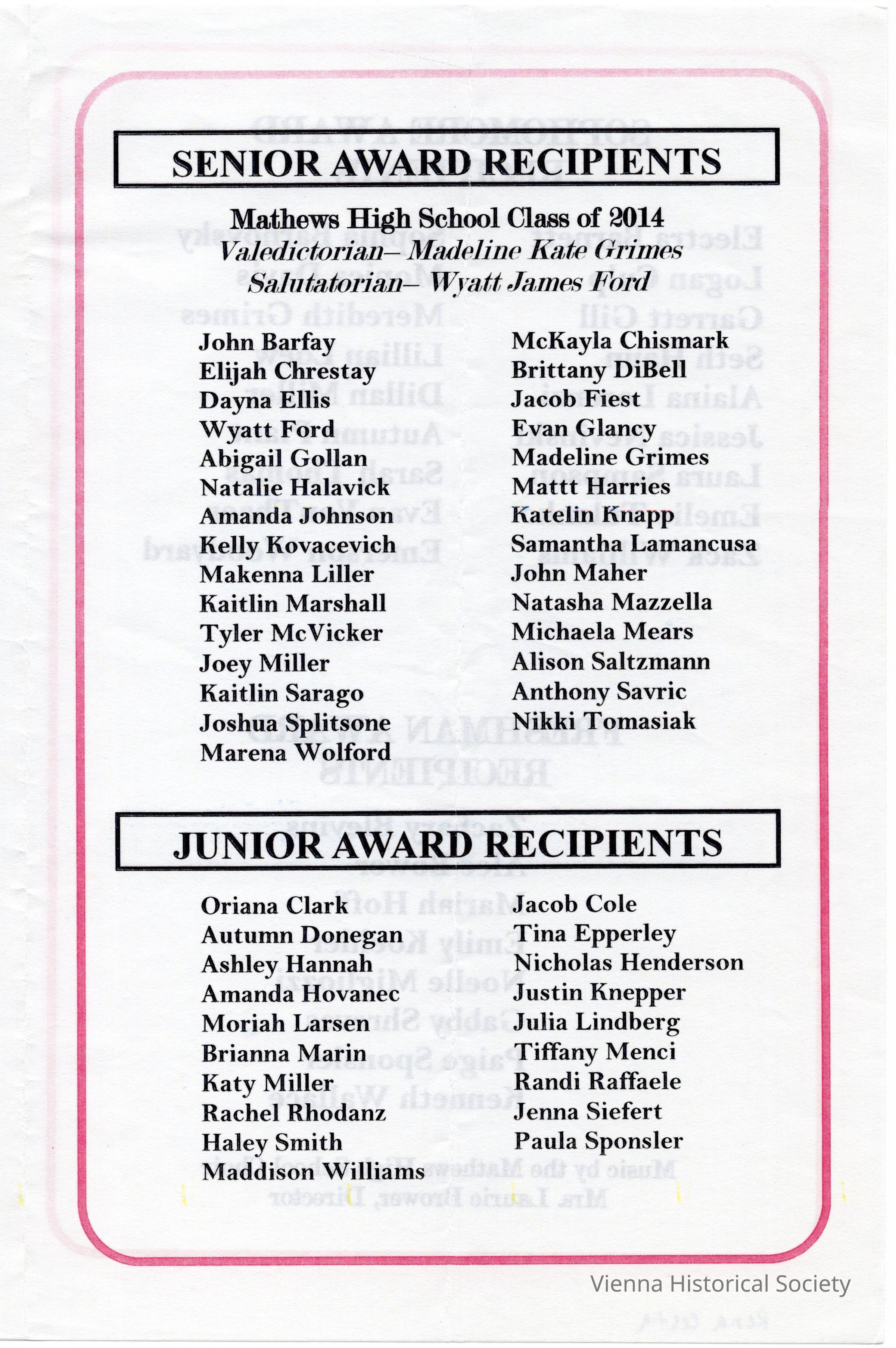 Mathews High School Awards Ceremony Program, 2014Collection