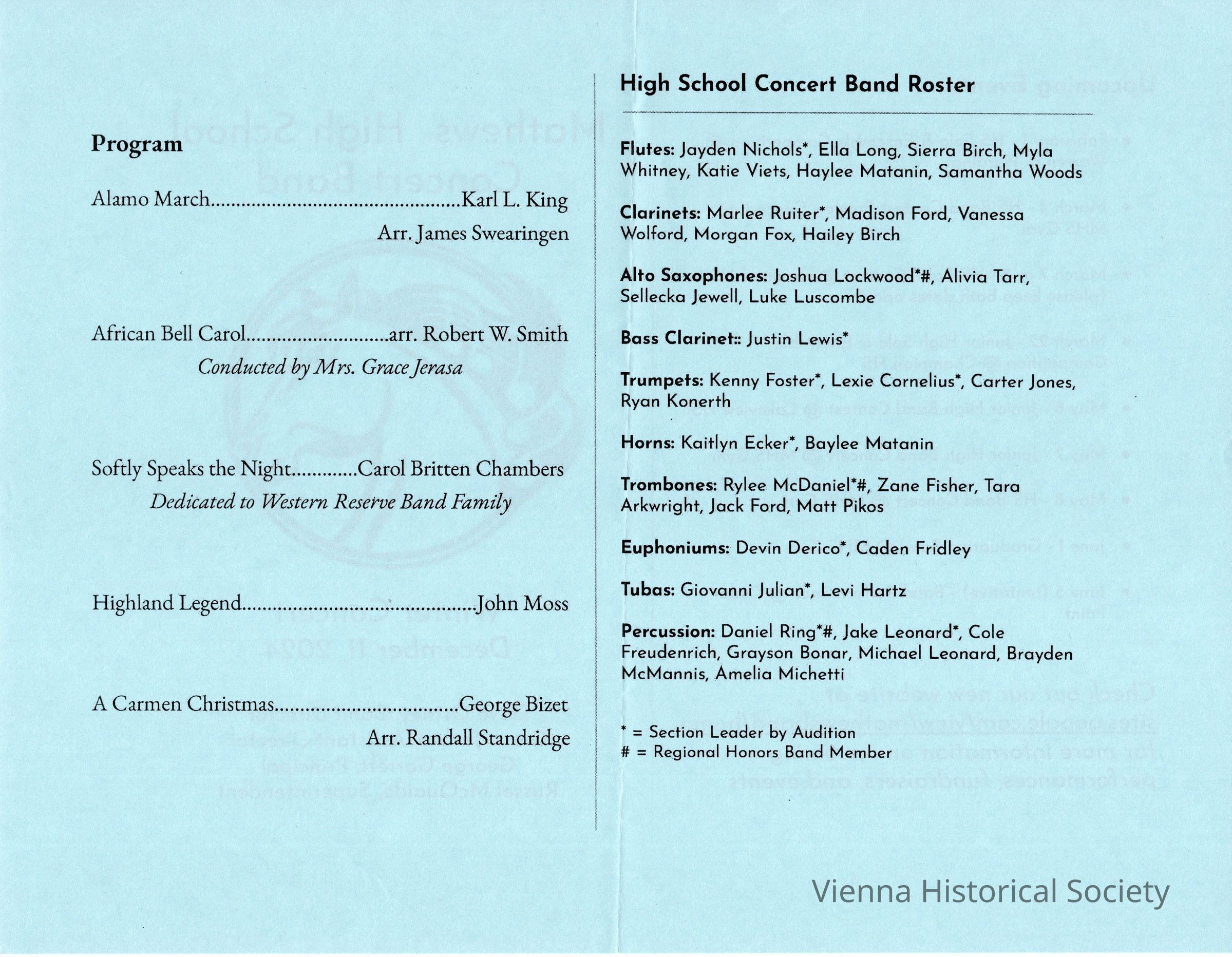 Mathews High School Band Concert Program, December 11, 2024Collection