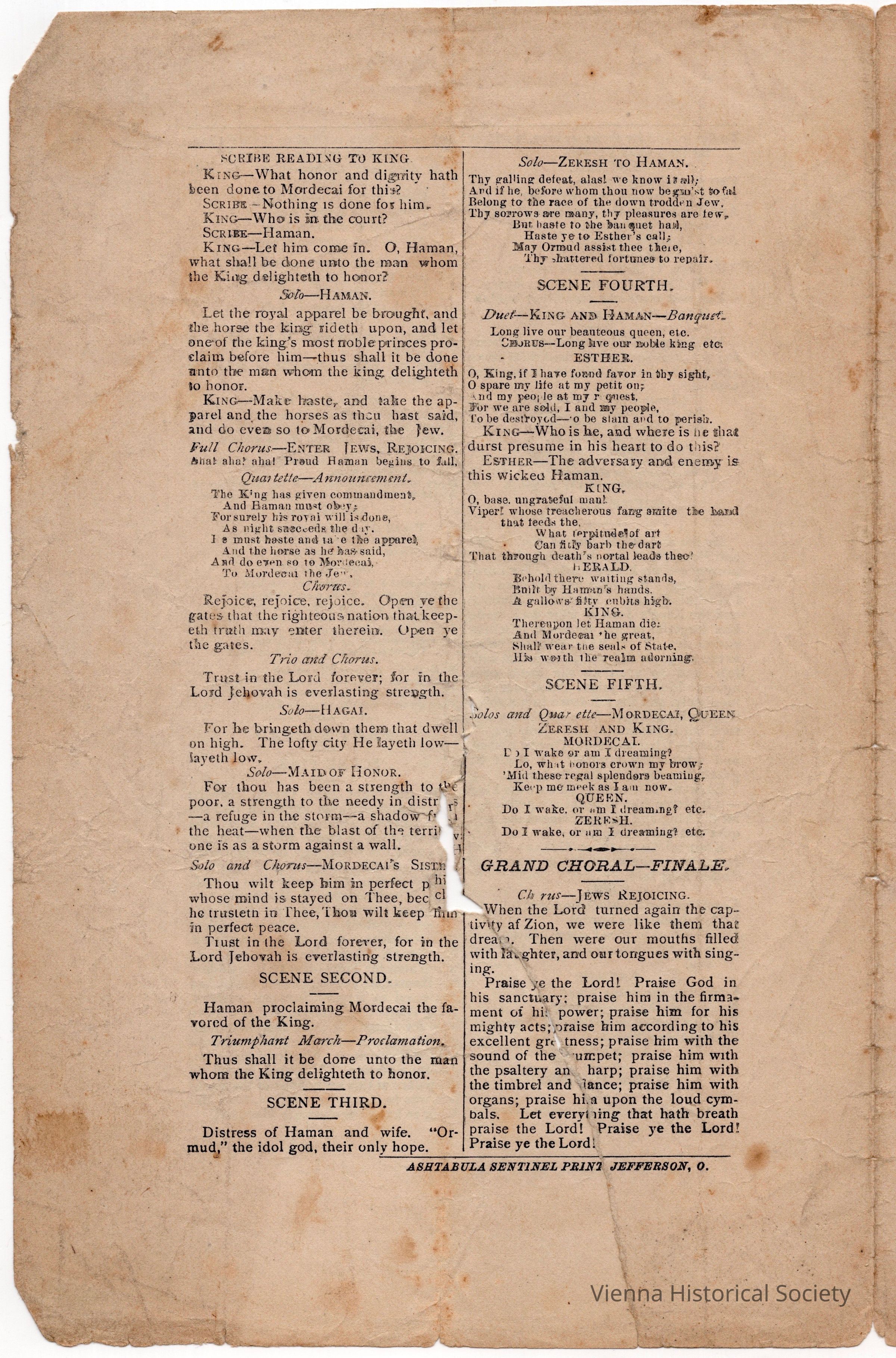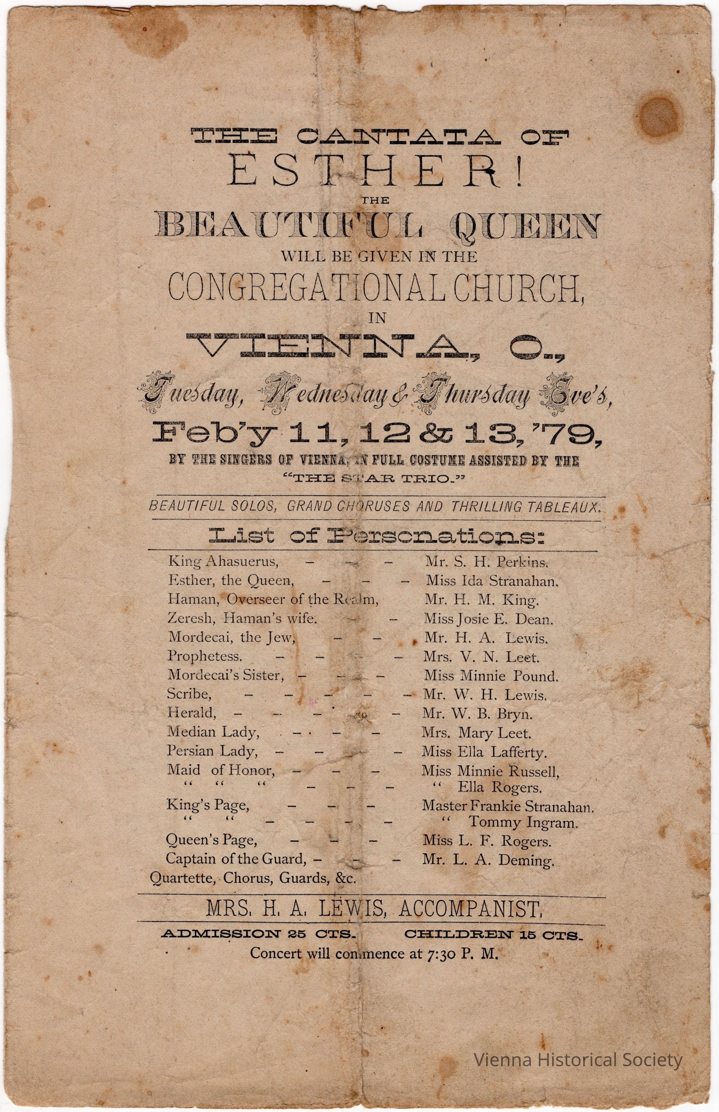 Cantata of Esther The Beautiful Queen Program at the Congregational Church, February 1879Collection