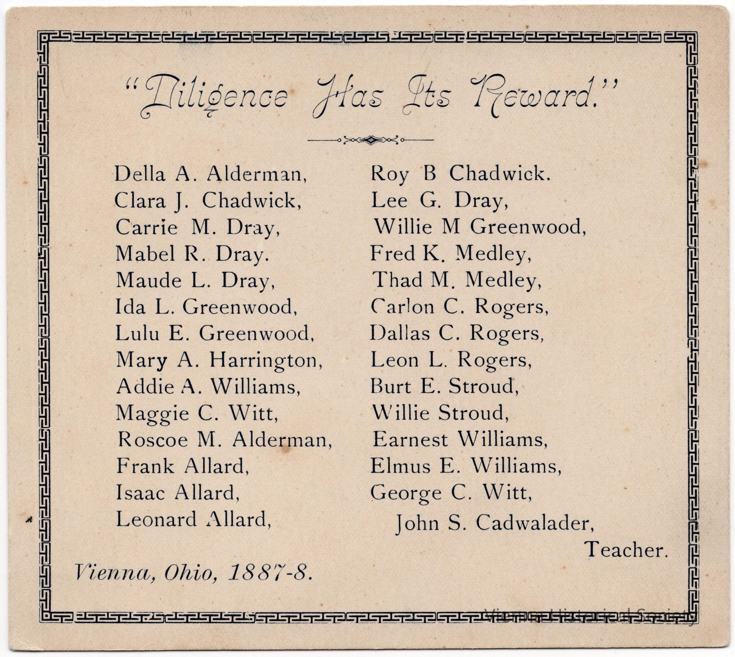 Chadwick School (Vienna School #9) Roster, 1887-1888 school yearCollection
