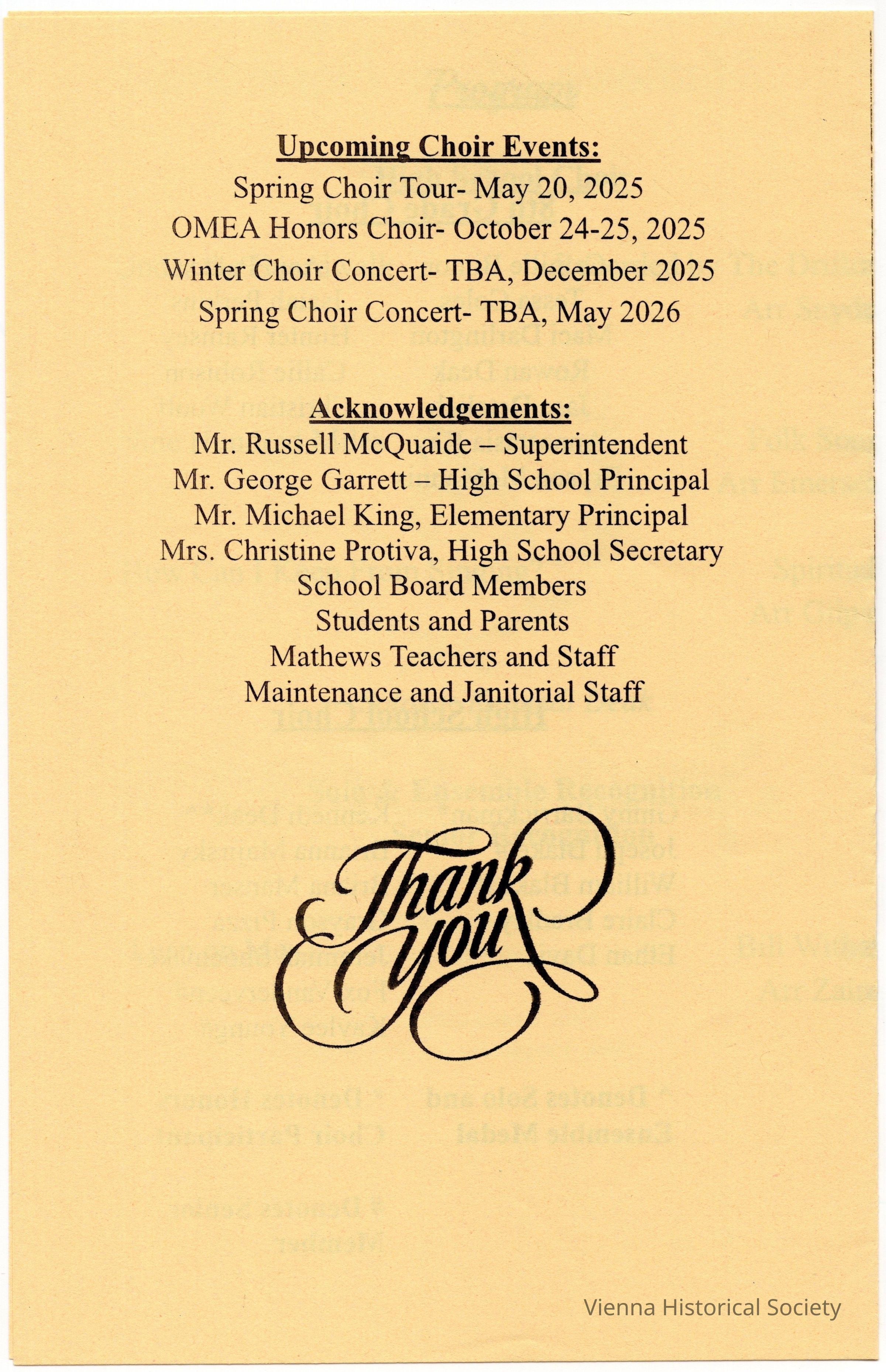 Mathews High School Choir Concert Program, May 7, 2025Collection
