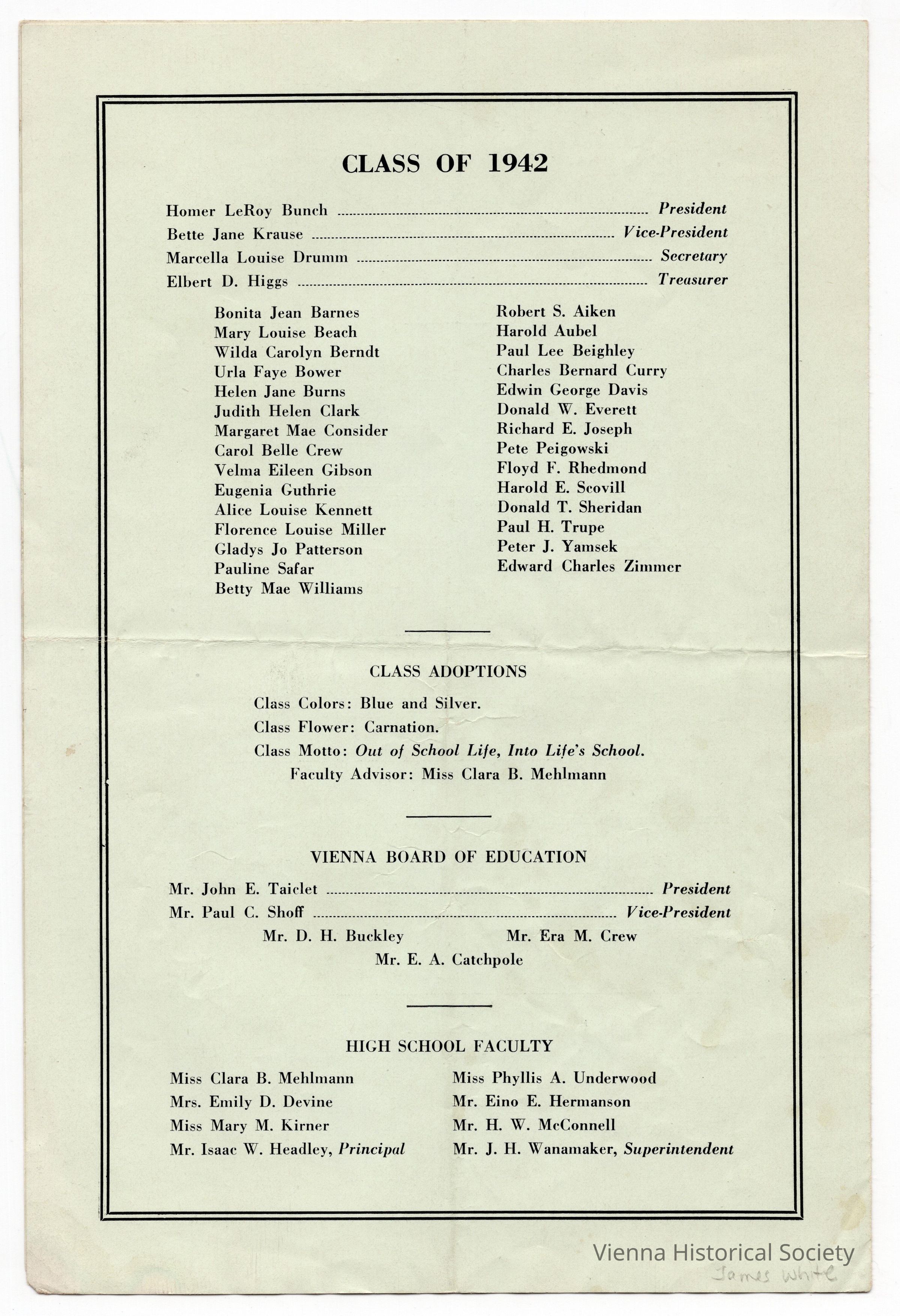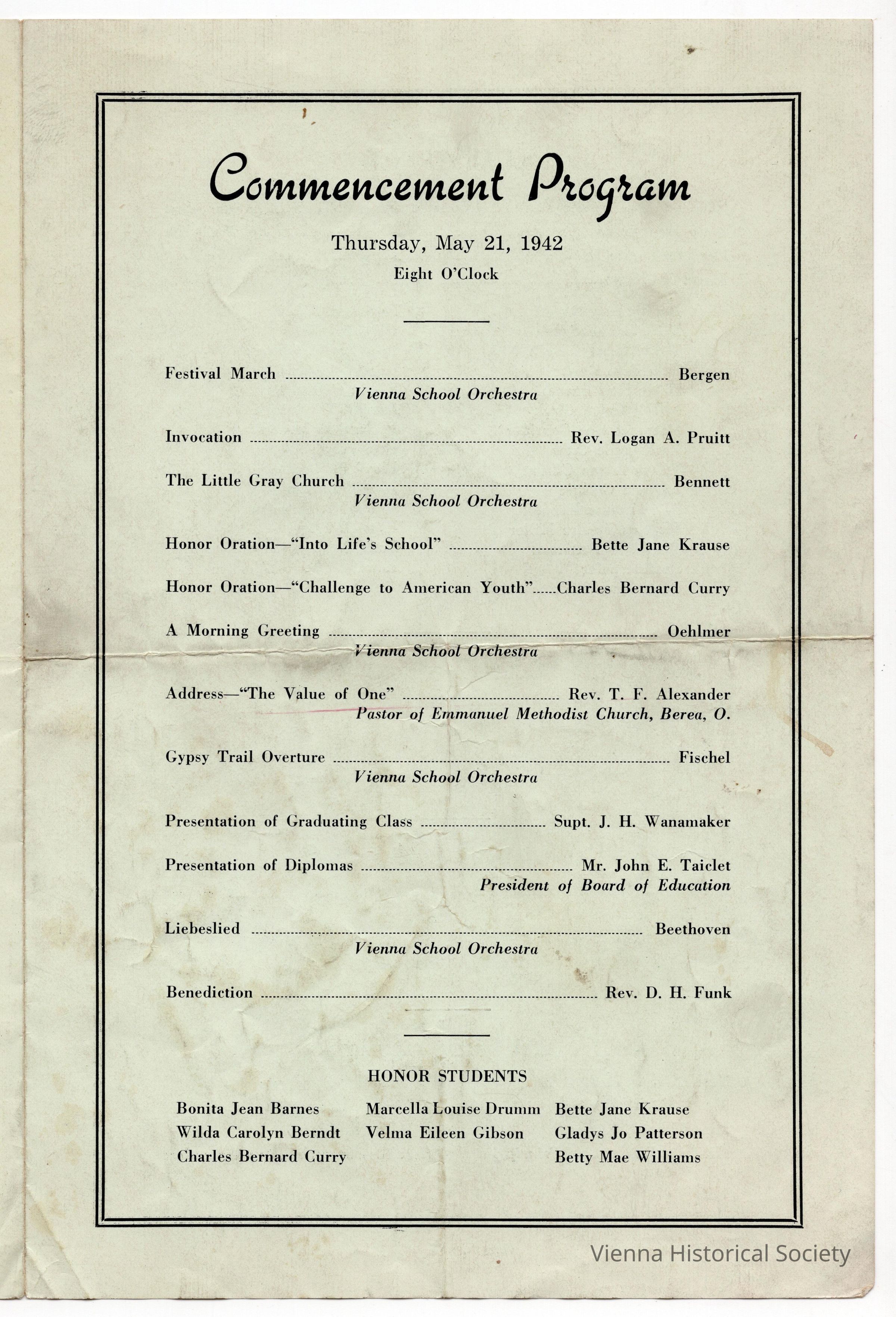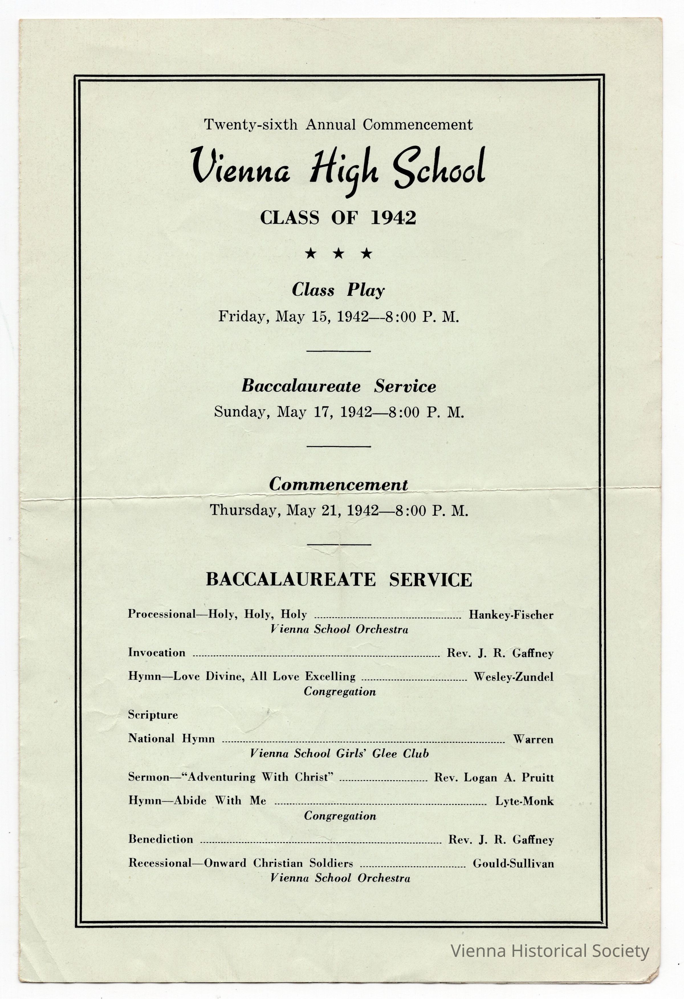 Vienna High School Commencement & Baccalaureate Program, 1942Collection
