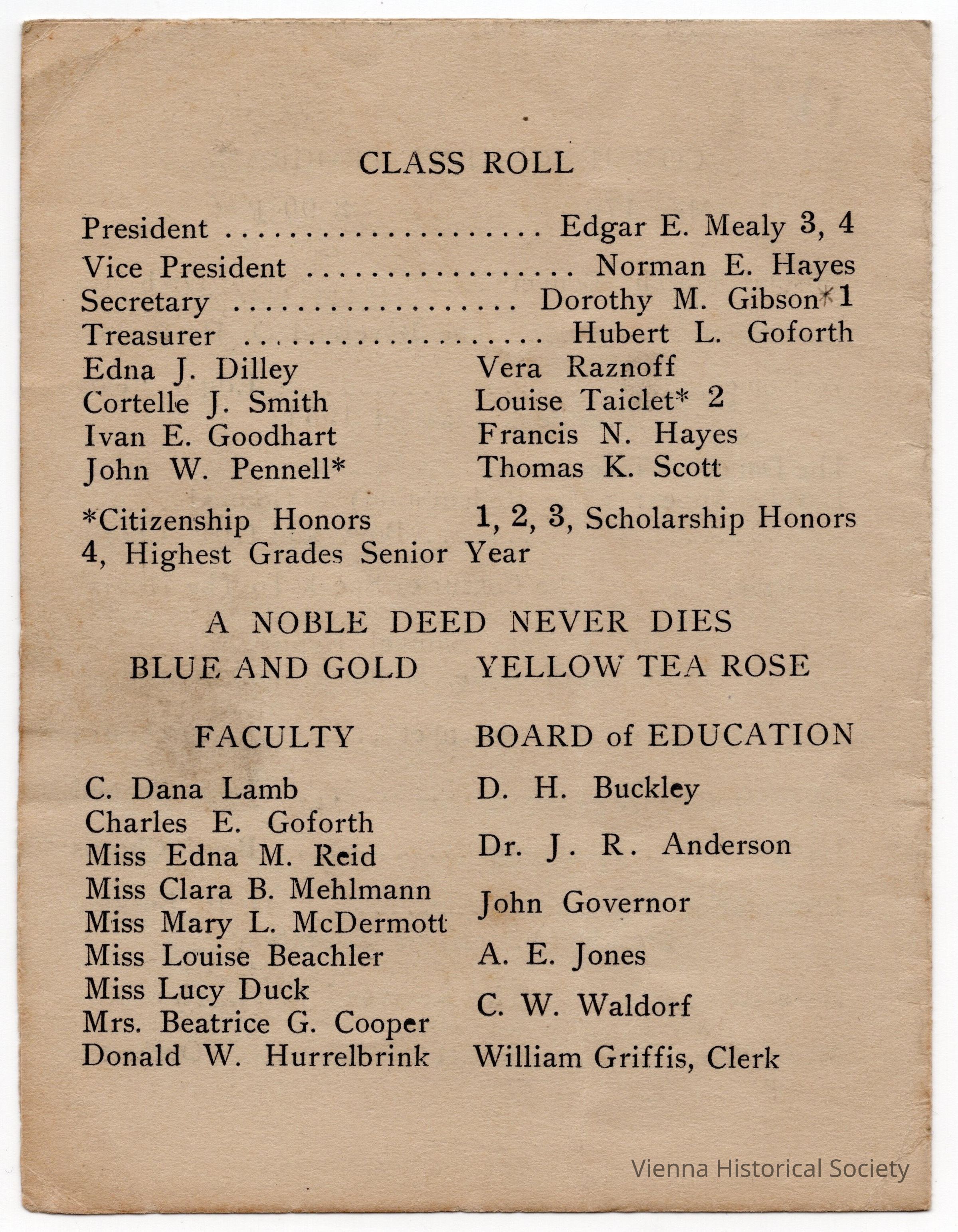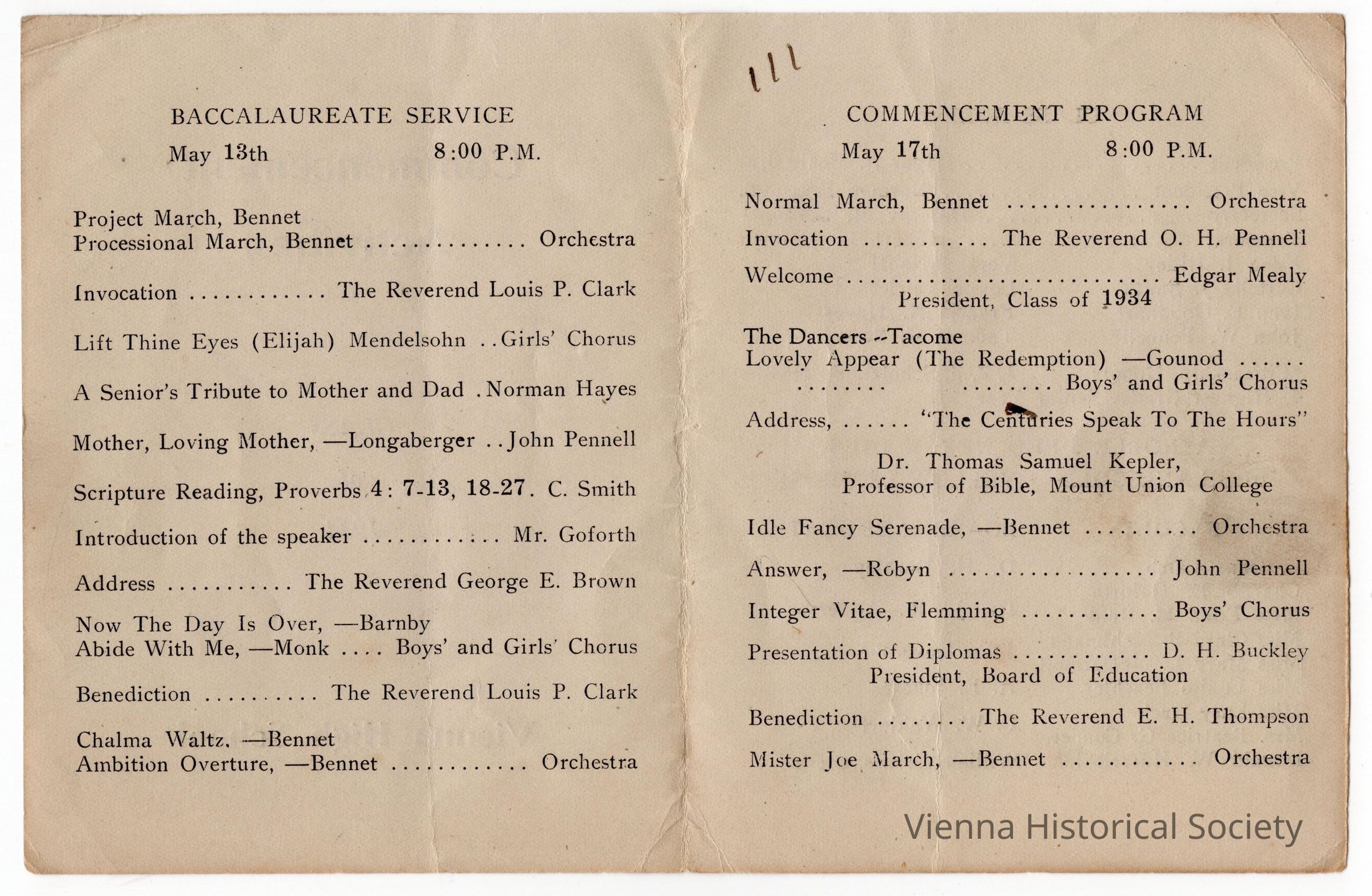 Vienna High School Commencement Program, 1934Collection