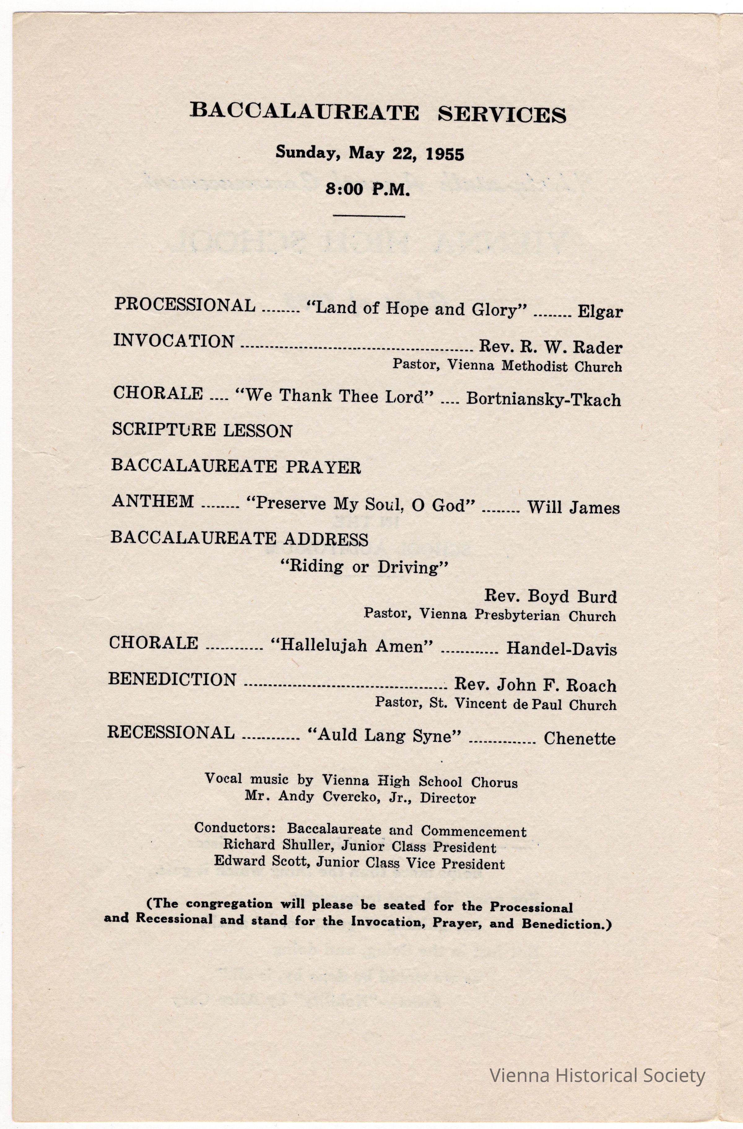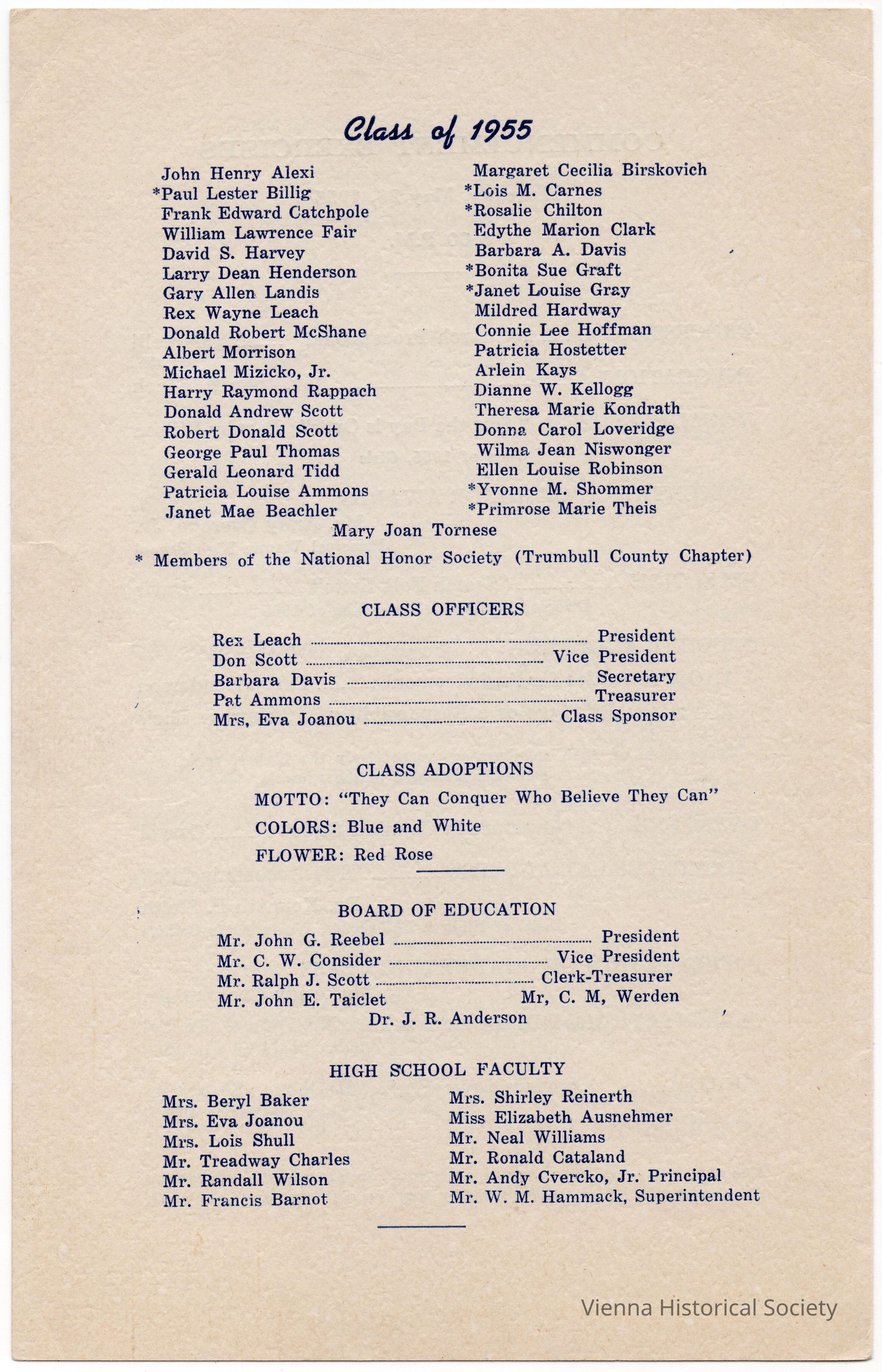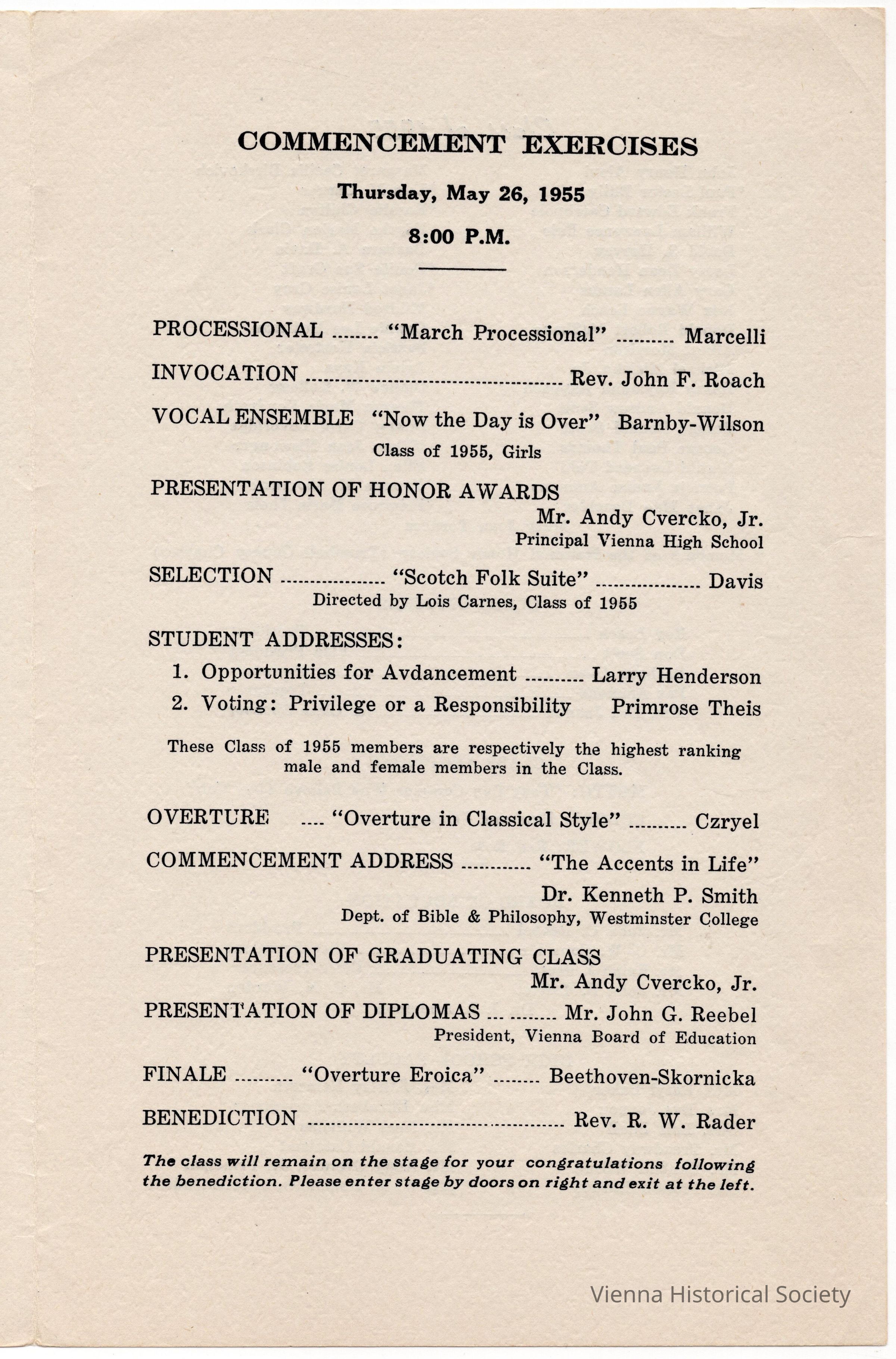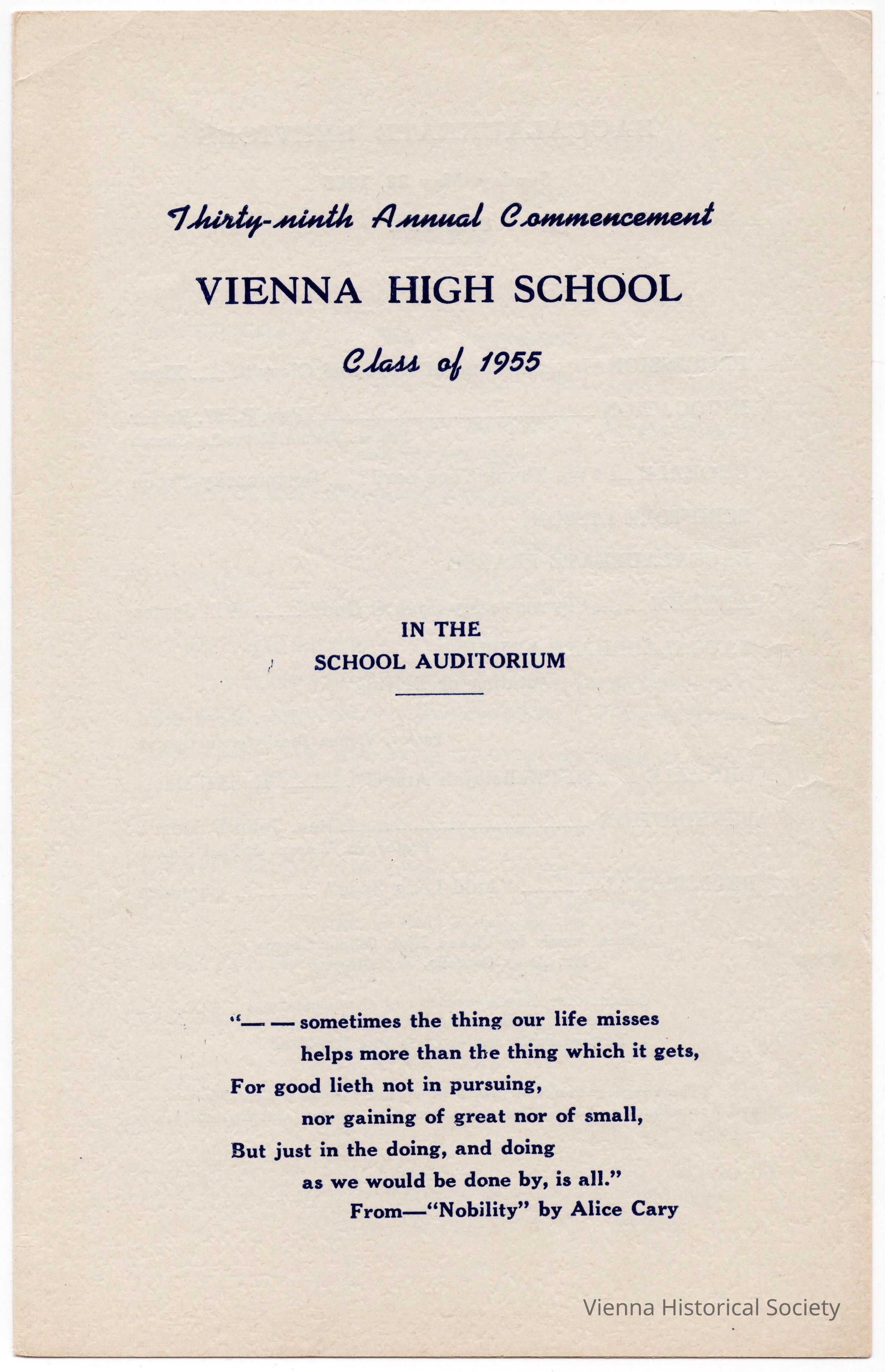 Vienna High School Commencement Program, 1955Collection