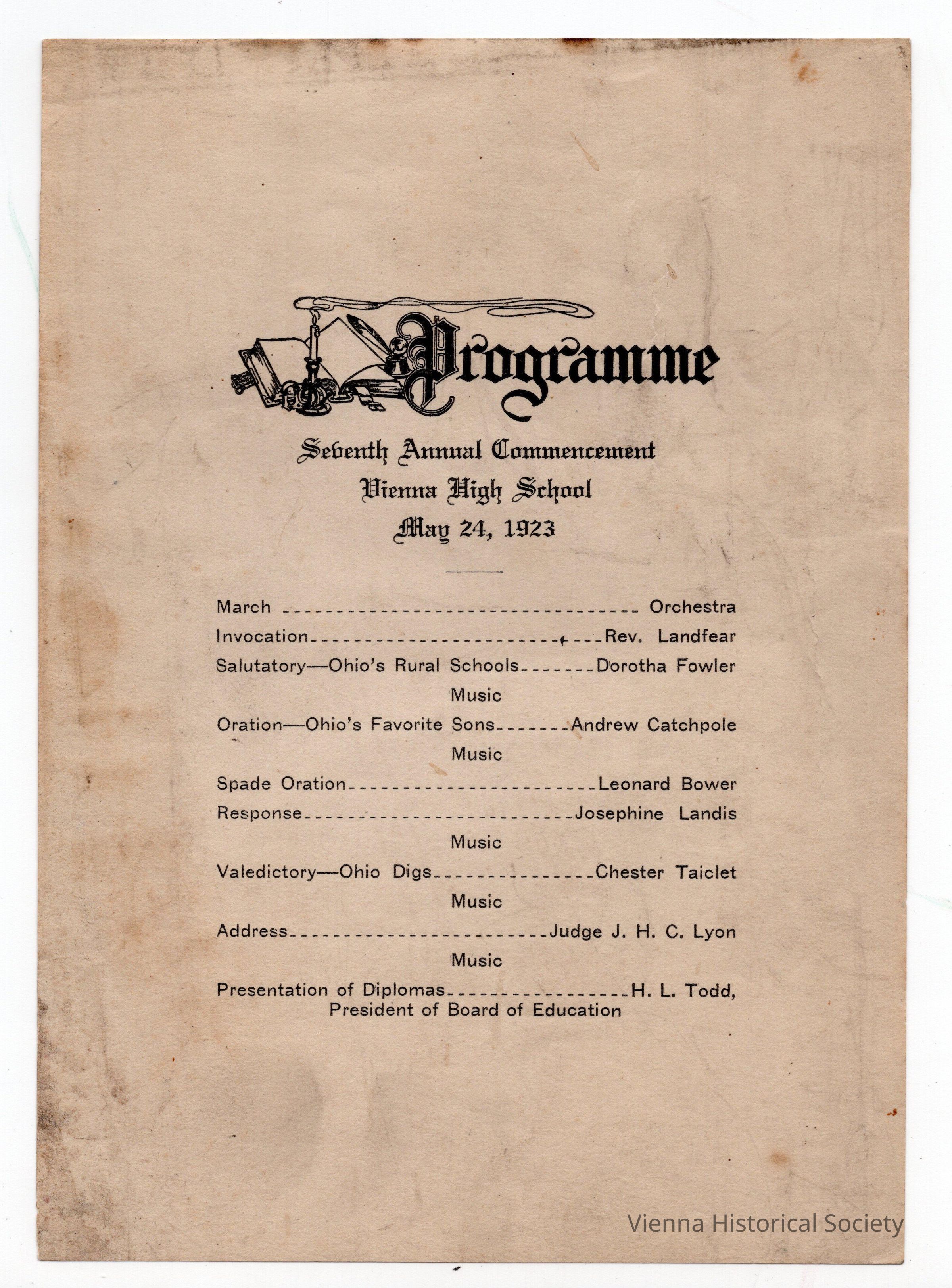 Vienna High School Commencement Program, May 24, 1923Collection