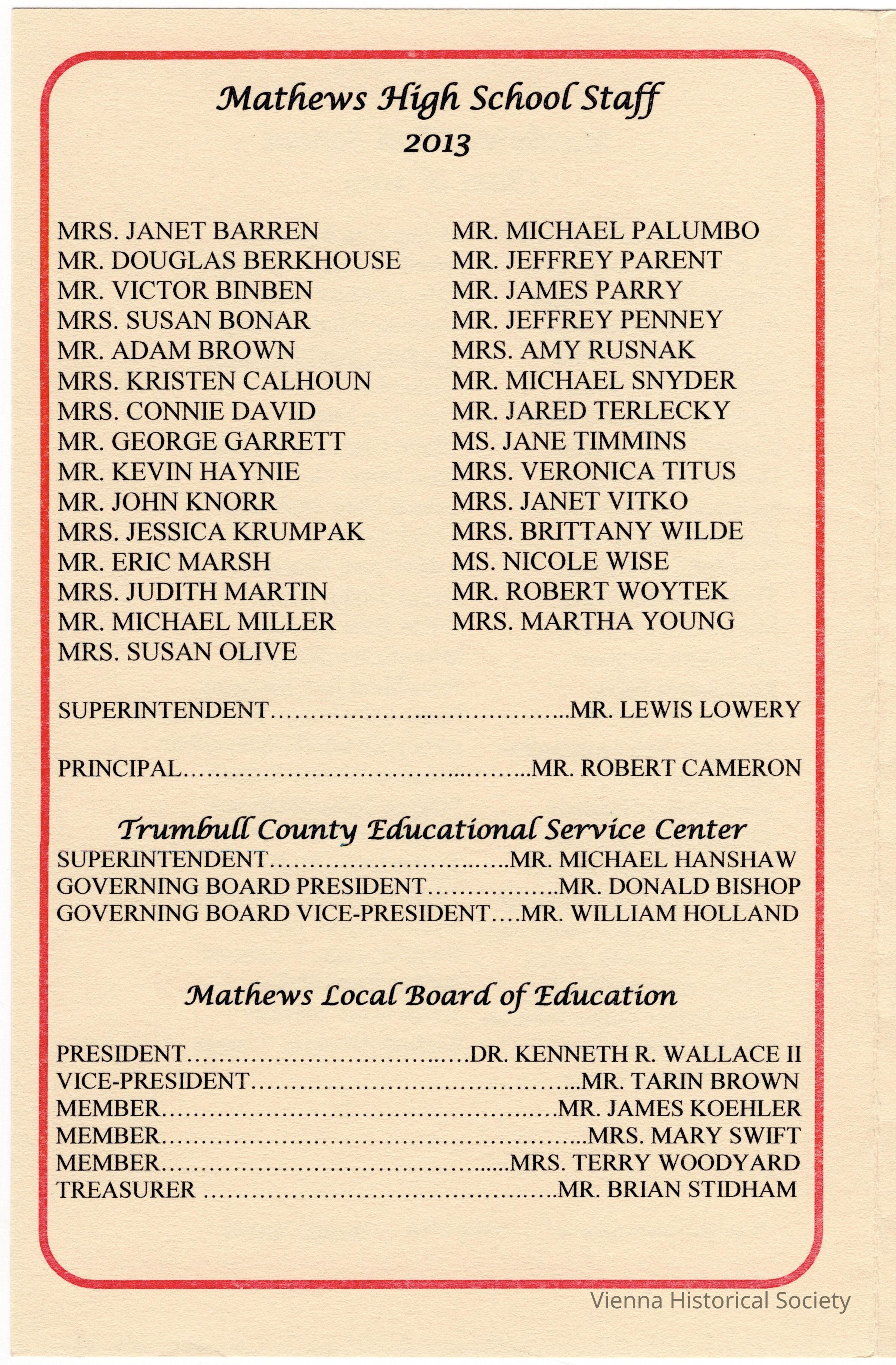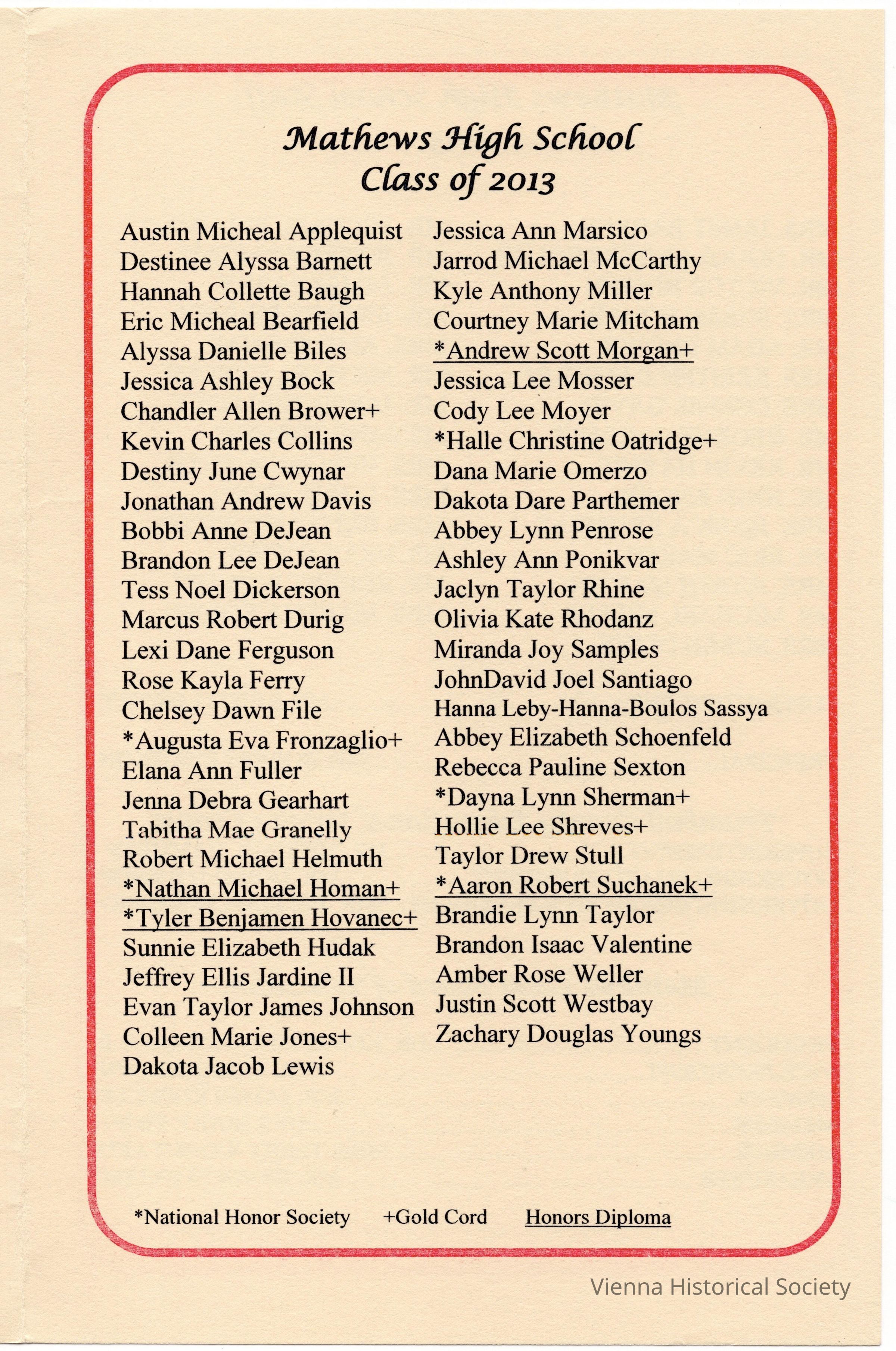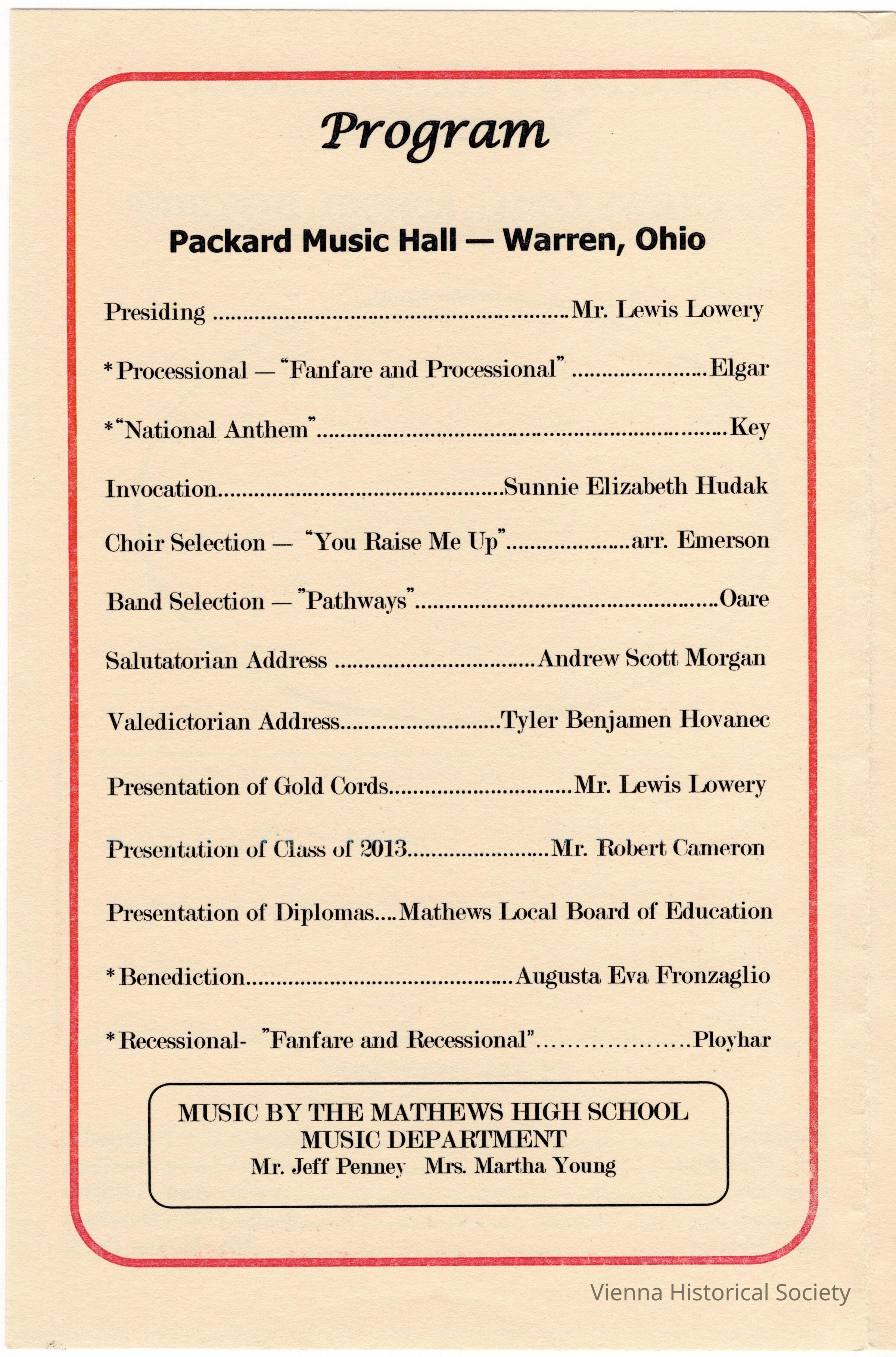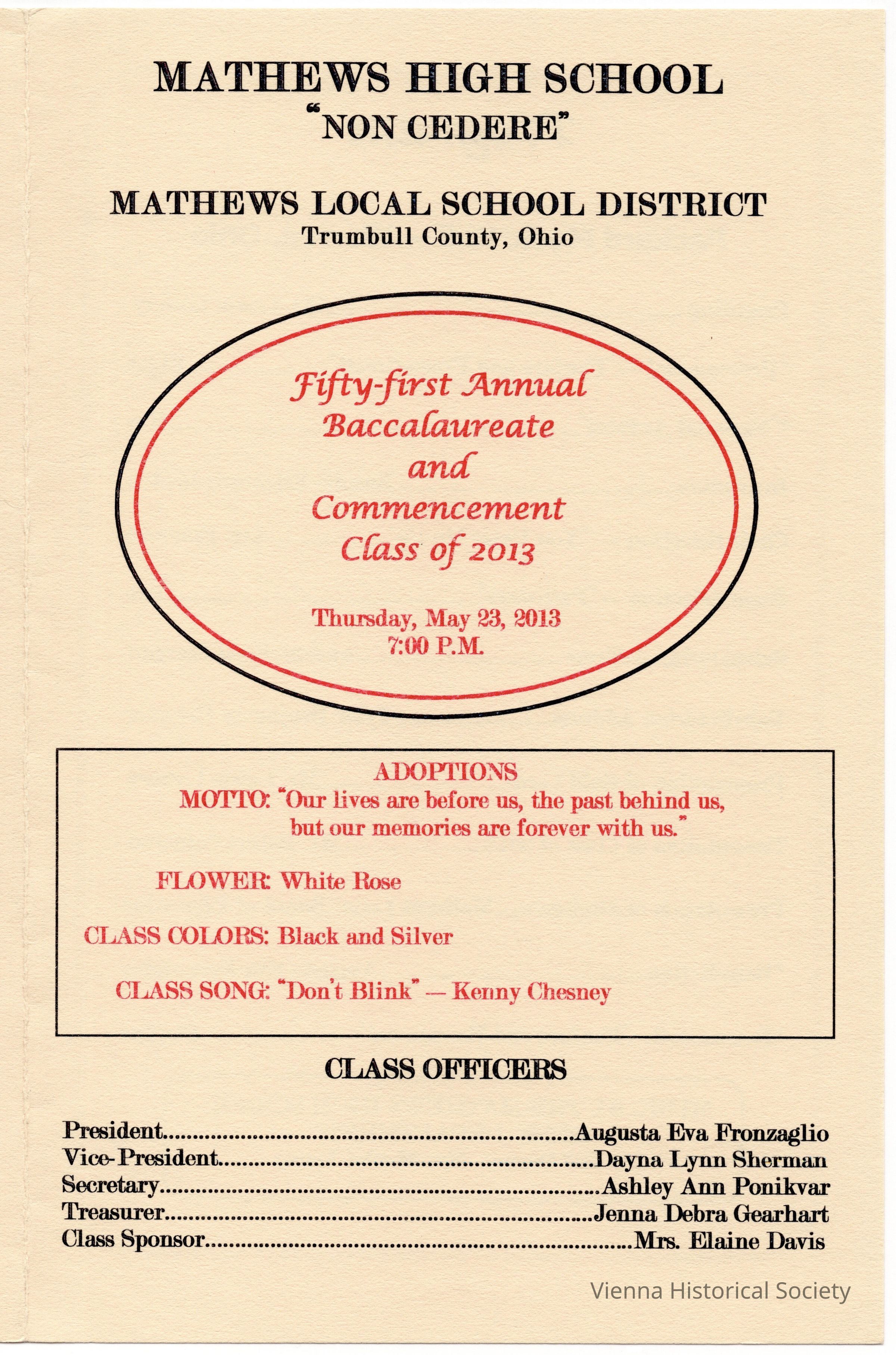 Mathews High School Commencement Program, 2013Collection
