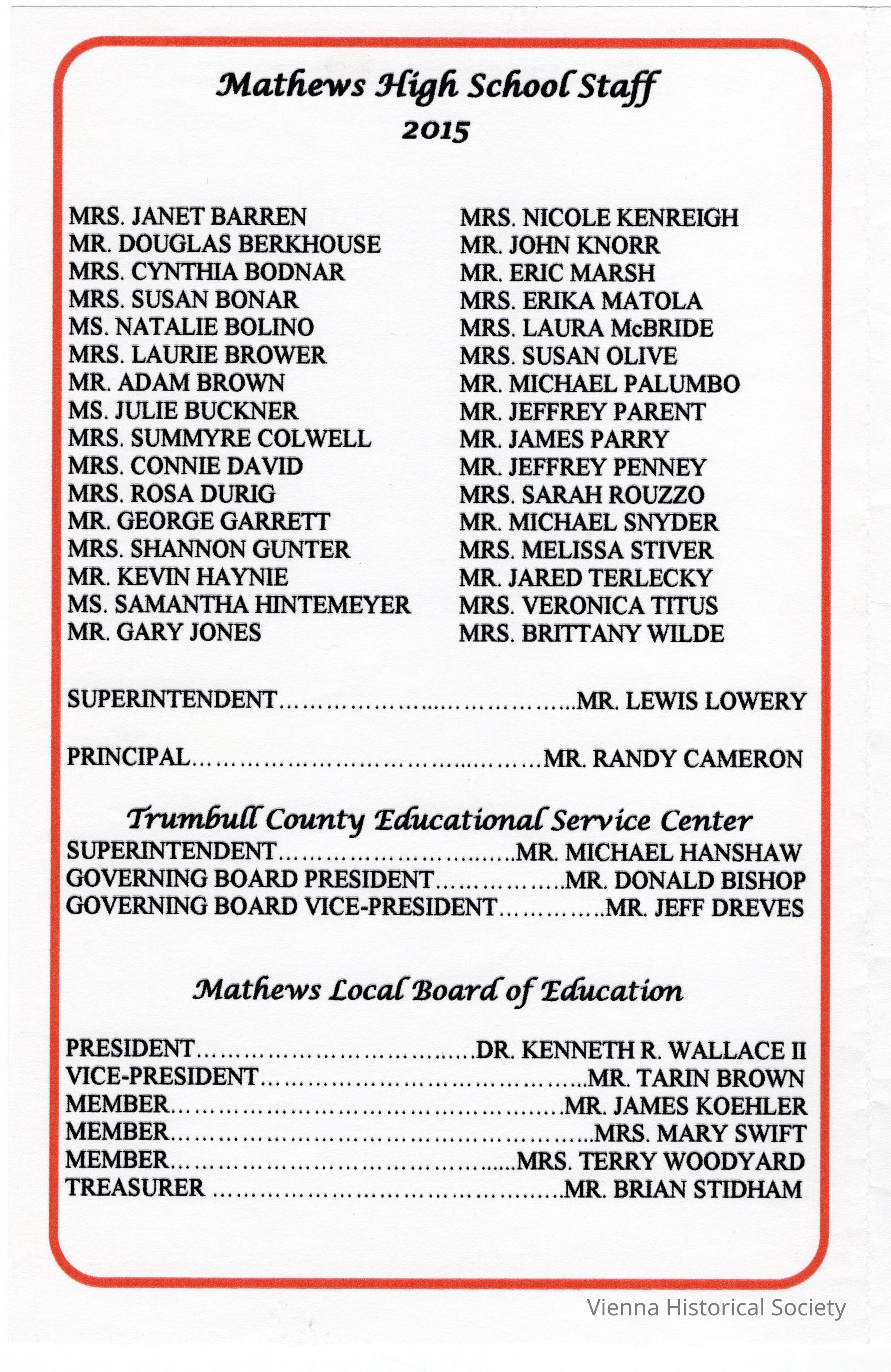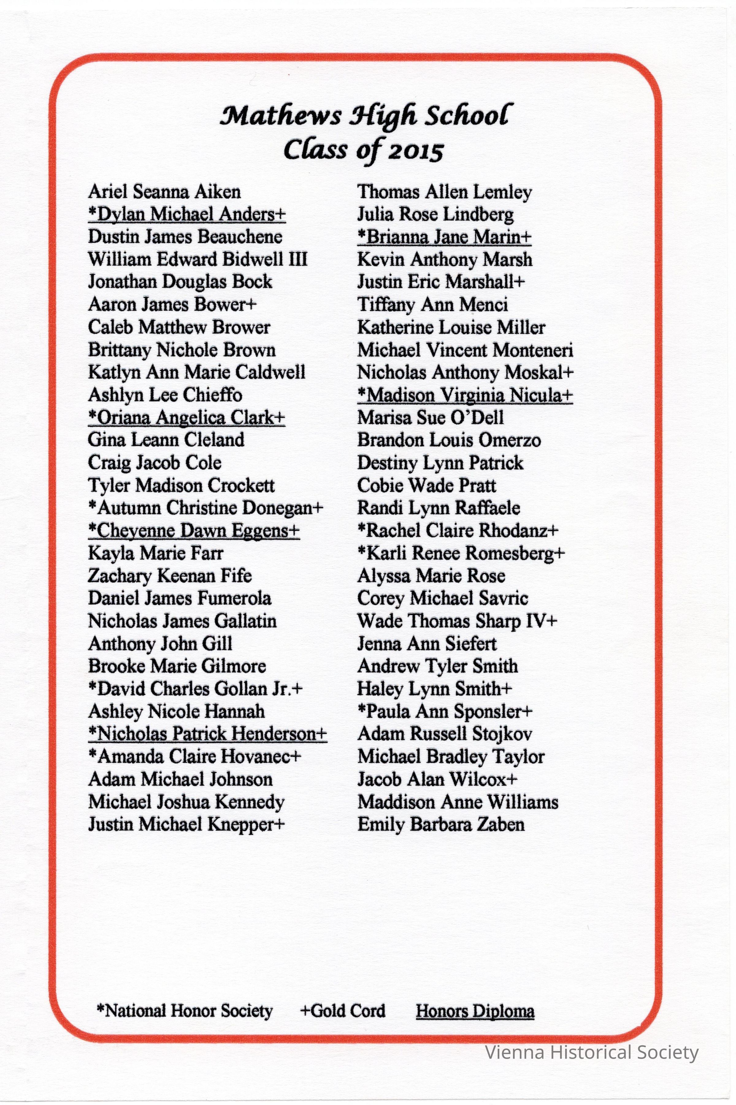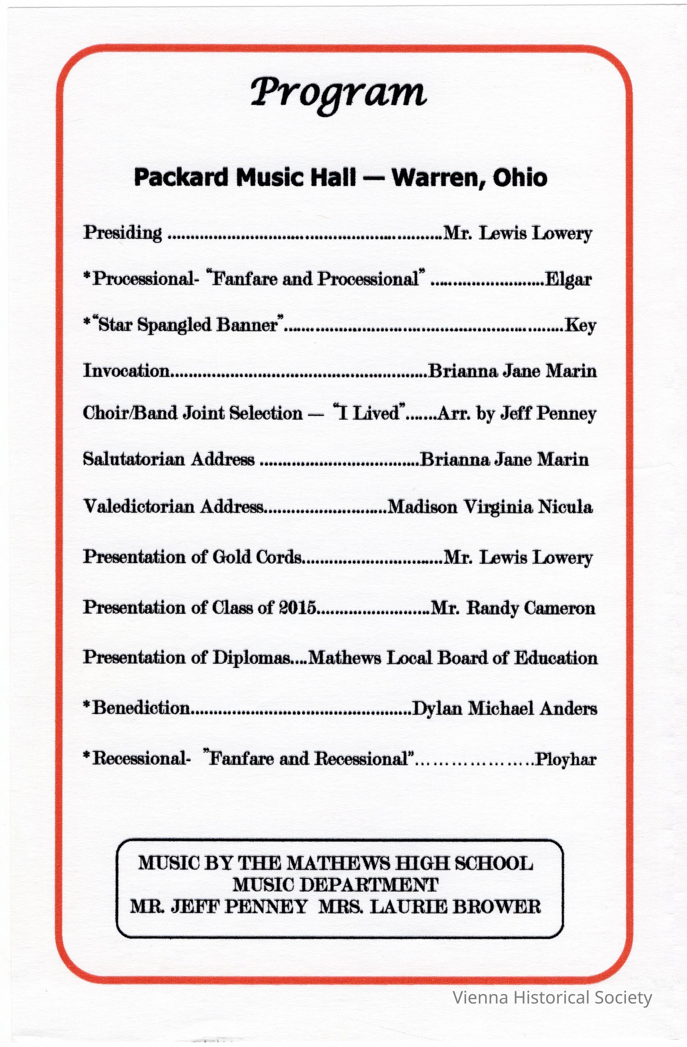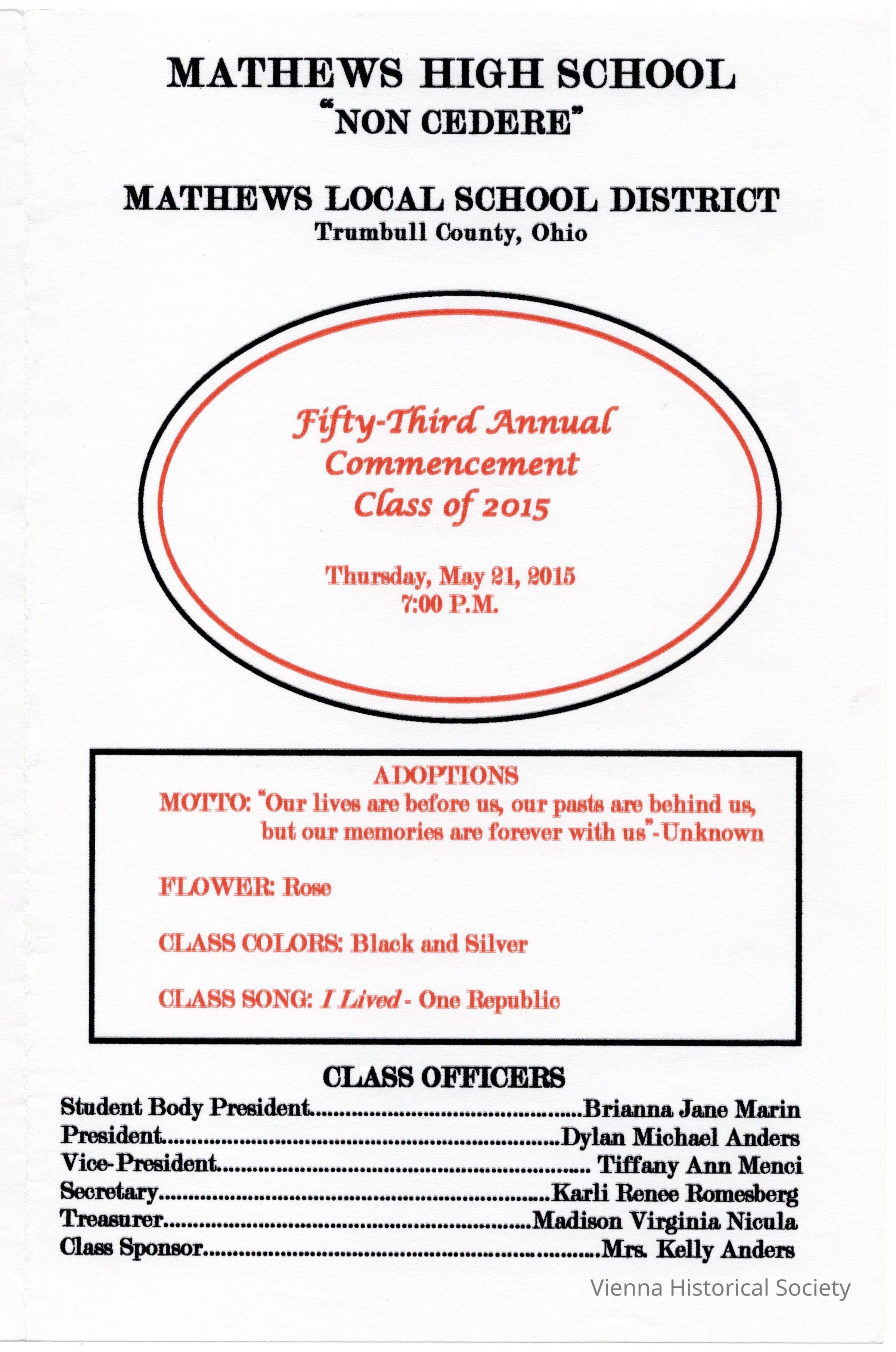 Mathews High School Commencement Program, 2015Collection