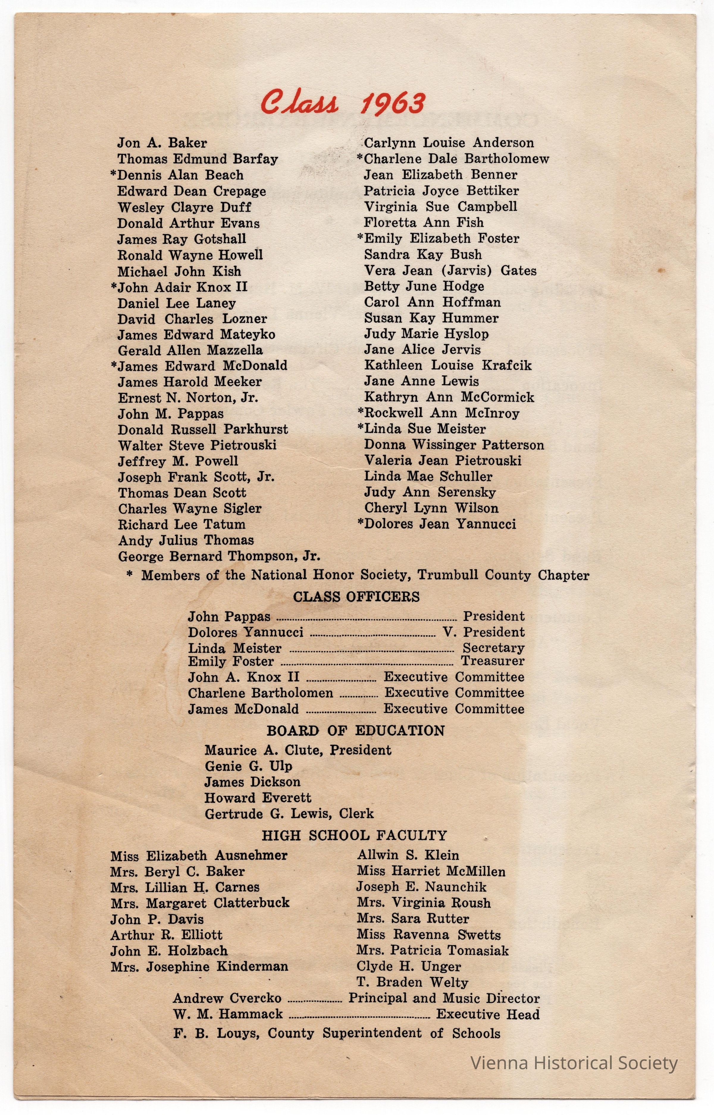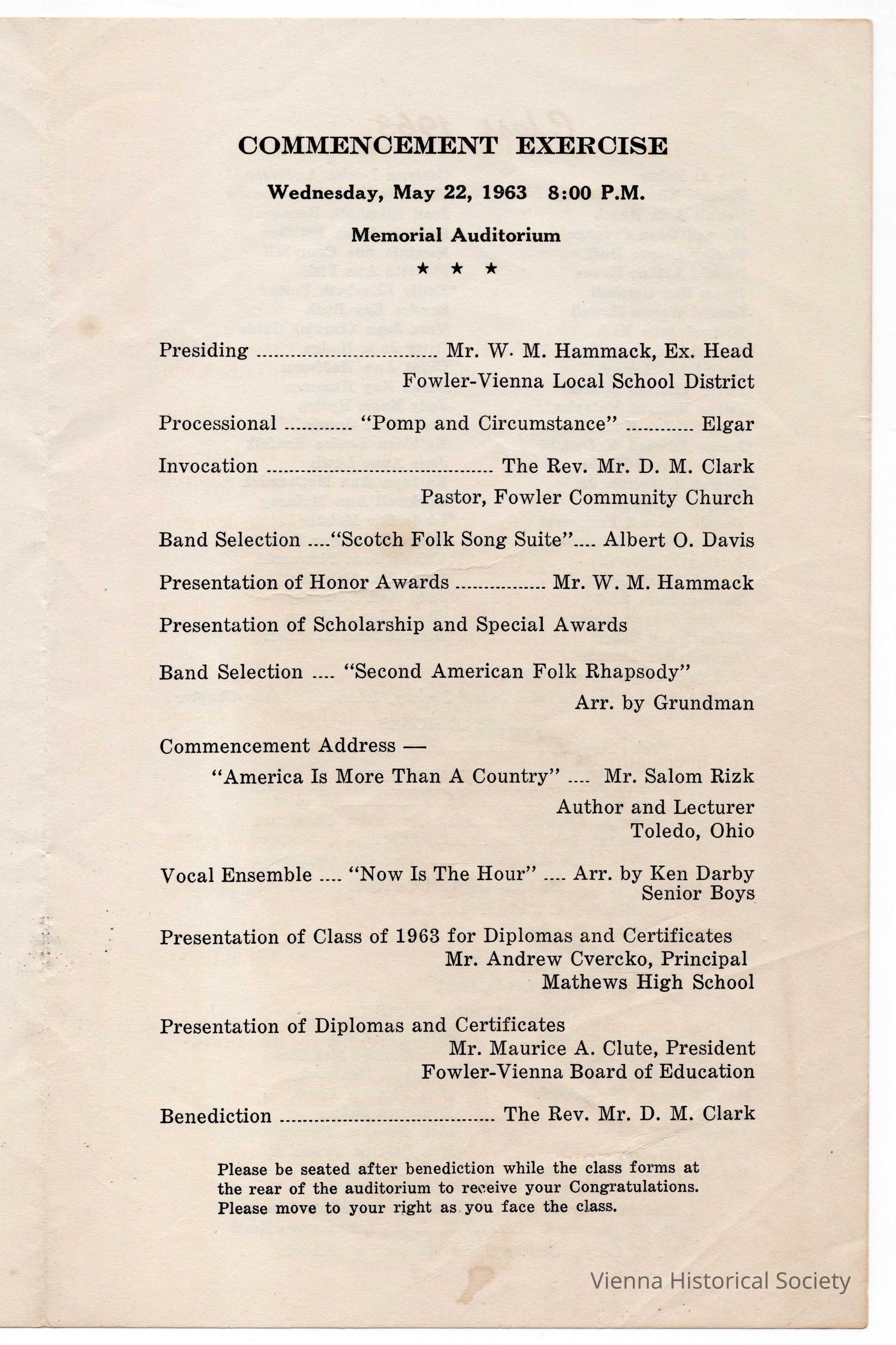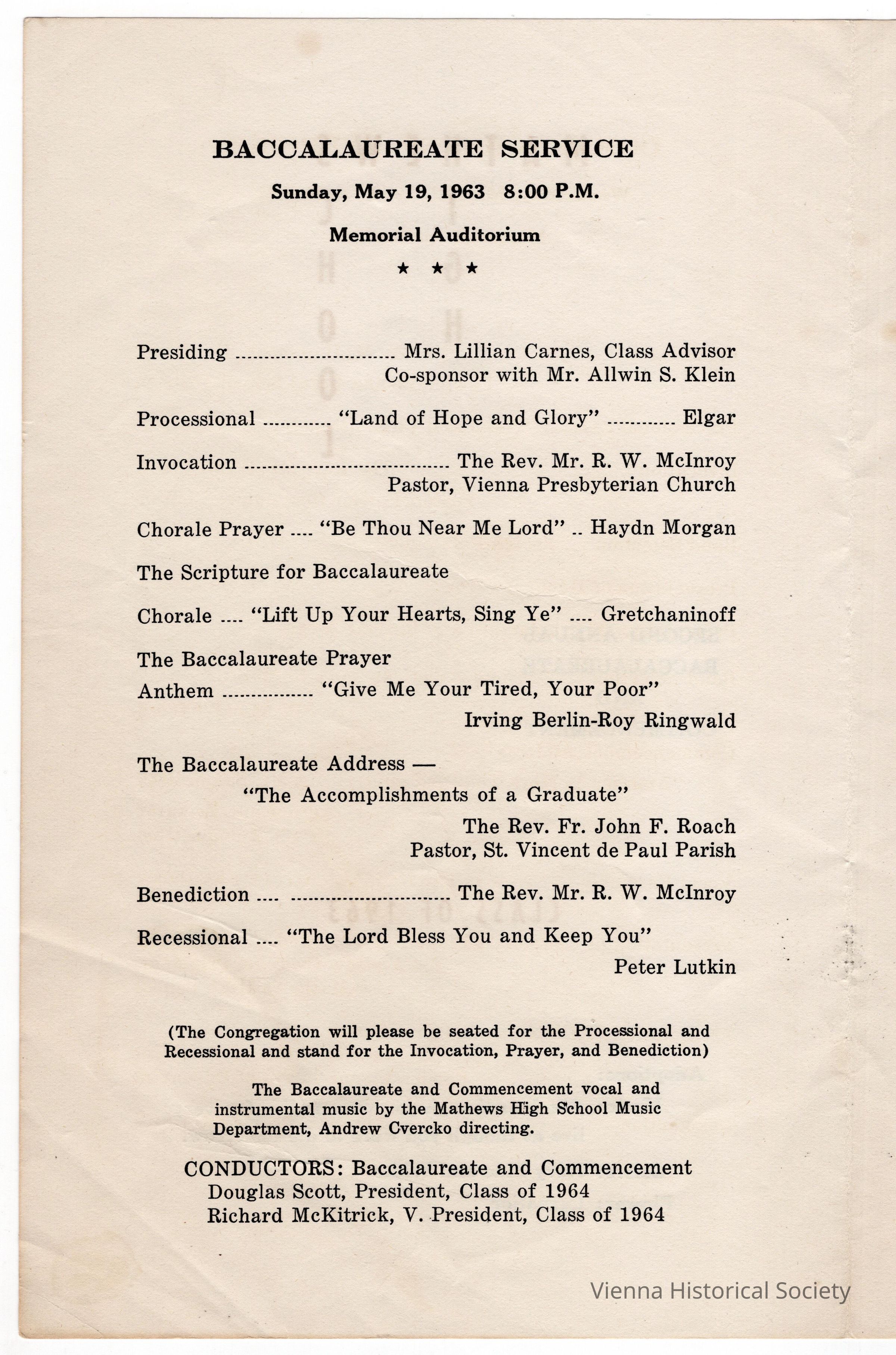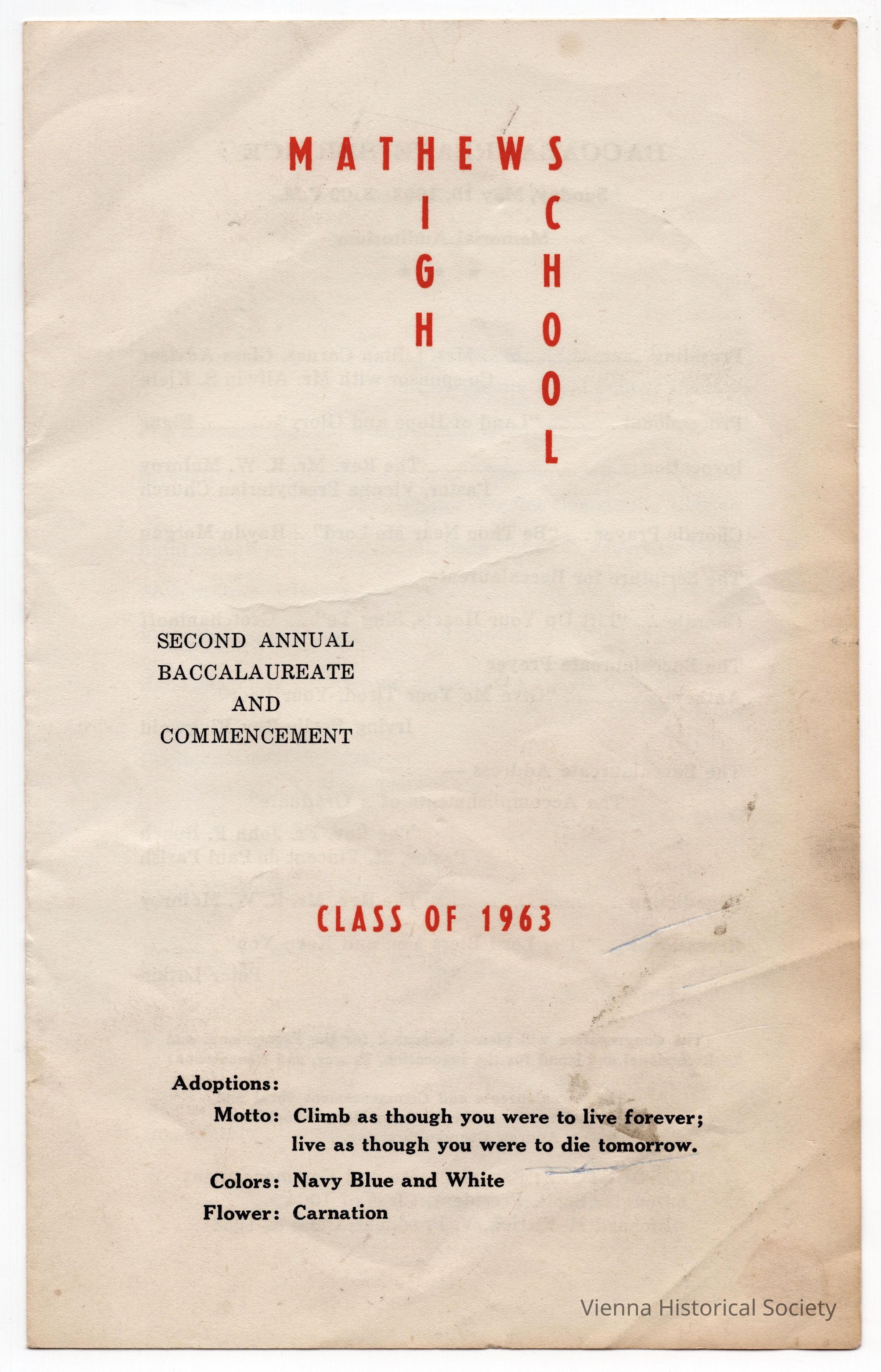 Mathews High School Baccalaureate and Commencement Program, 1963Collection
