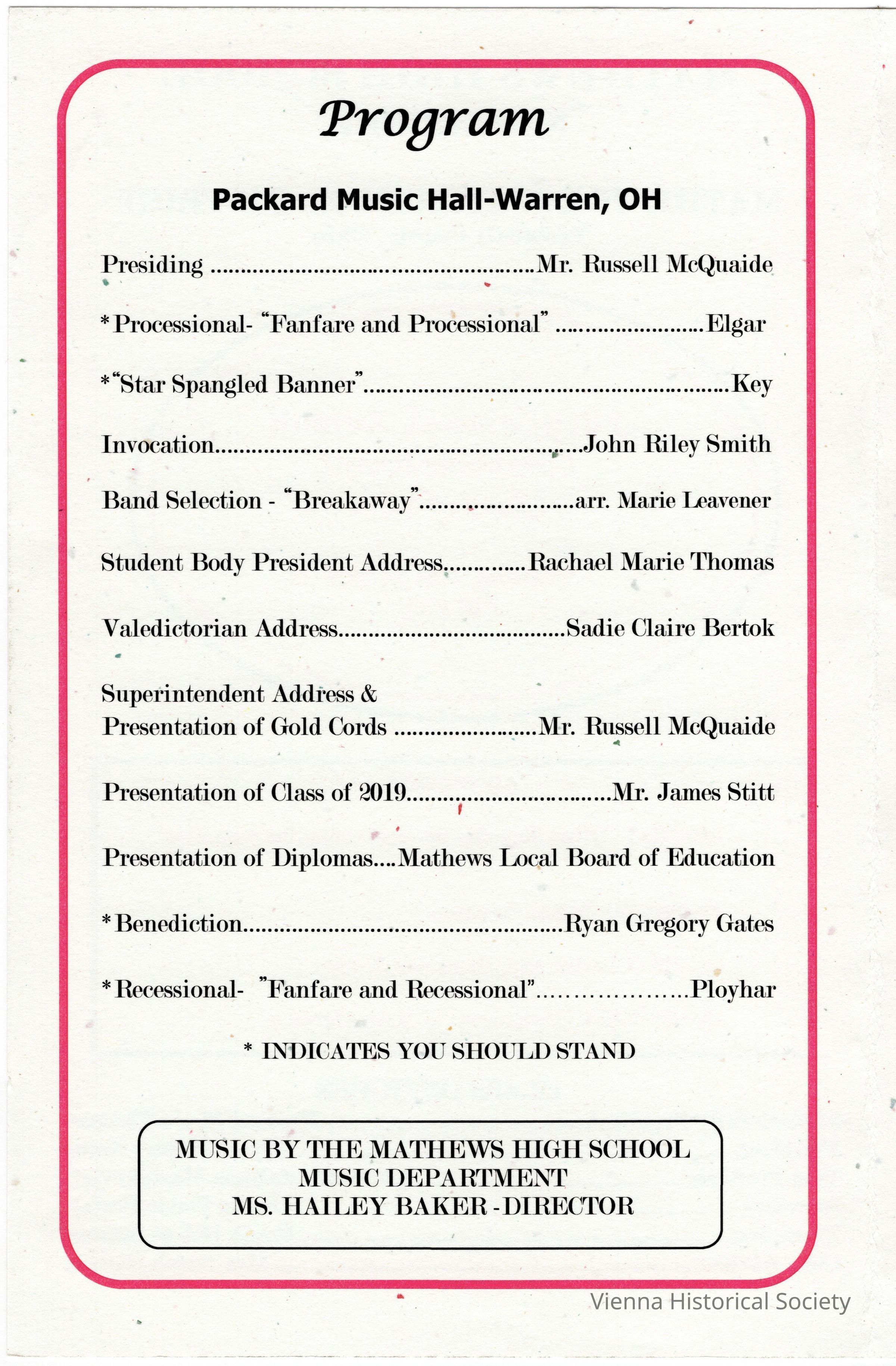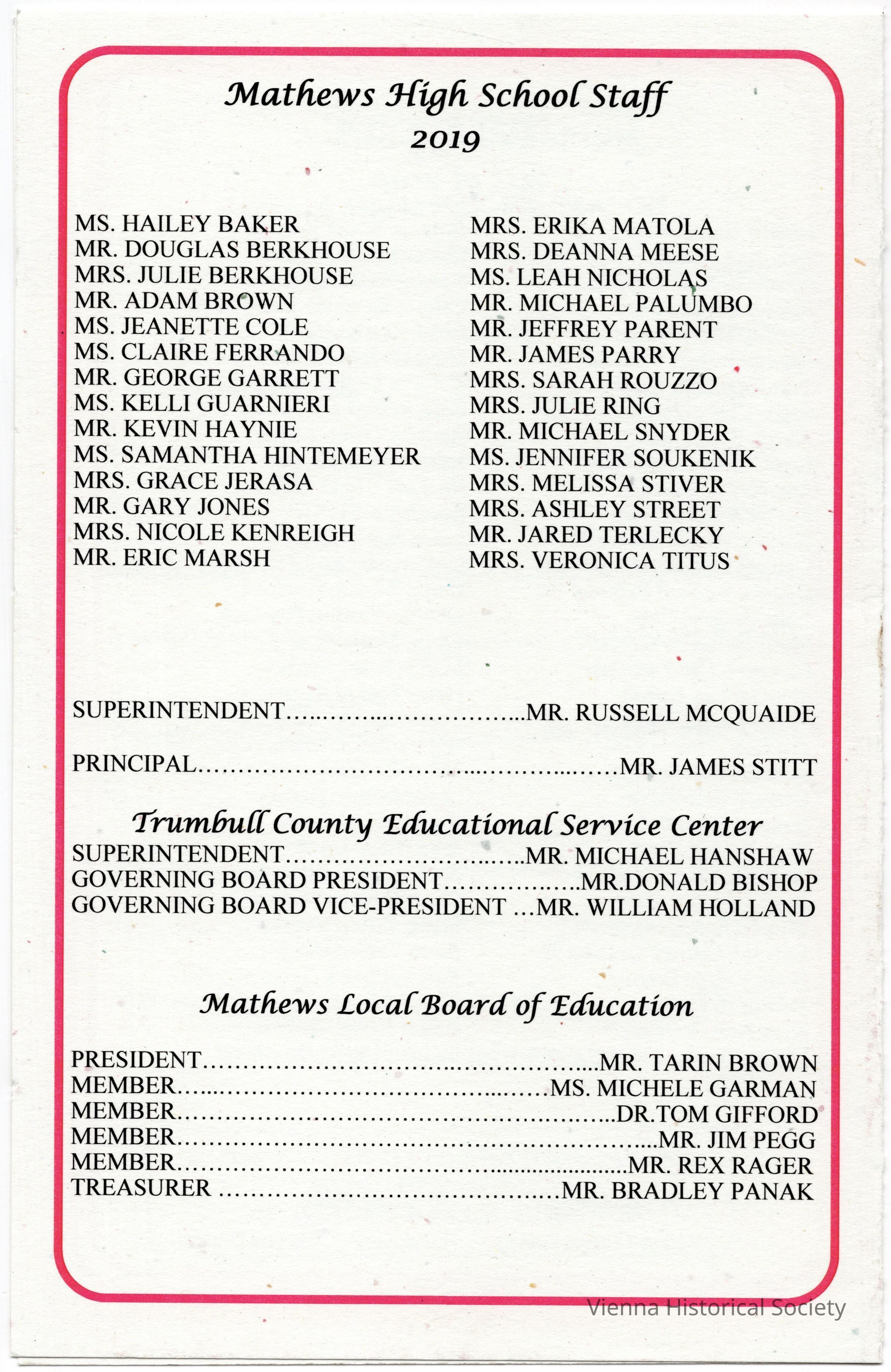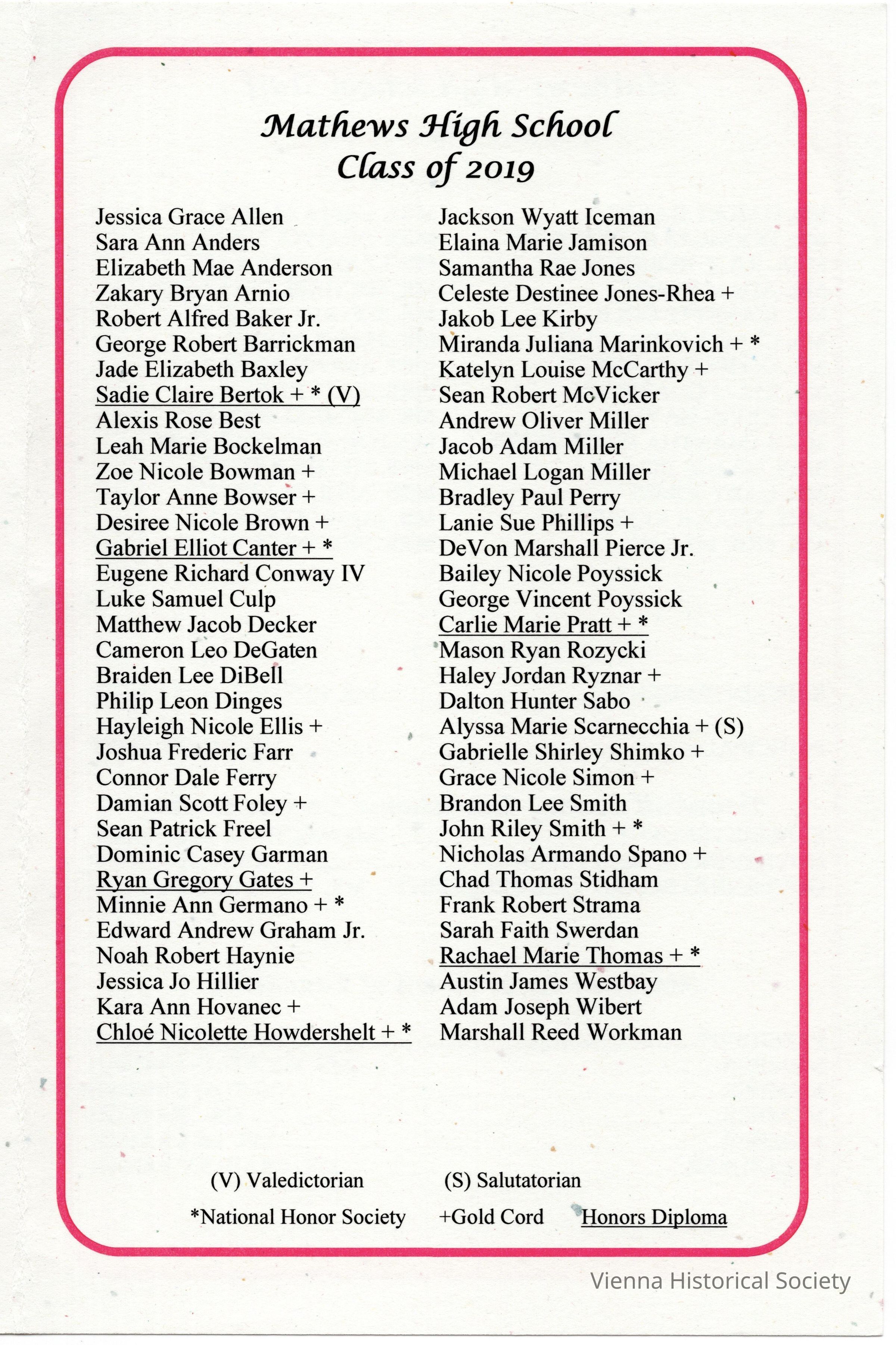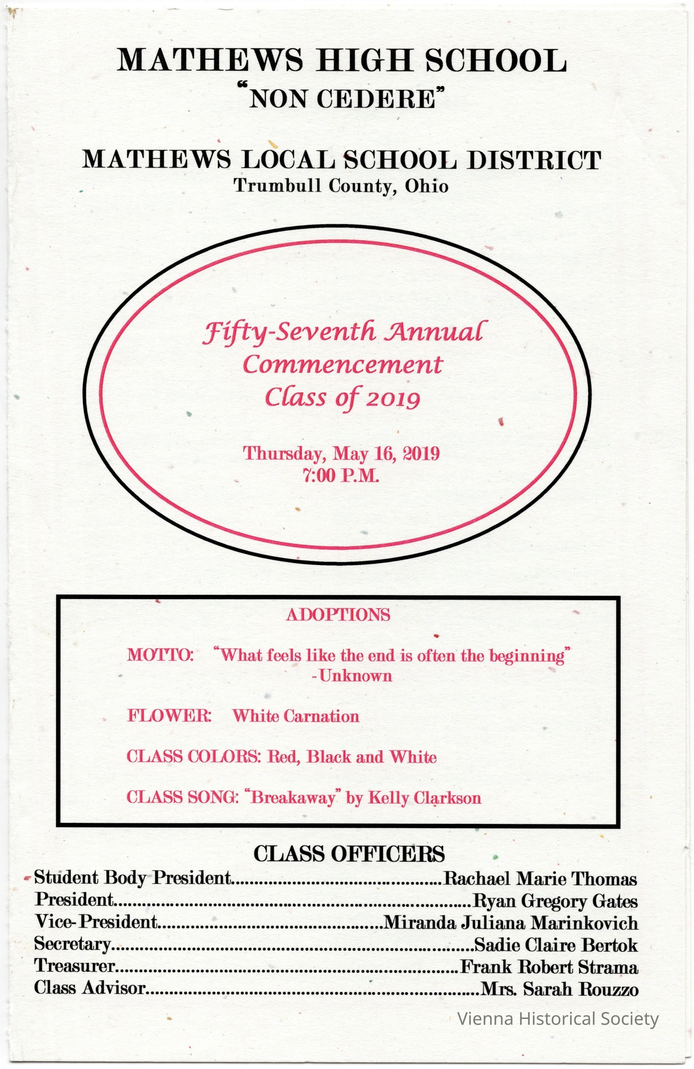 Mathews High School Commencement Program, 2019Collection