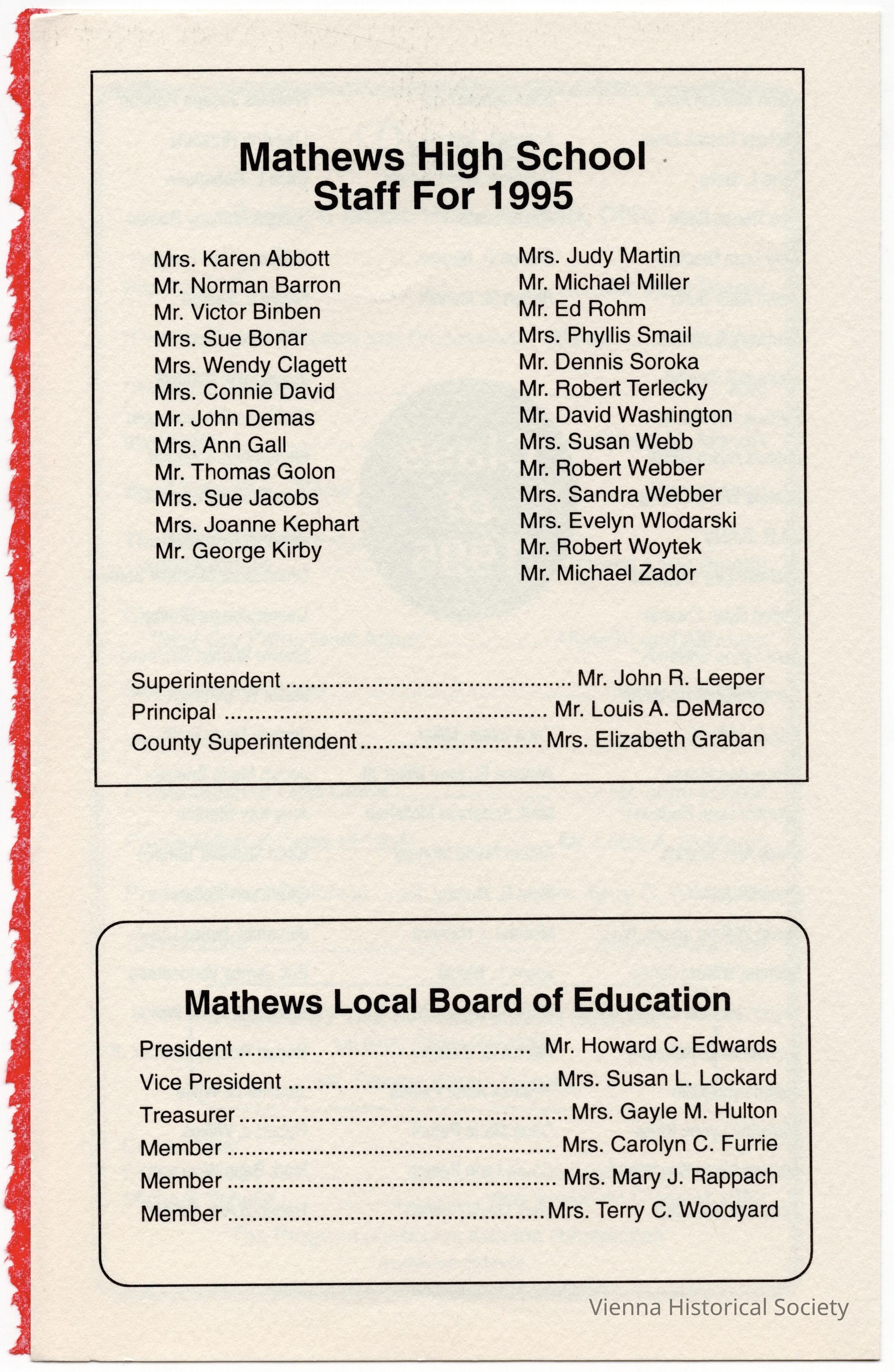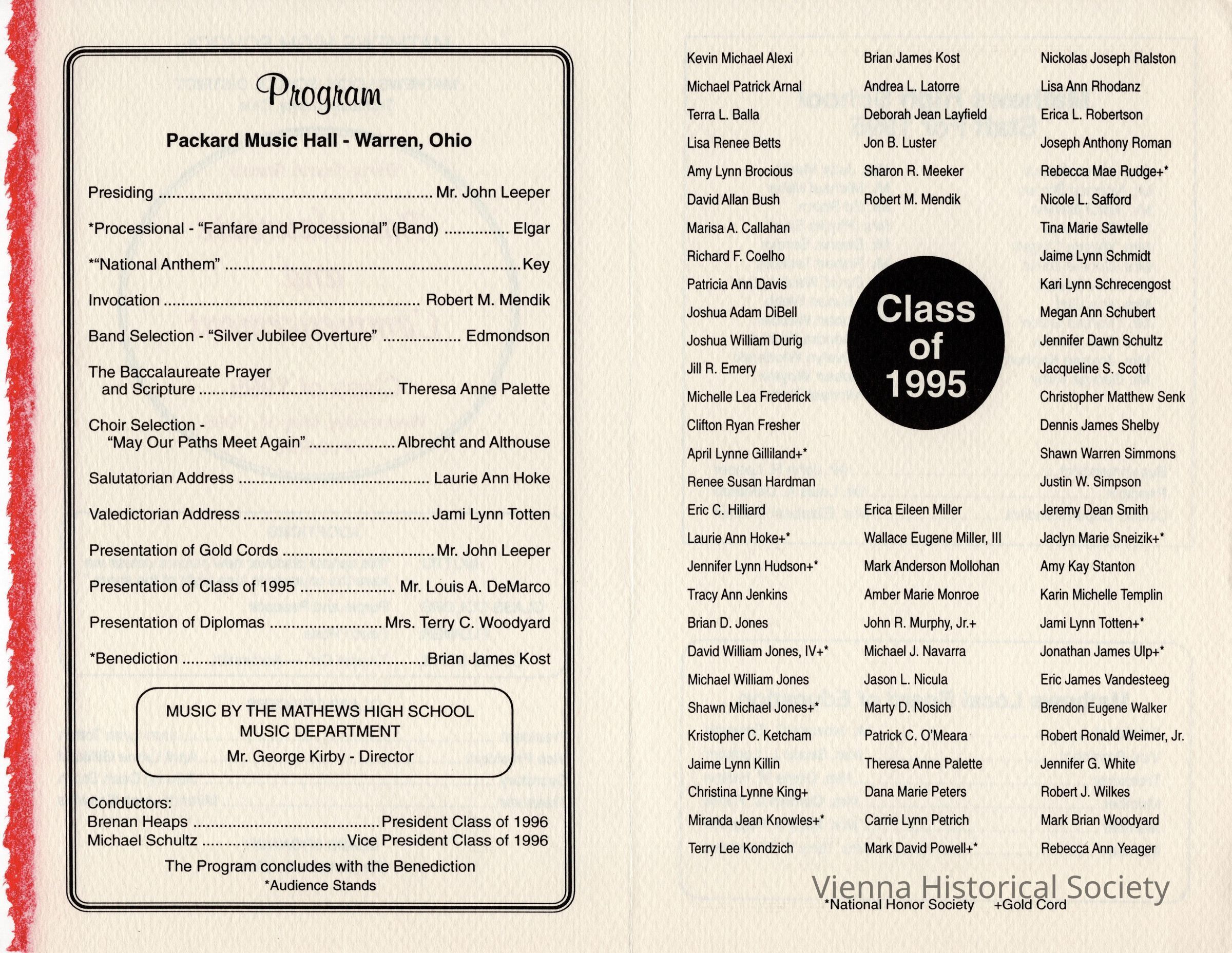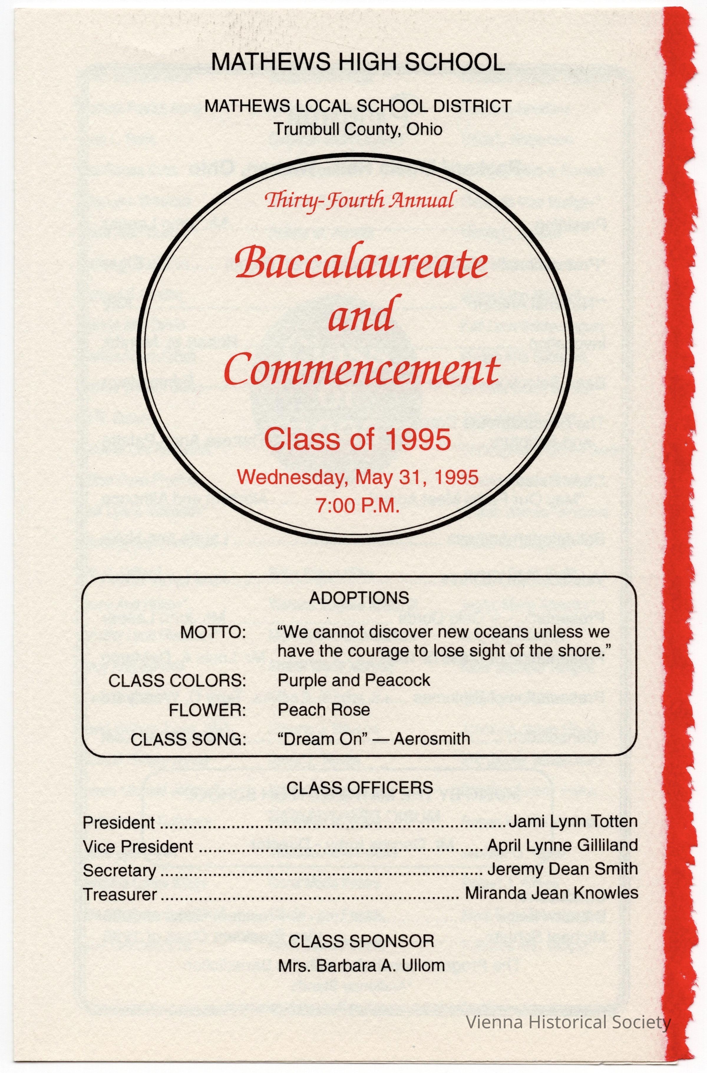 Mathews High School Commencement Program, 1995Collection