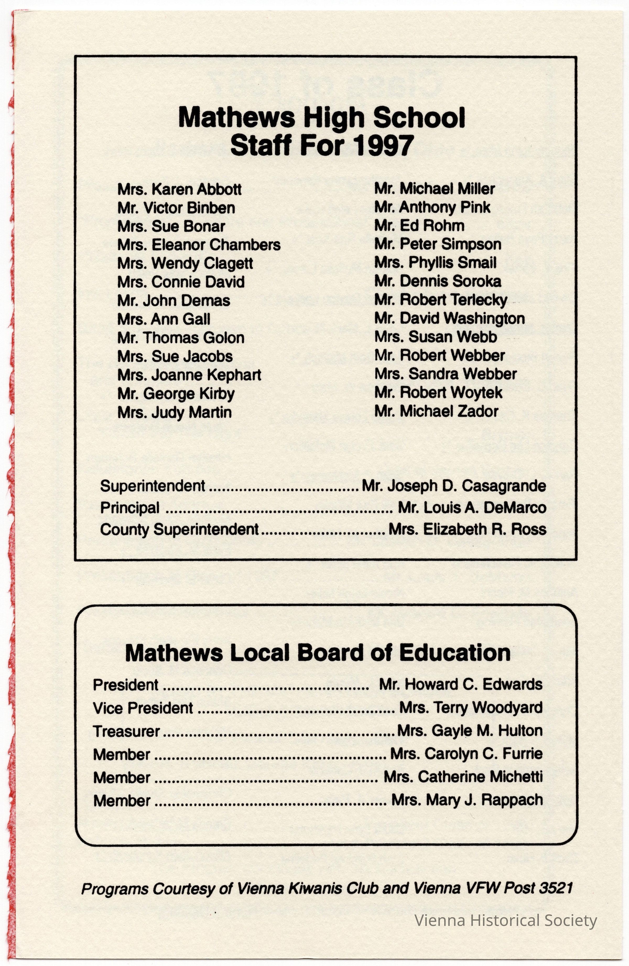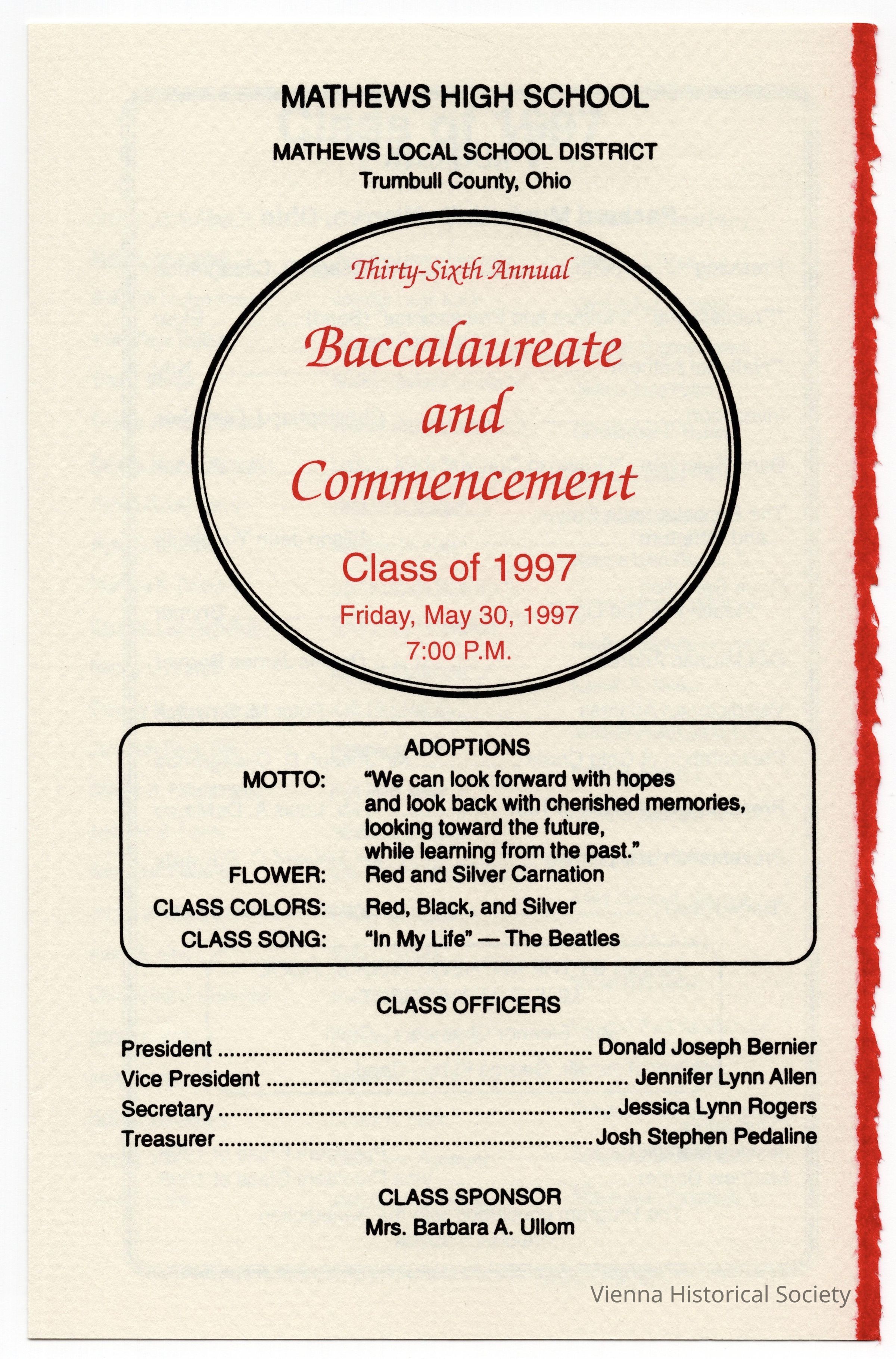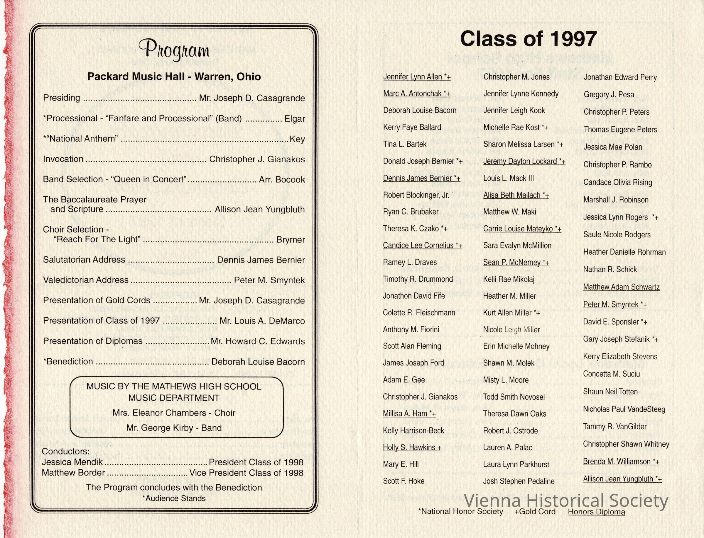 Mathews High School Commencement Program, 1997Collection