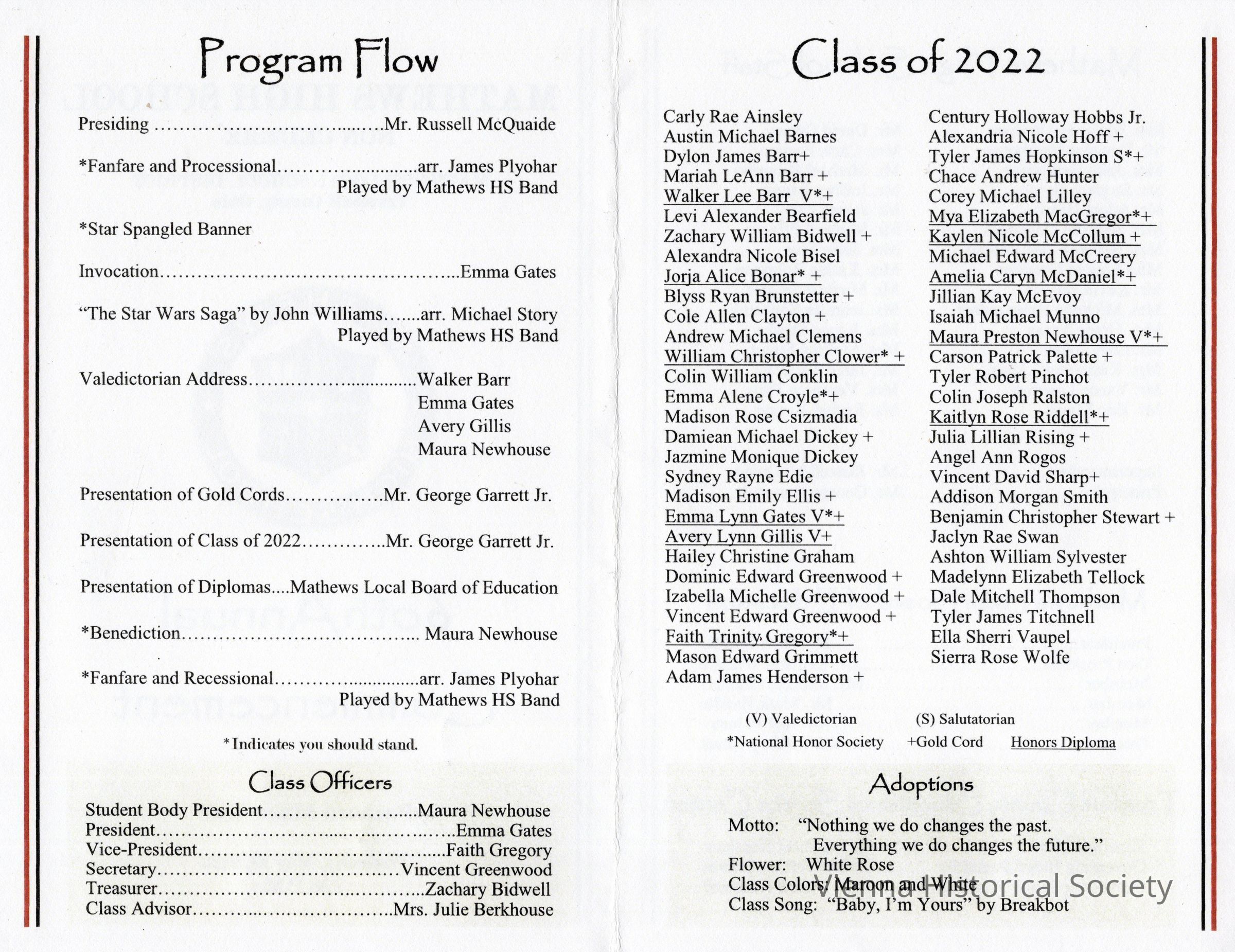 Mathews High School Commencement Program, 2022Collection