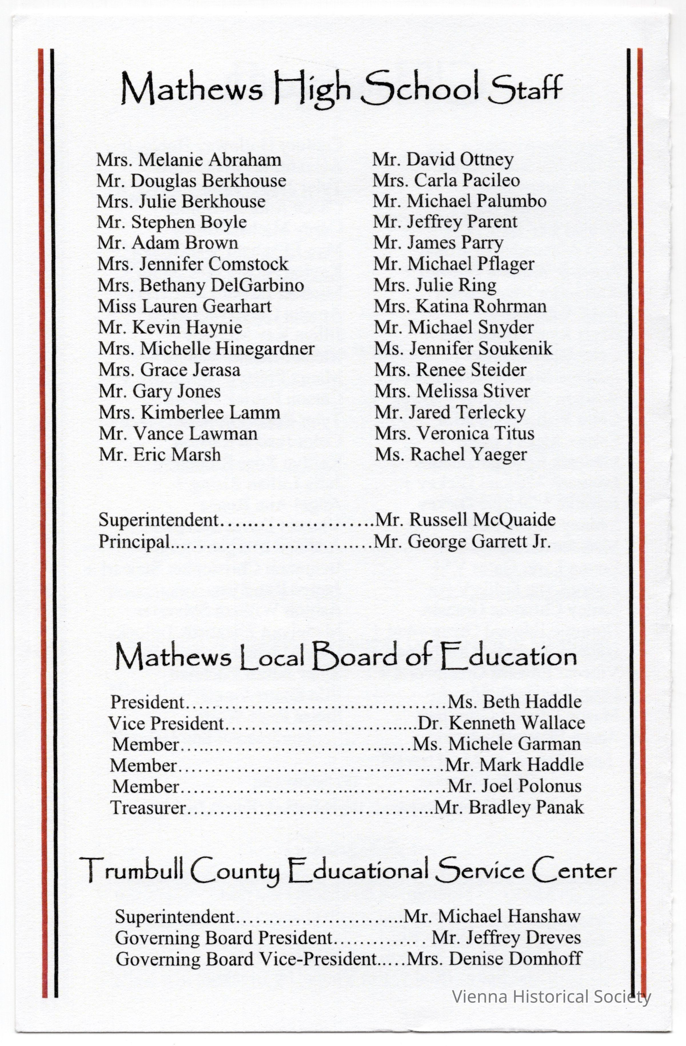 Mathews Schools 1962-PresentDate
