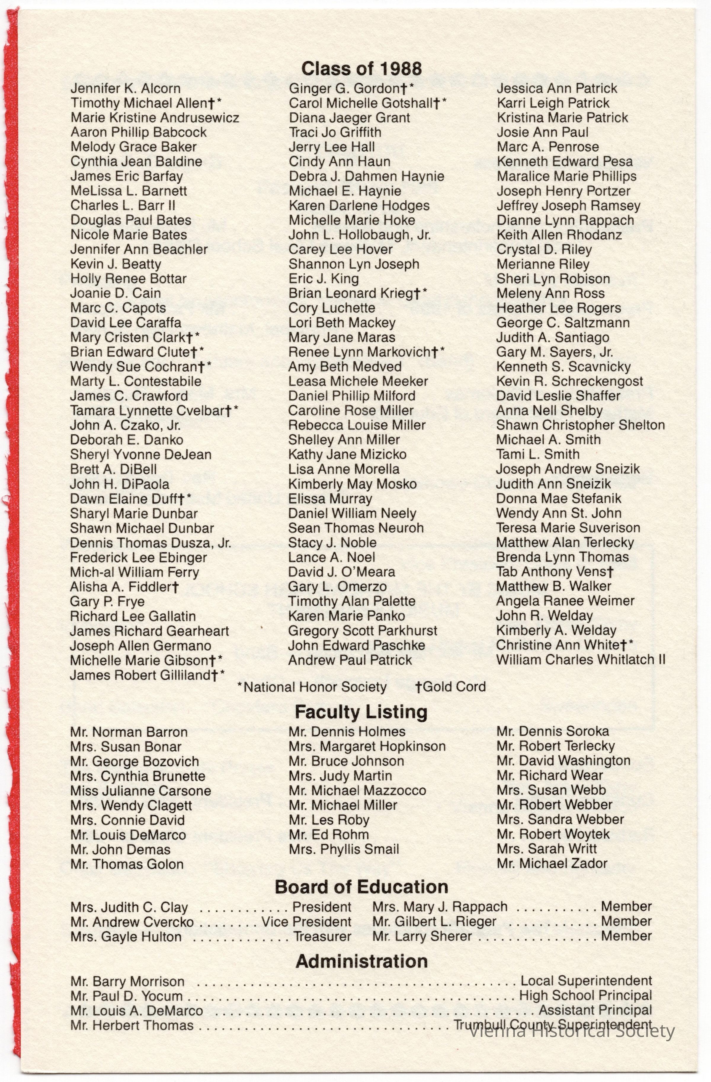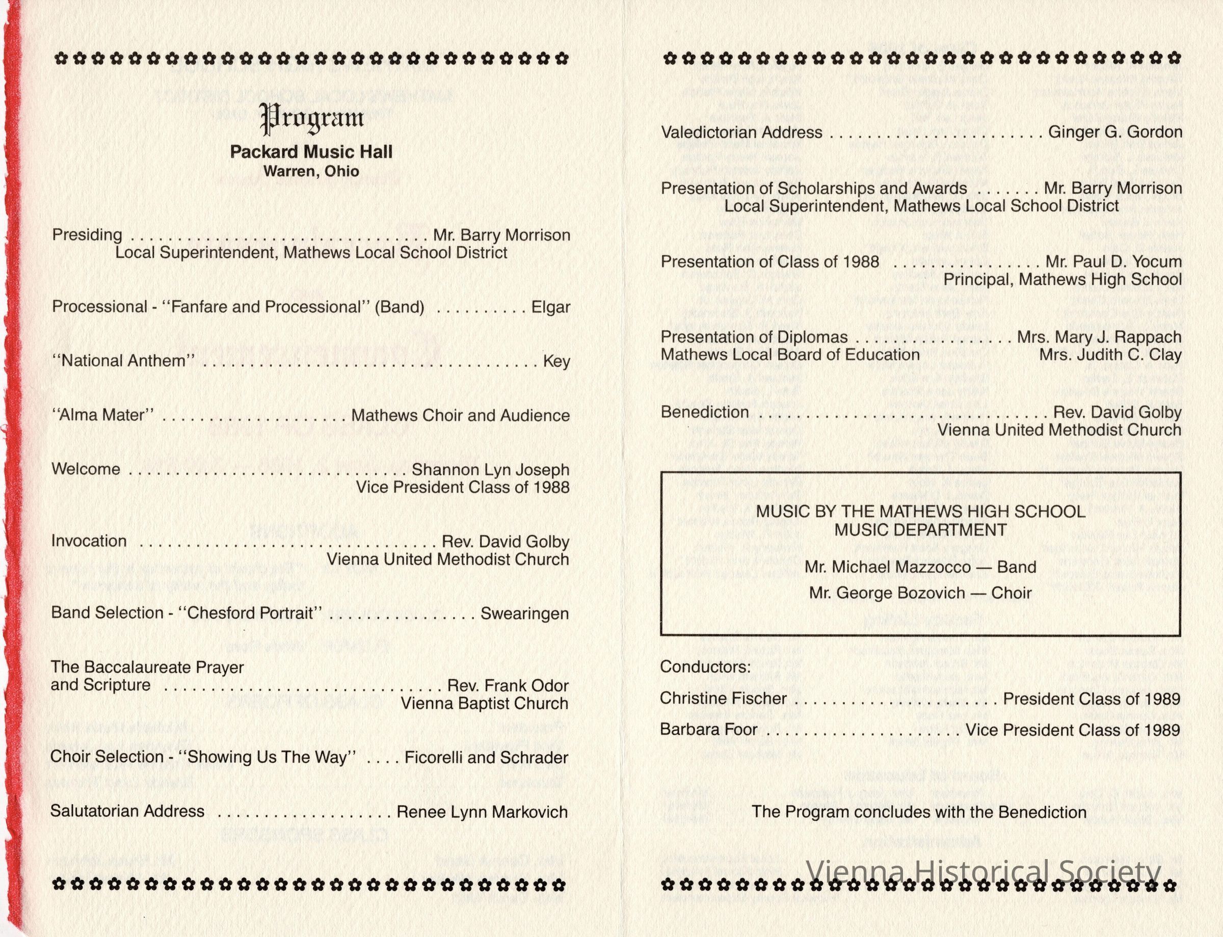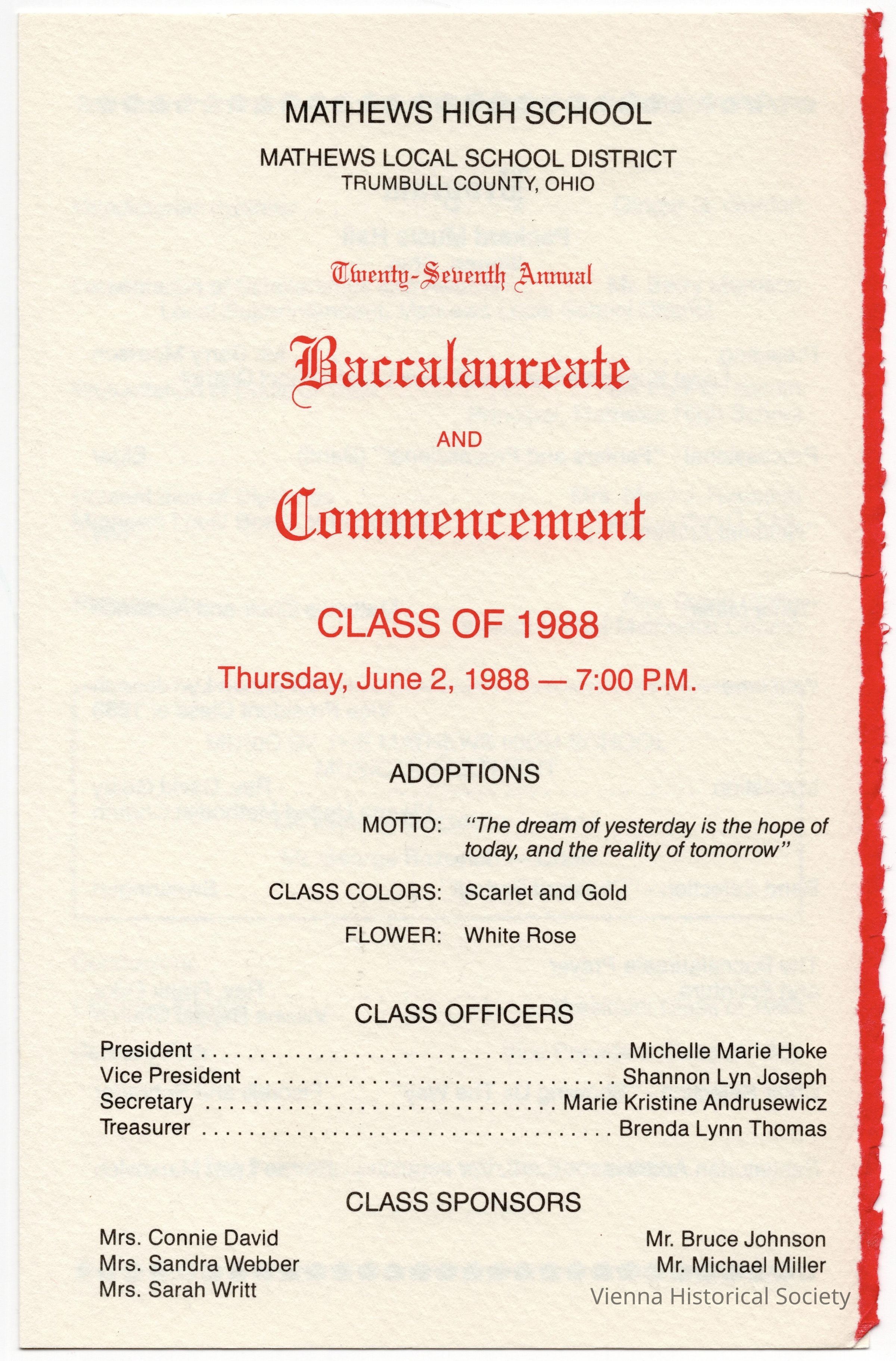 Mathews High School Commencement Program, 1988Collection