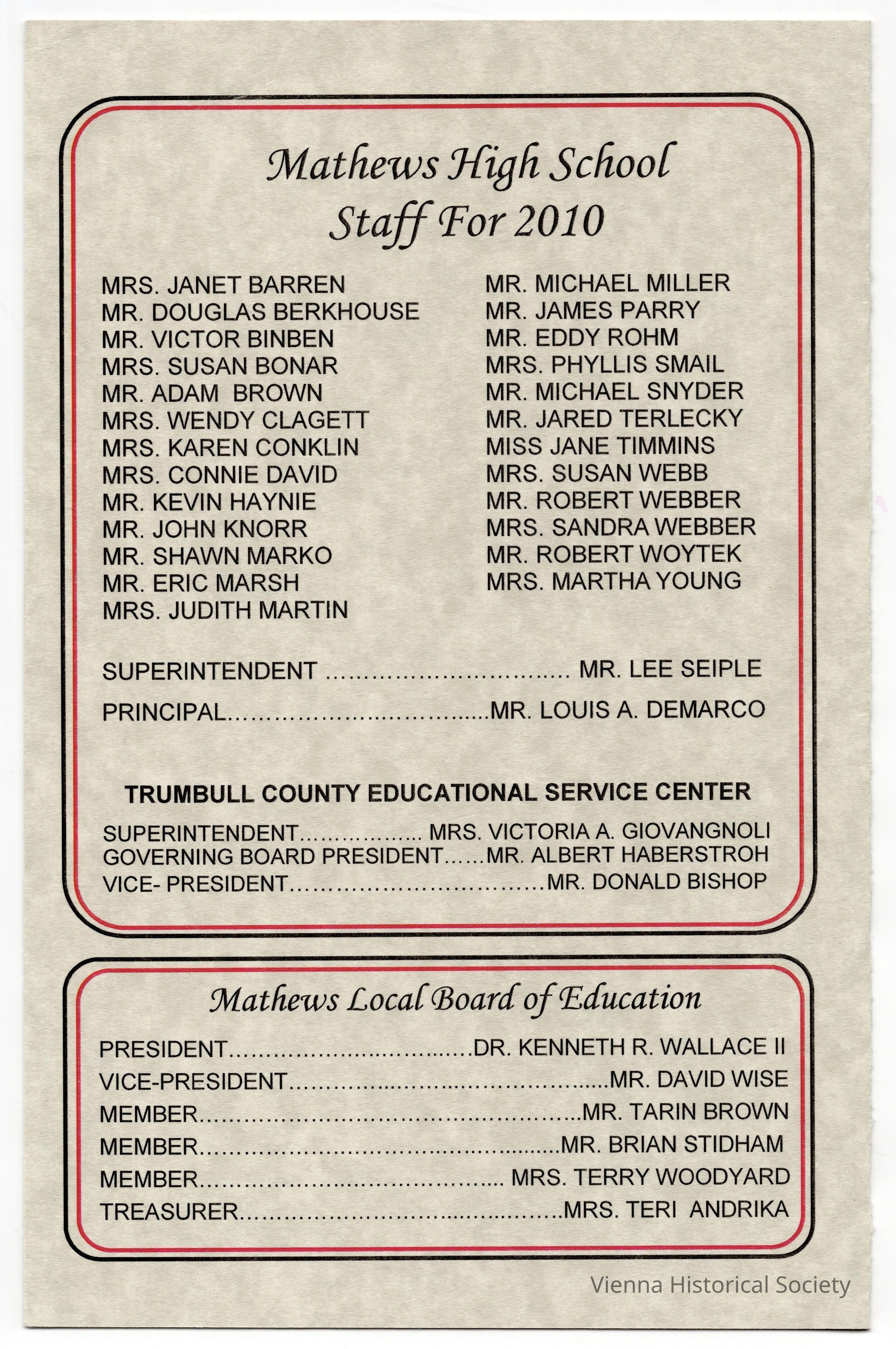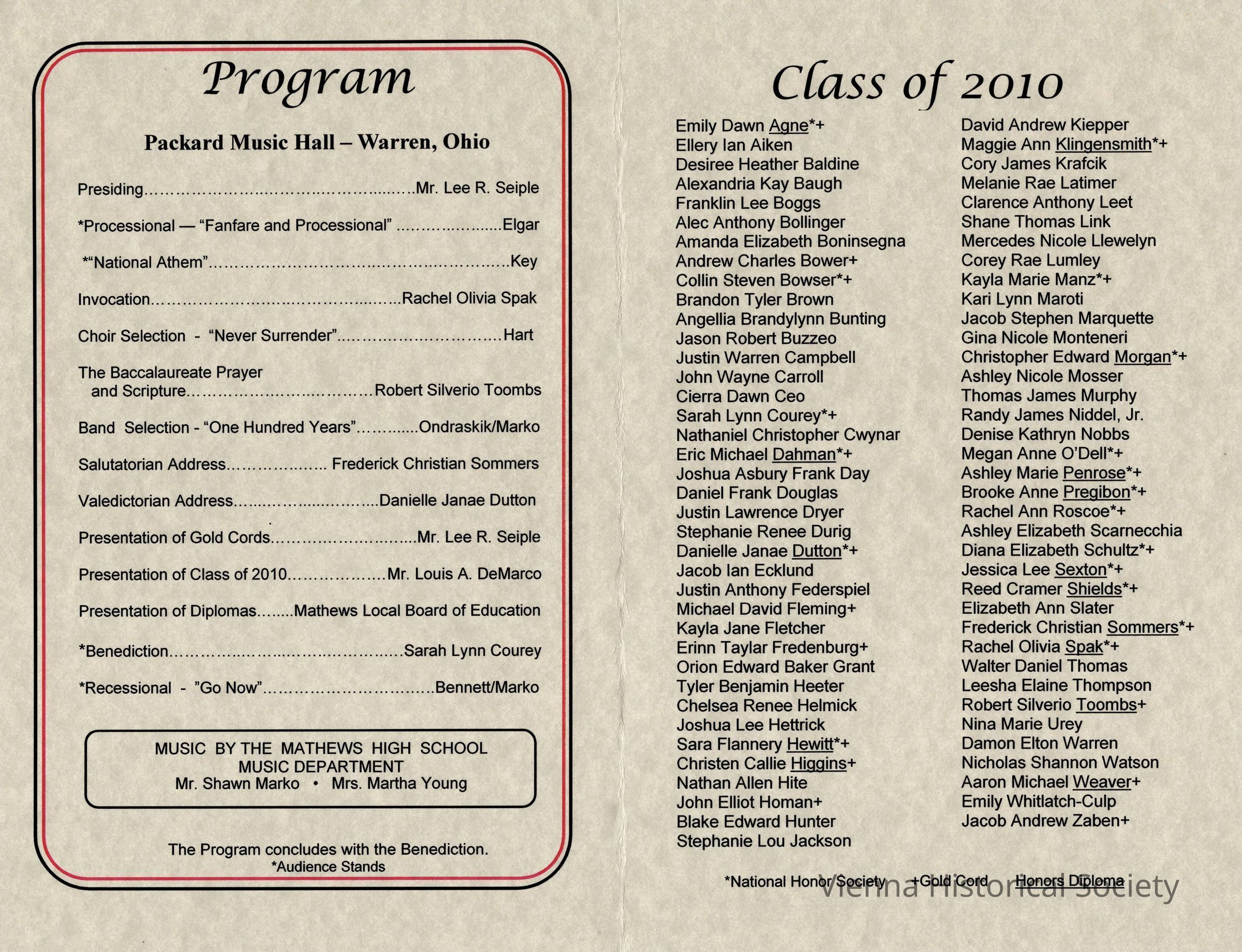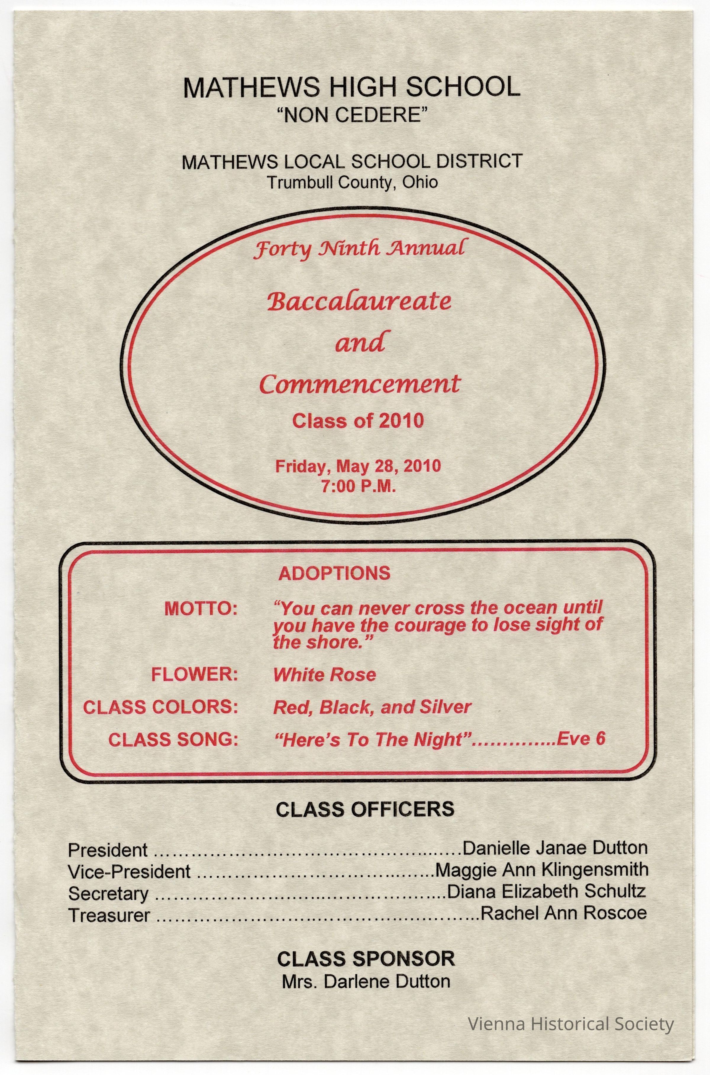 Mathews High School Commencement Program, 2010Collection