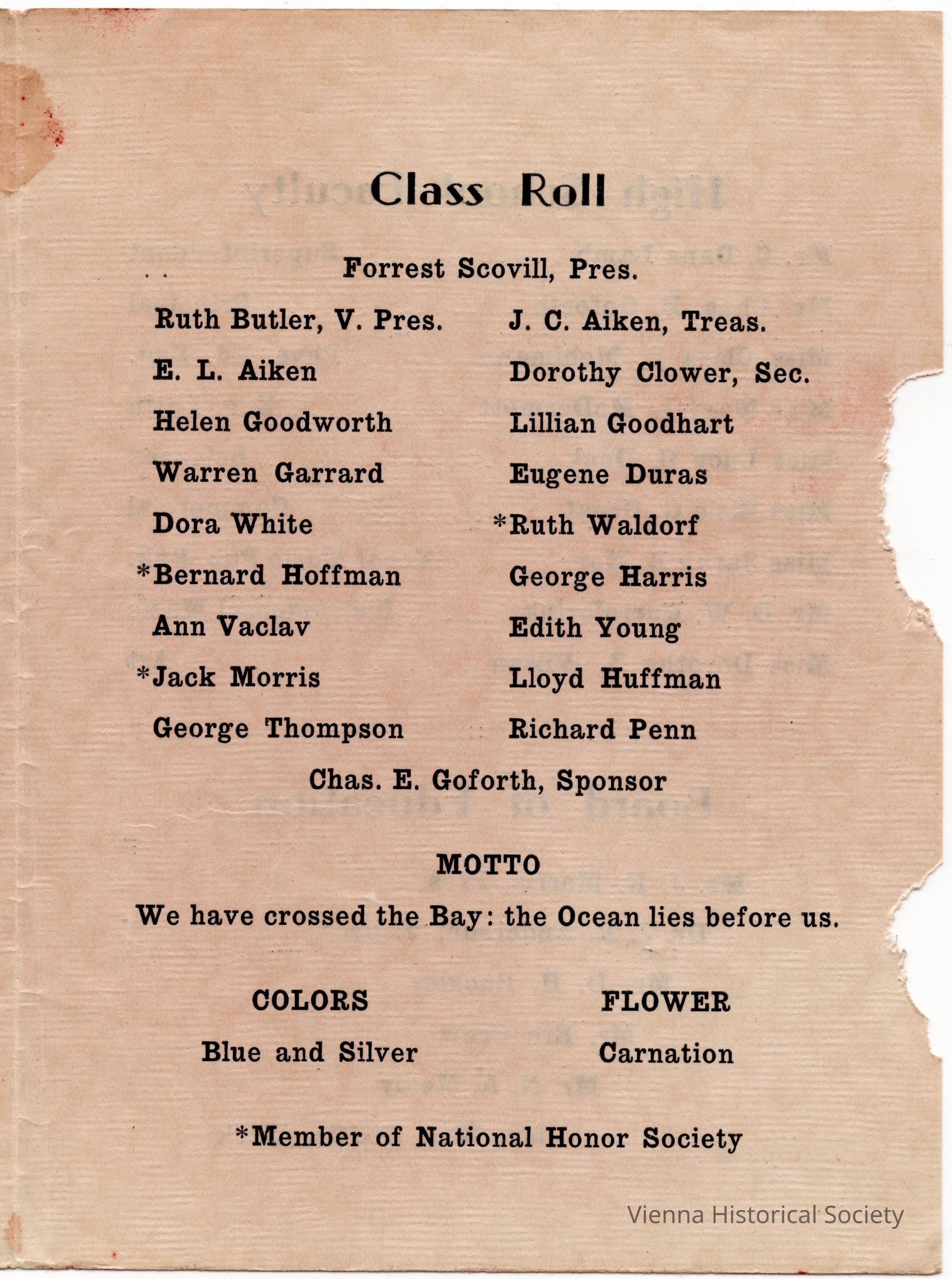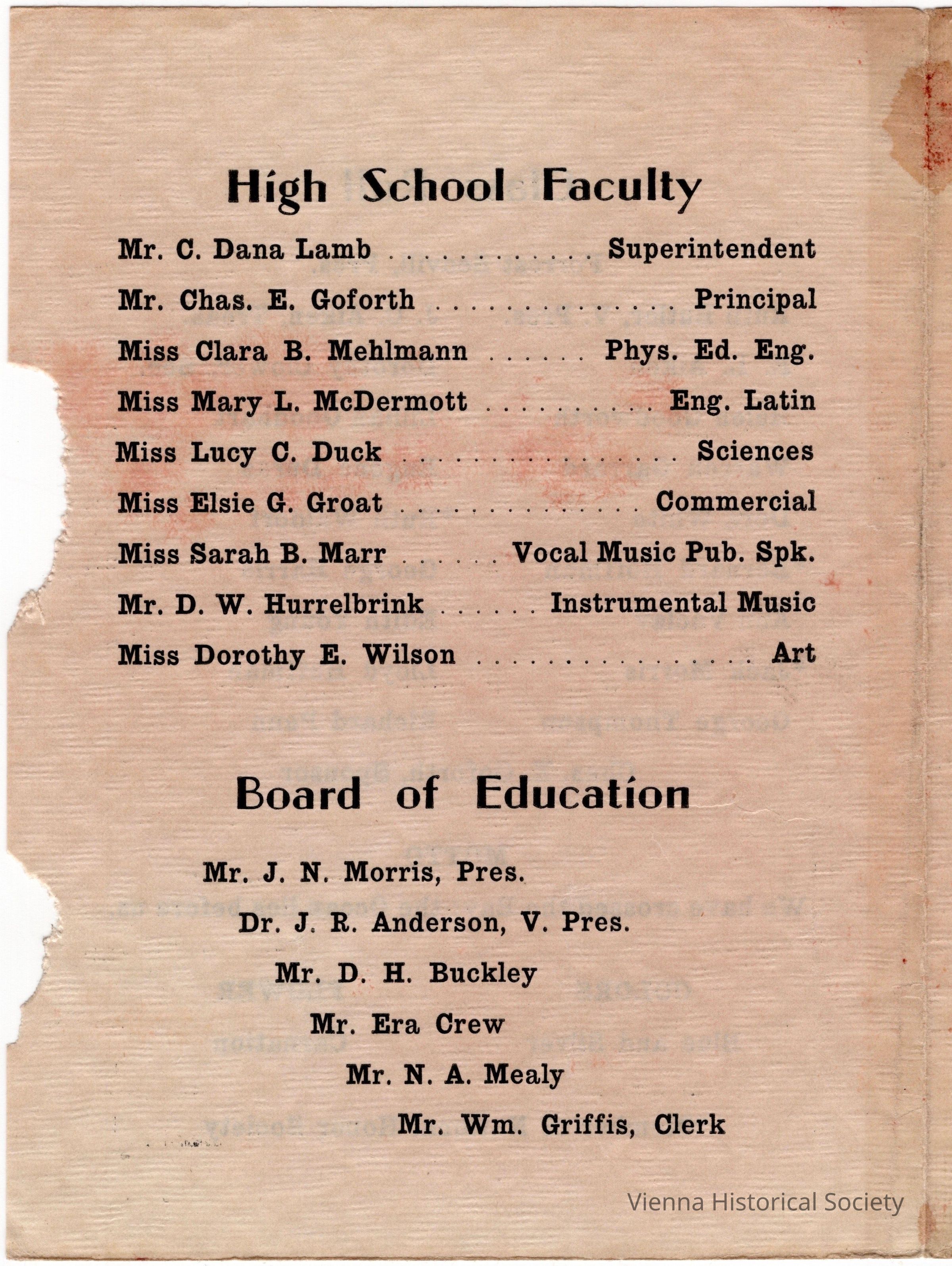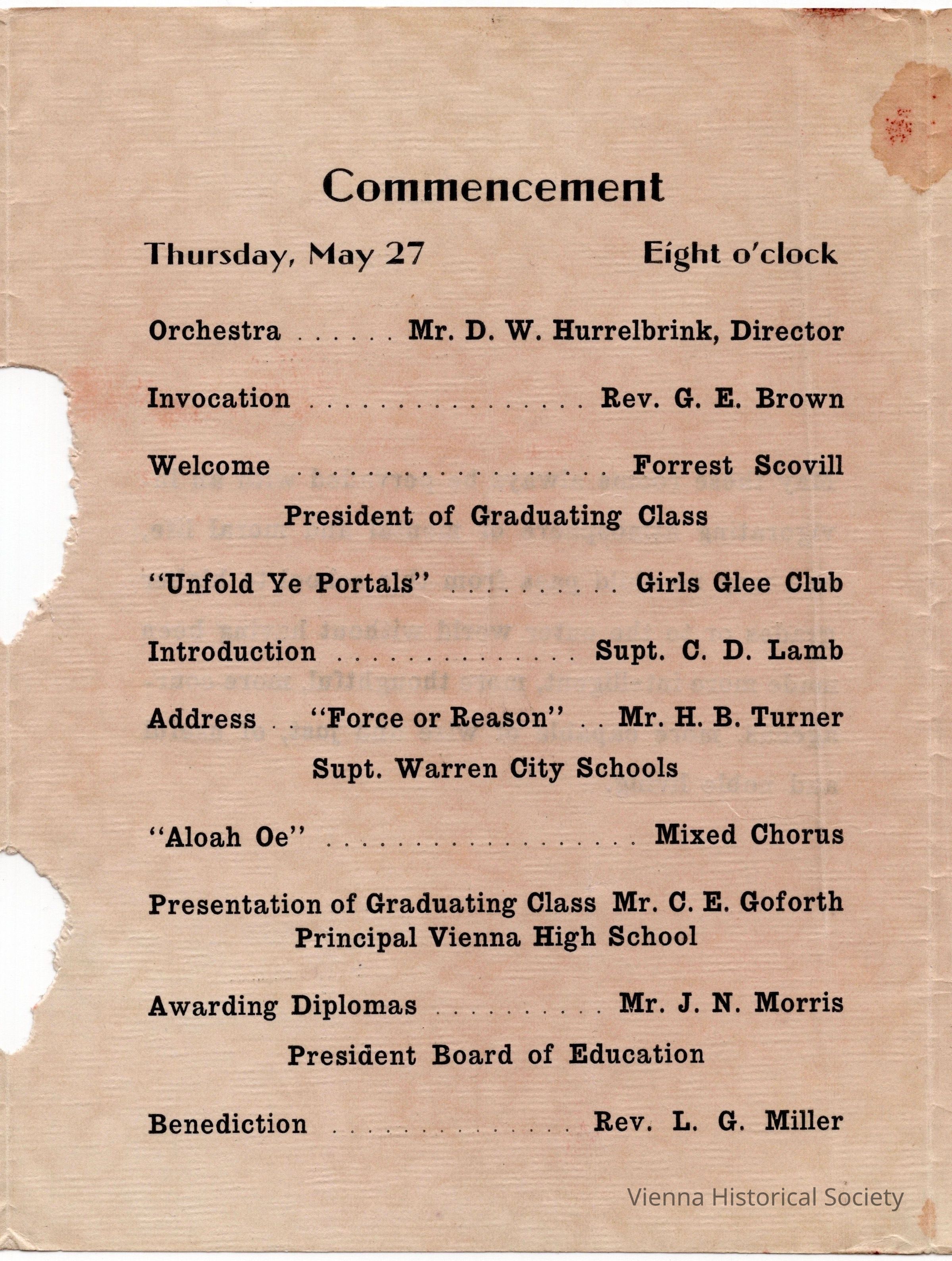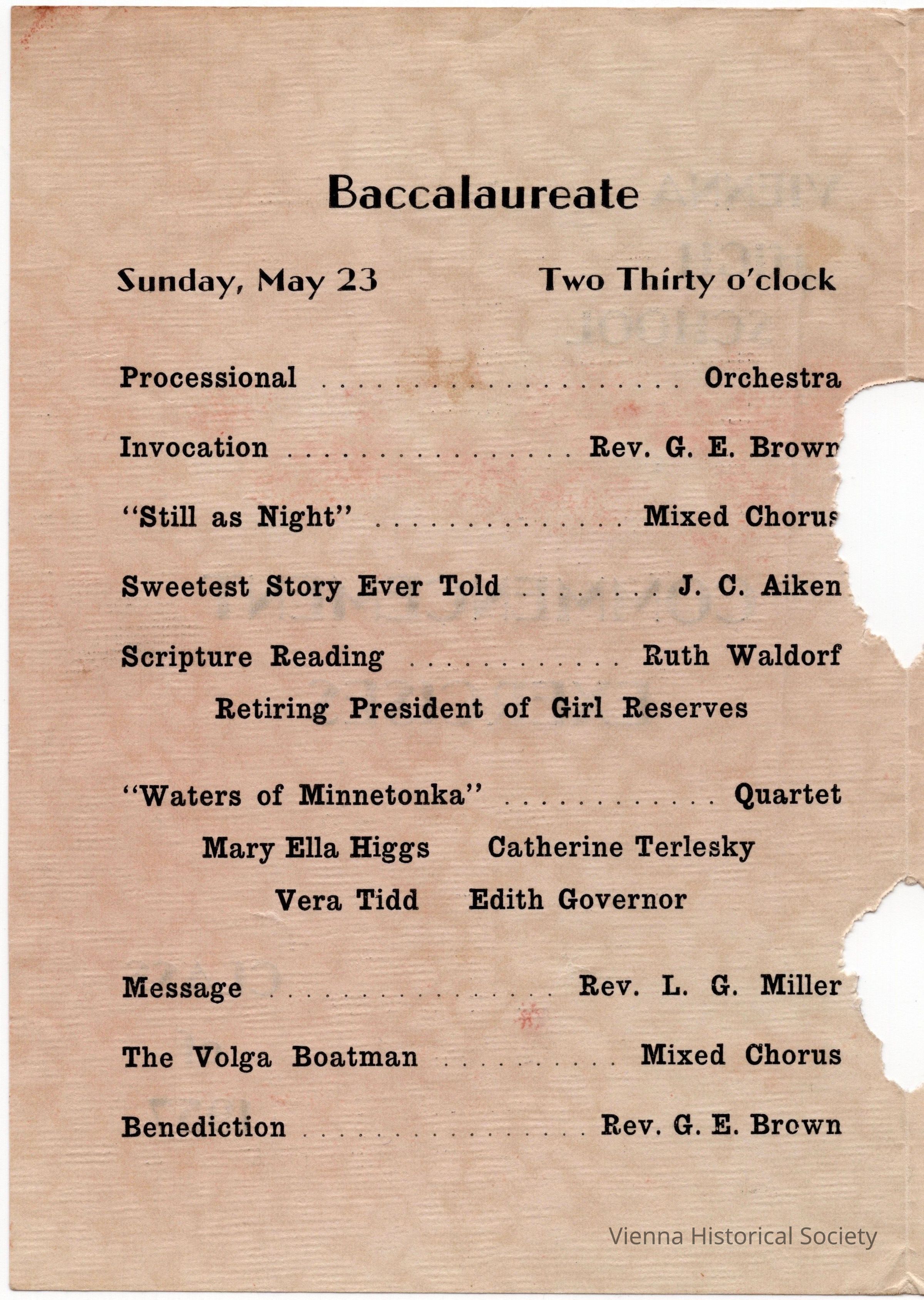 Vienna High School Commencement Program, 1937Collection