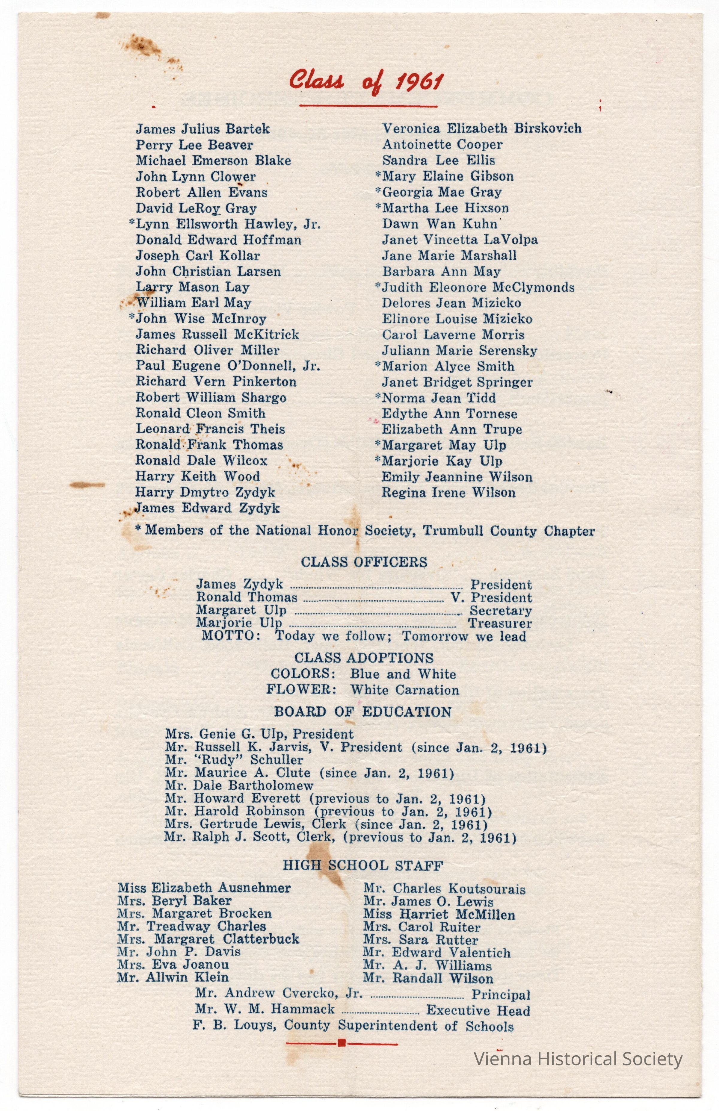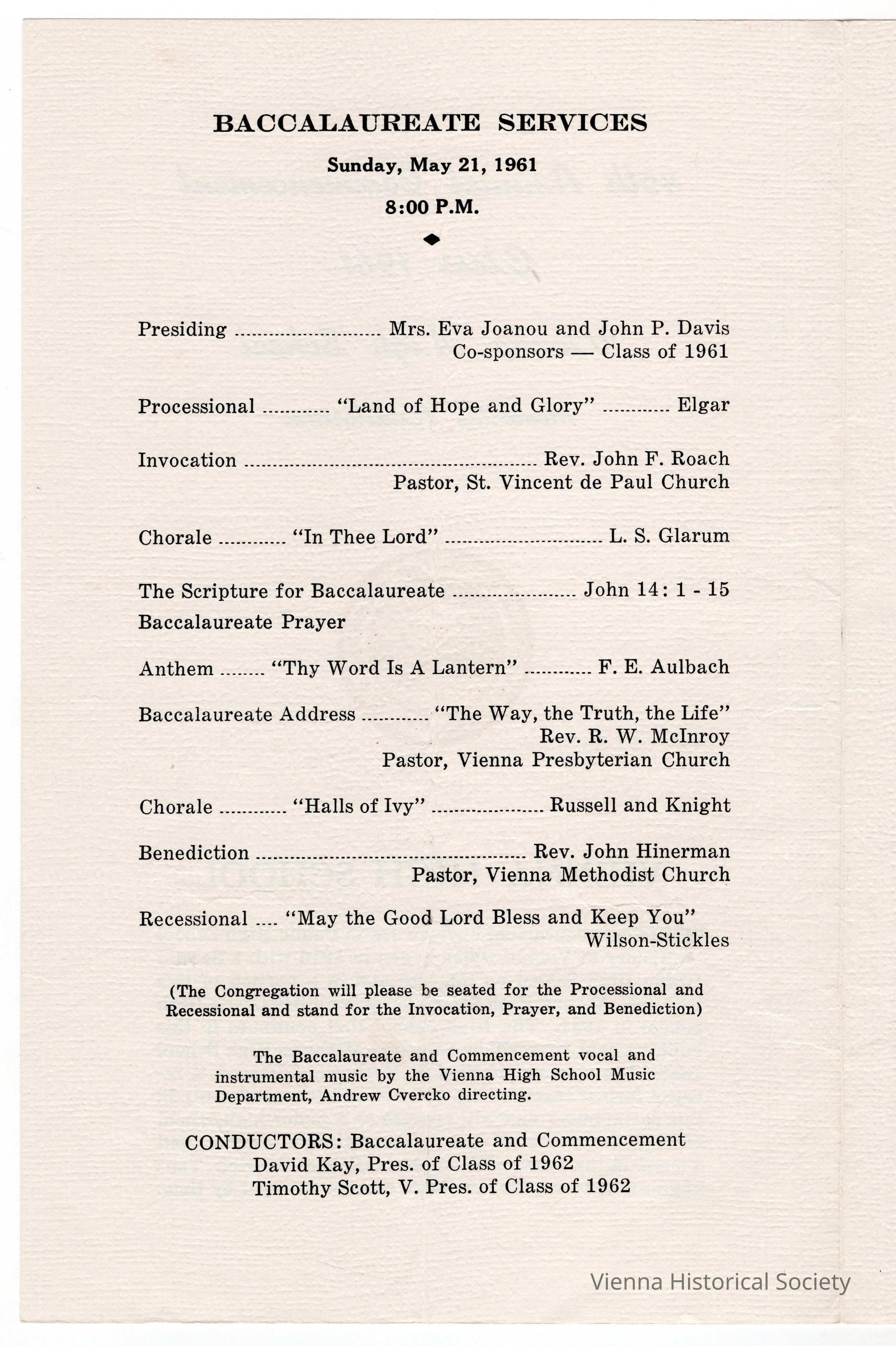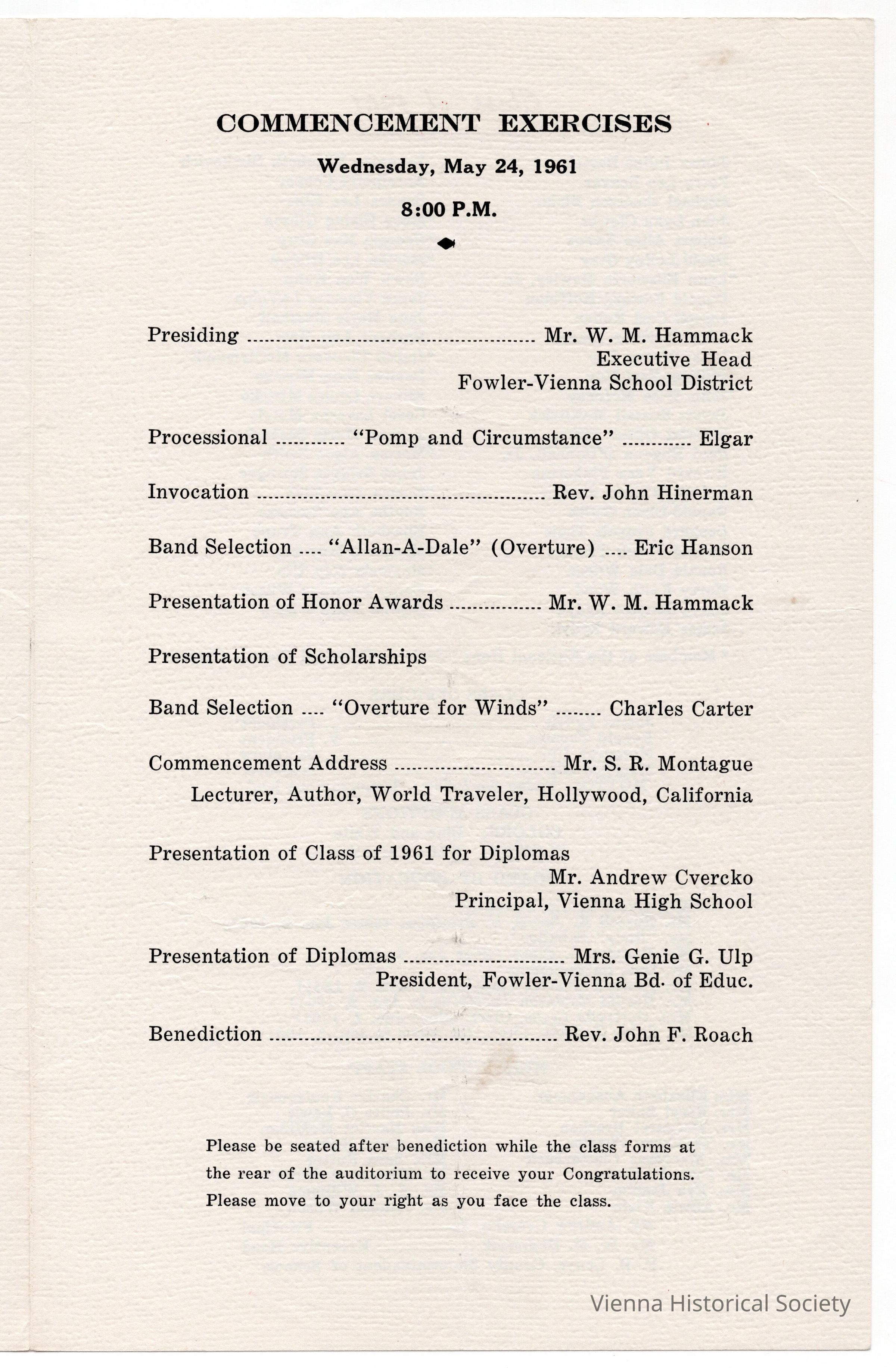 Vienna High School Commencement Program, 1961Collection