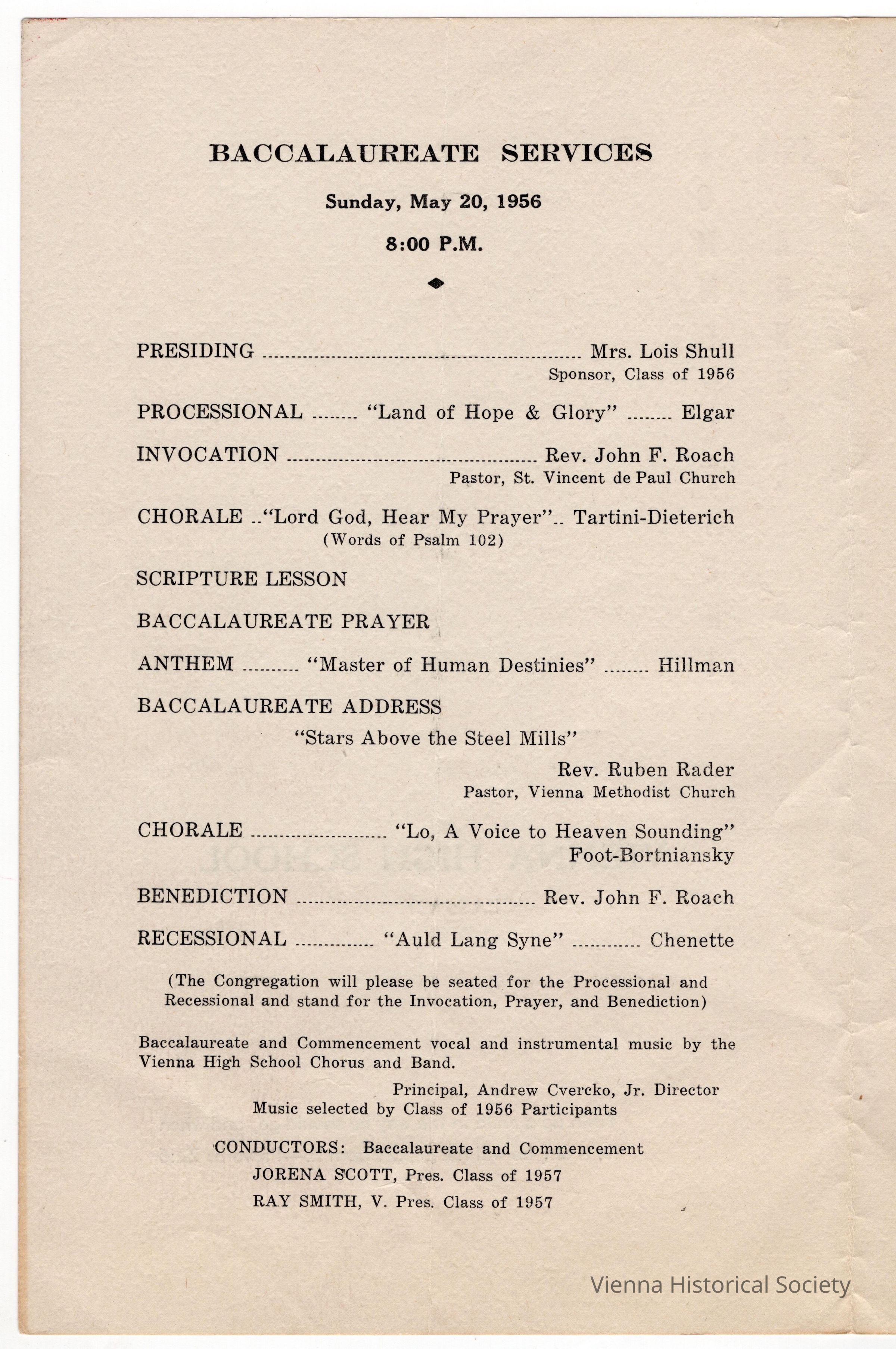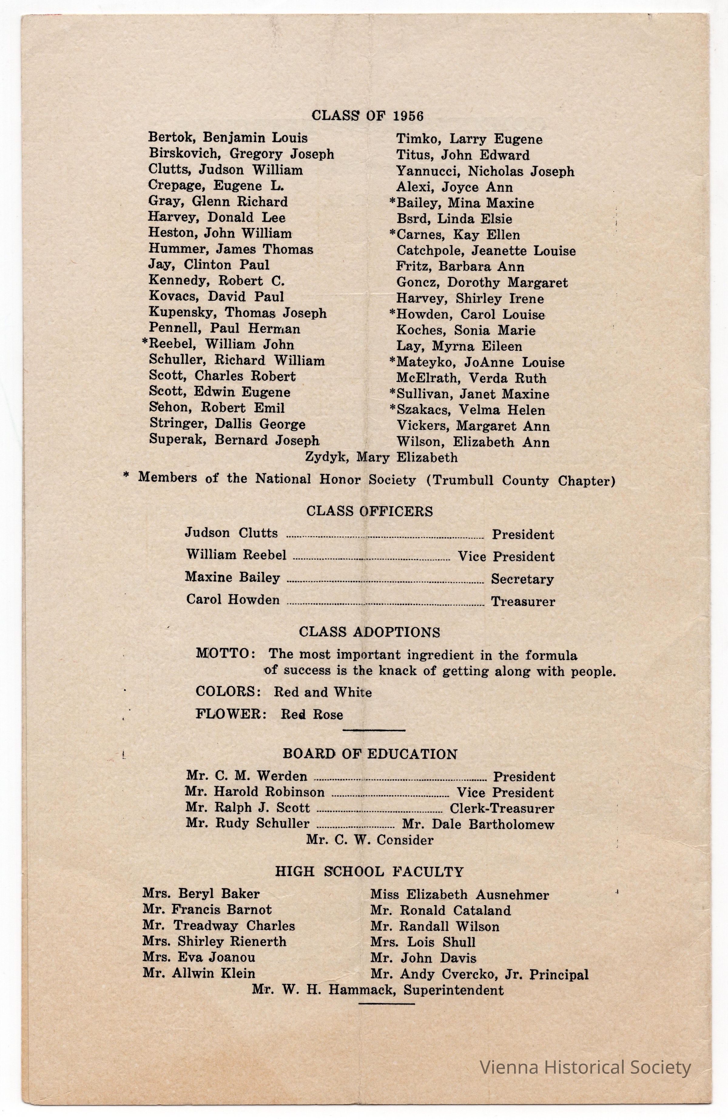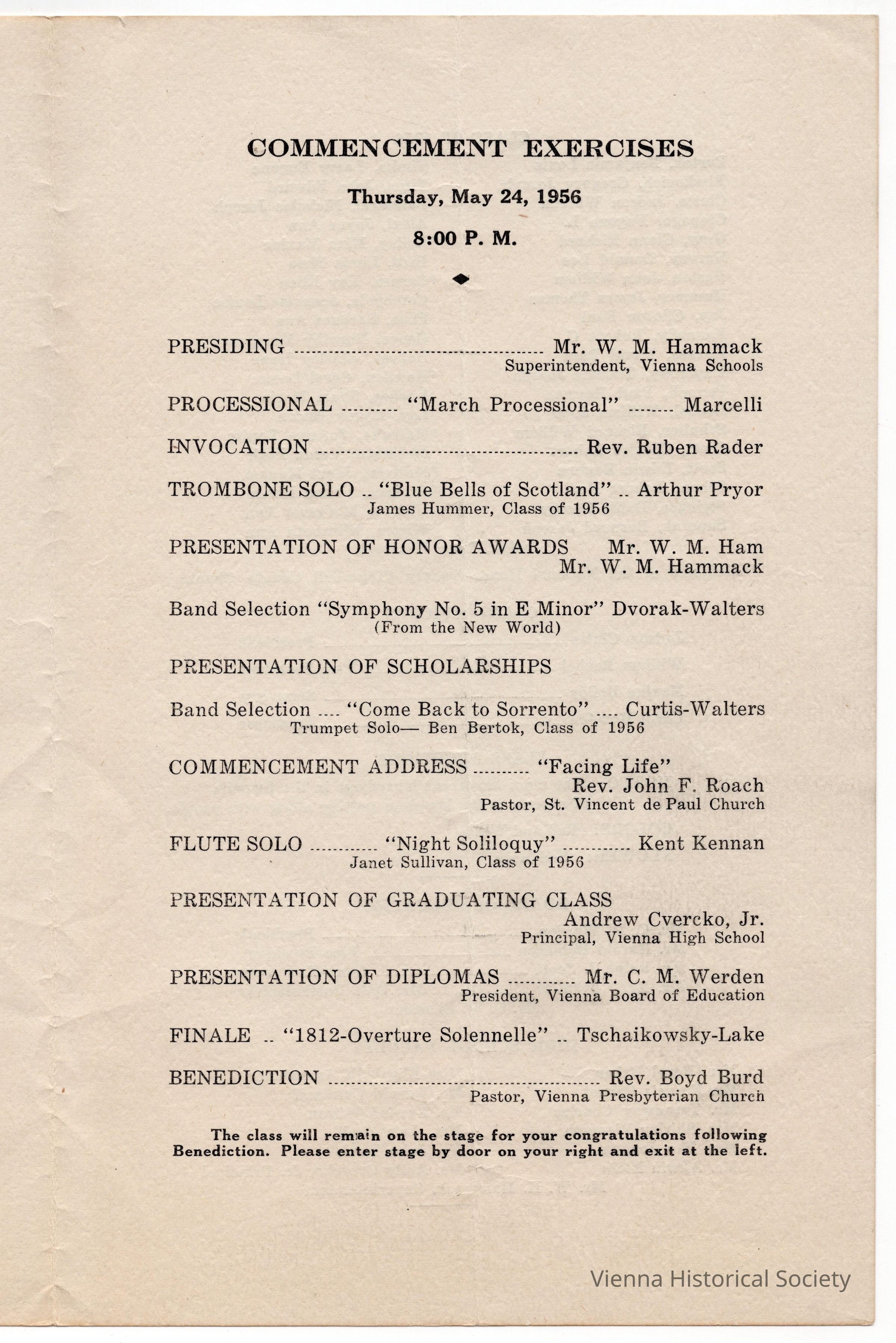 Vienna High School Commencement Program, Class of 1956Collection