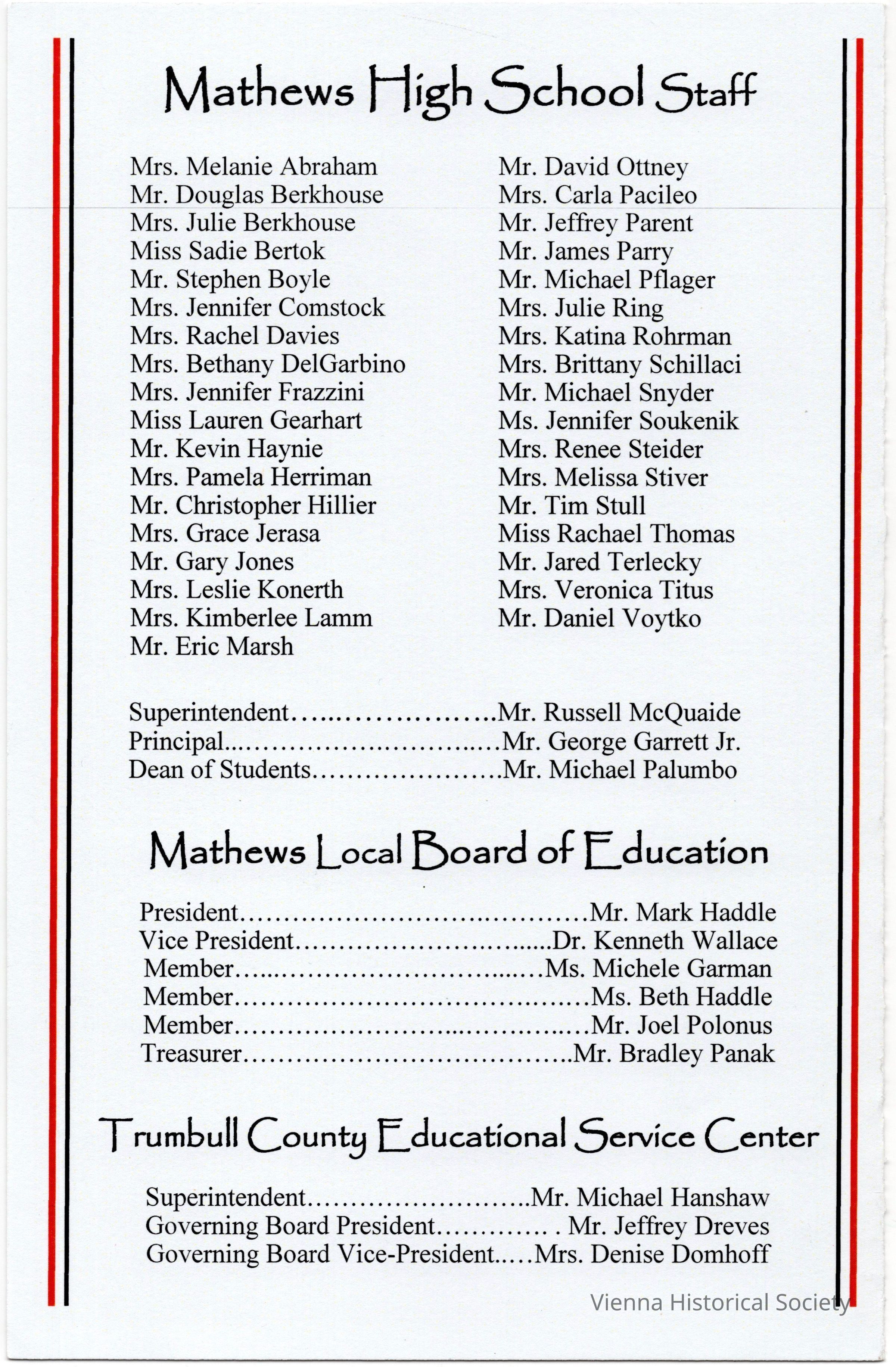 Mathews Schools 1962-PresentDate