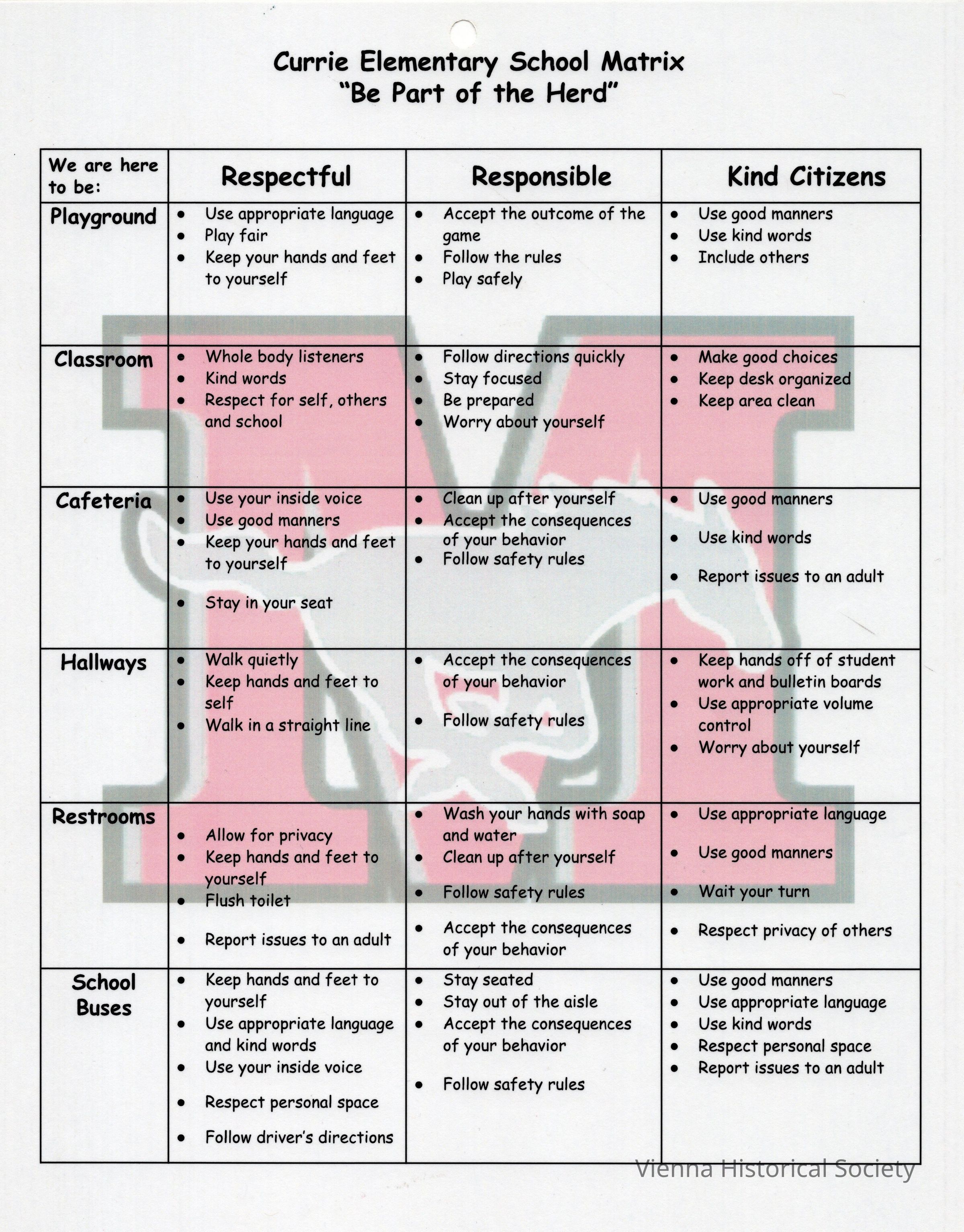 Currie Elementary School Matrix, "Be Part of the Herd," Document, 2020sCollection
