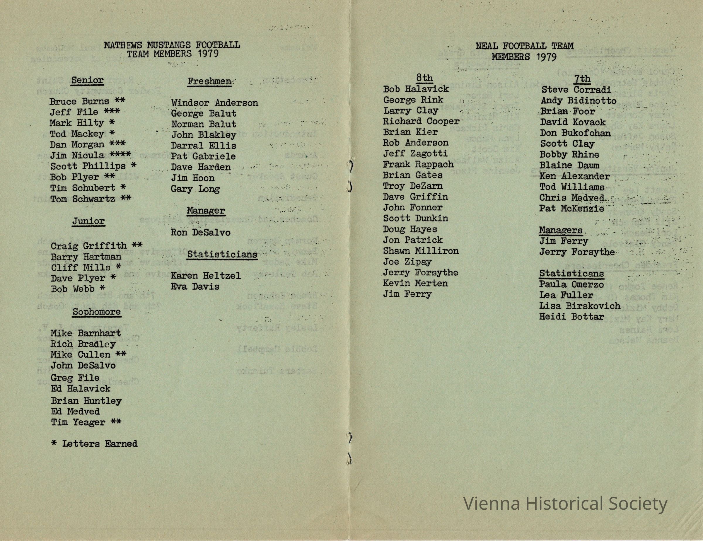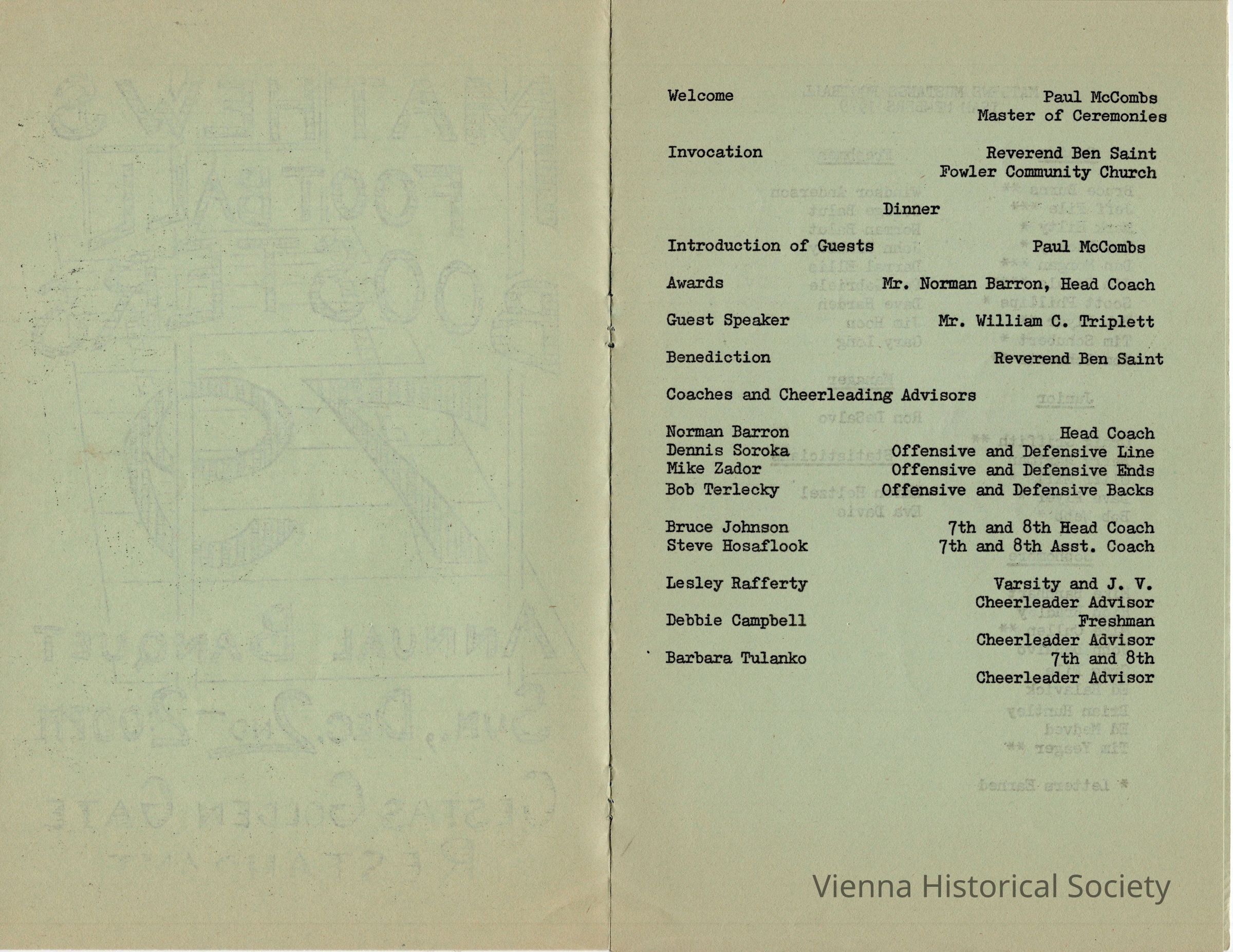 Mathews High School Football Boosters Banquet Program, 1979Collection