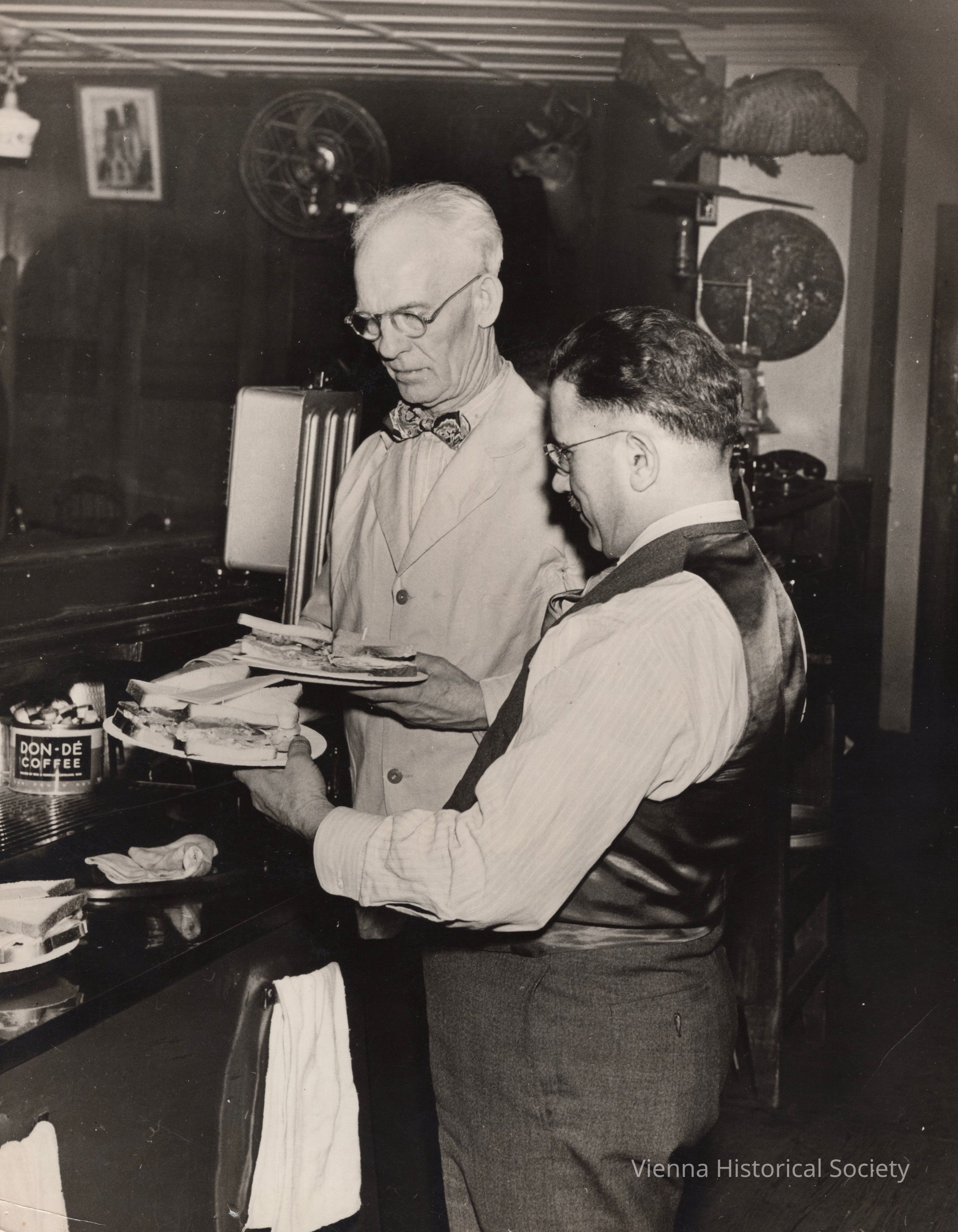 Guy Hull and unidentified man in the Hull House, 1940s or 1950sCollection