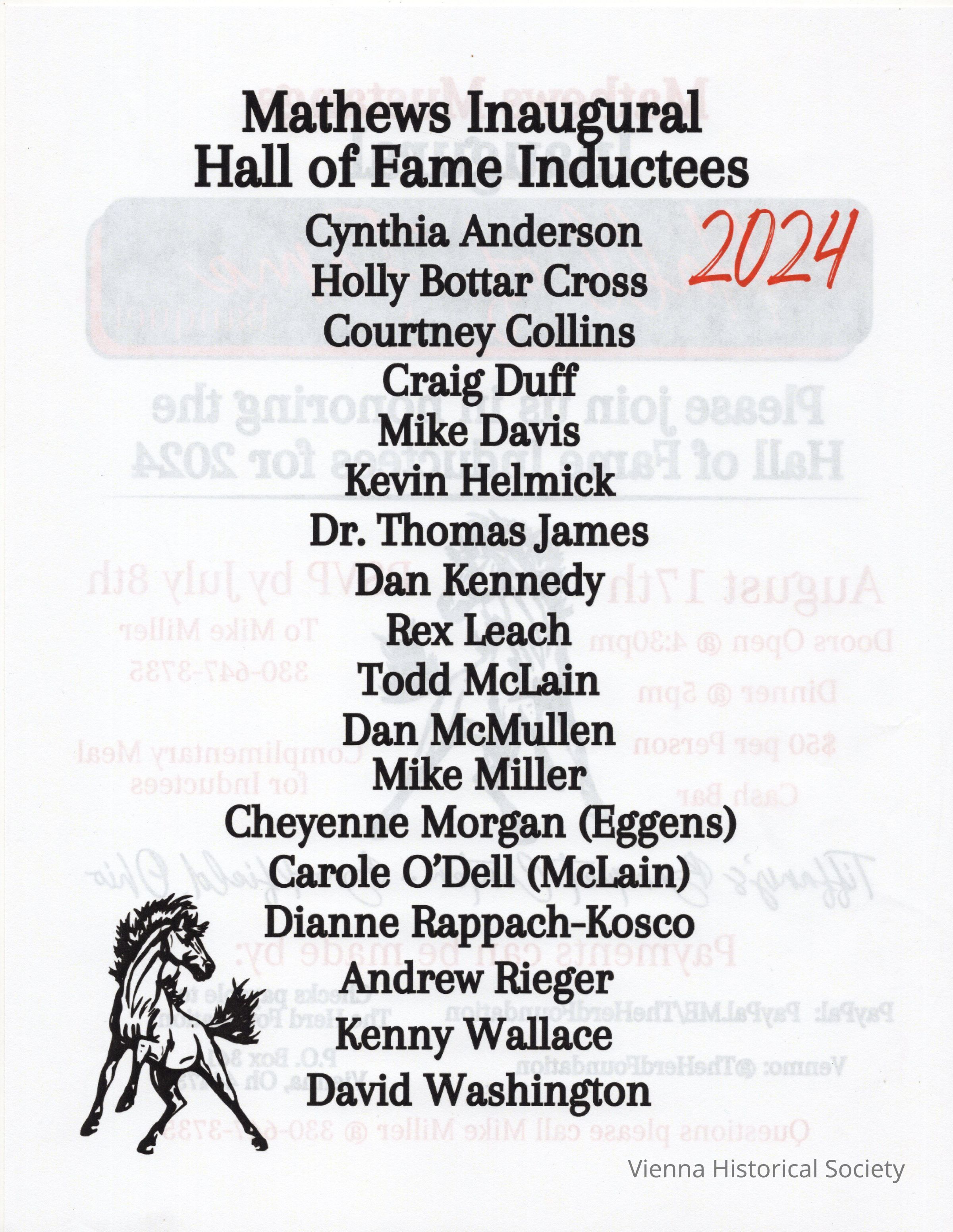 Mathews Mustangs Hall of Fame Banquet Flyer 2024Collection