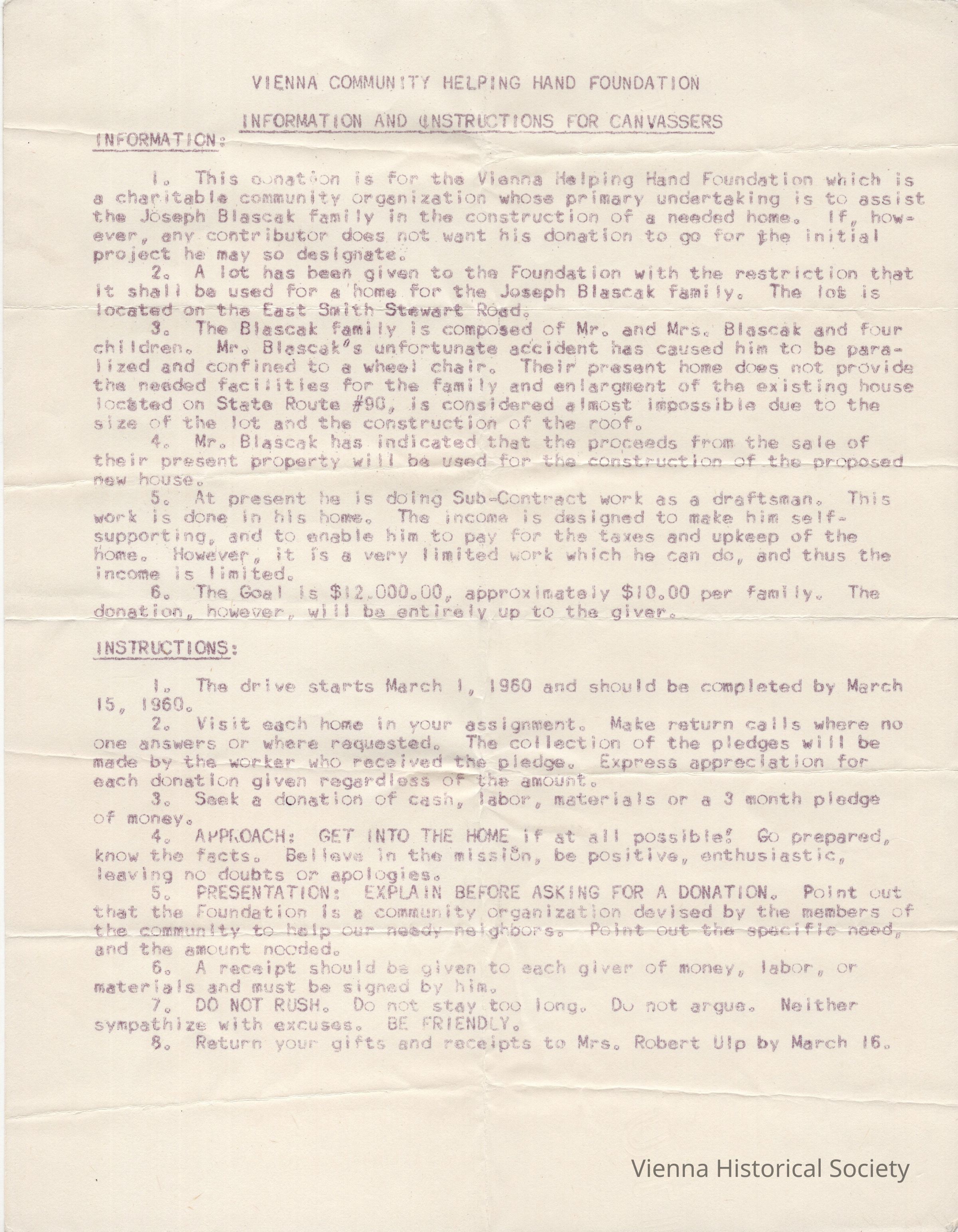 Vienna Community Helping Hands Foundation Letter, 1960Collection
