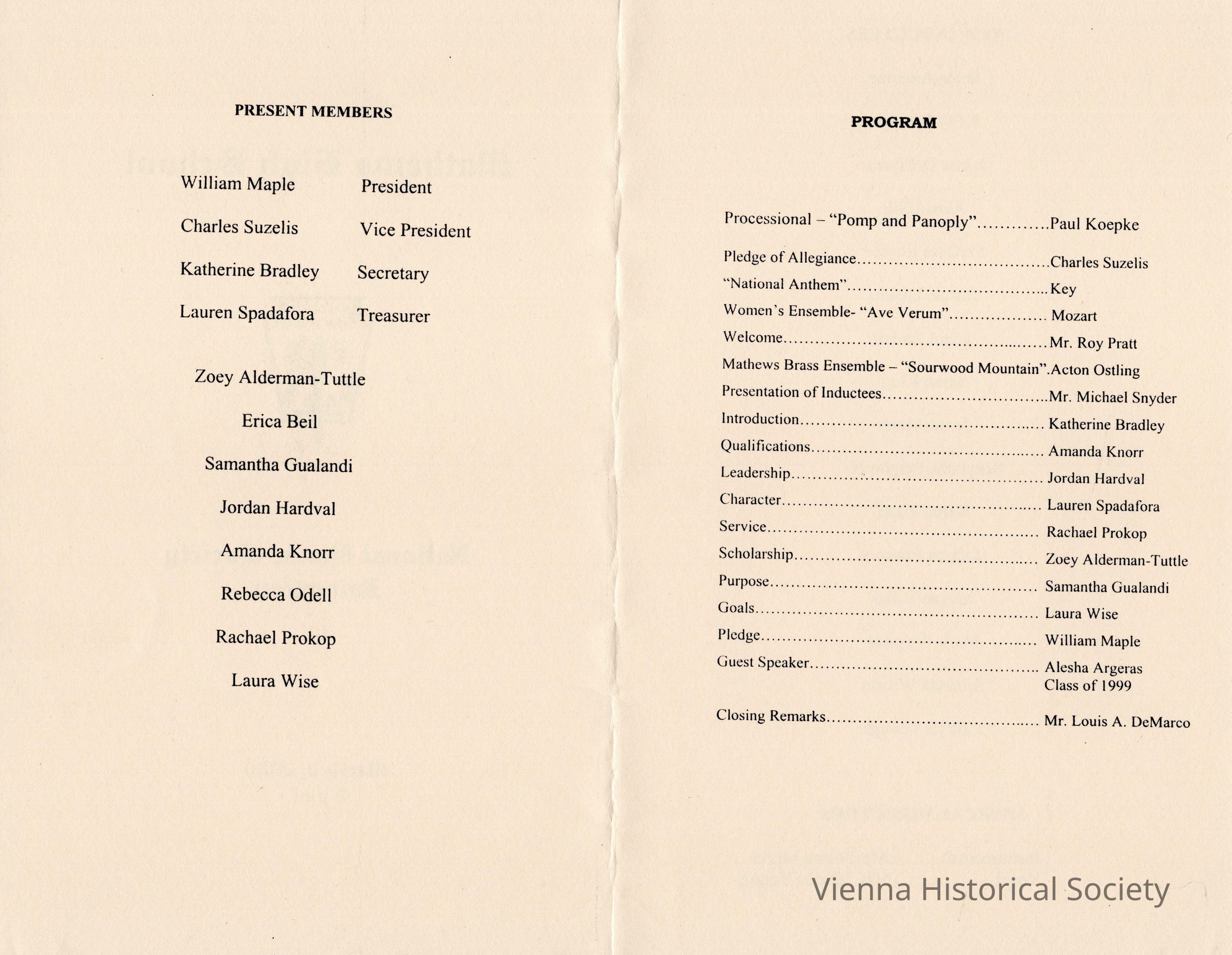 Mathews High School National Honors Society Program, March 8, 2006Collection