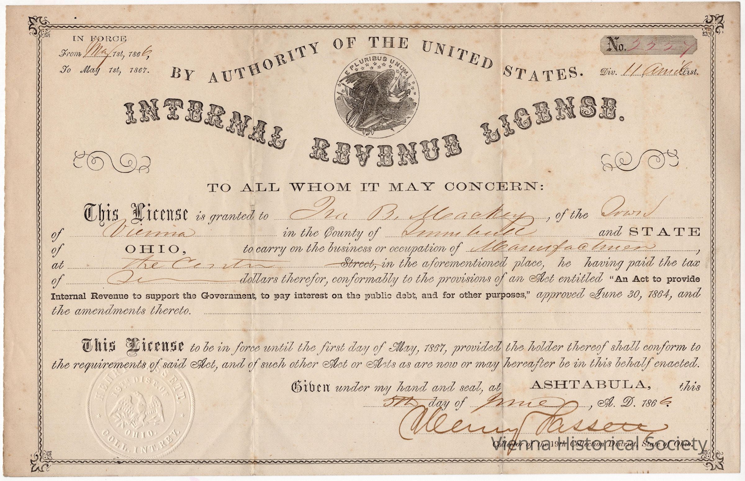 Ira B. Mackey Vienna CenterManufacturer Tax Receipt, June 5, 1866Collection